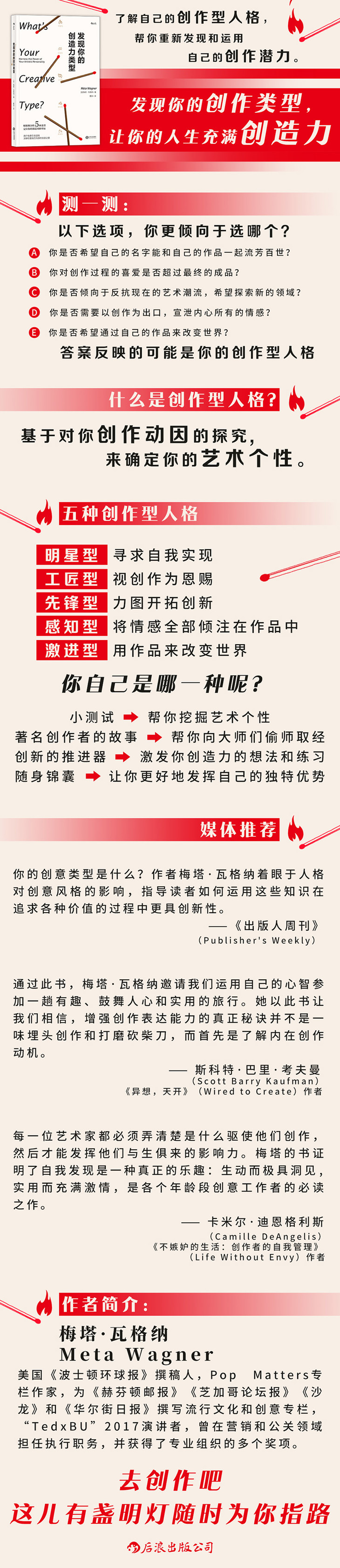 你的创意类型是什么?作者梅塔·瓦格纳着眼于人格对创意风格的影响,指导读者如何运用这些知识在追求各种价值的过程中更具创新性。