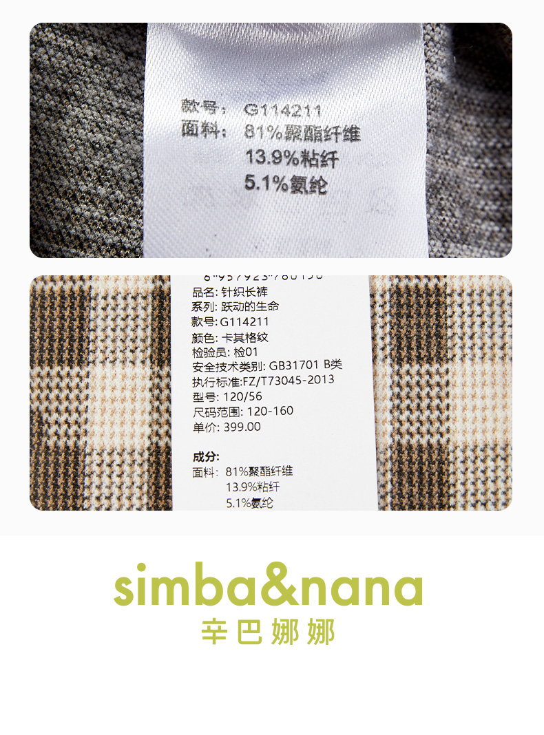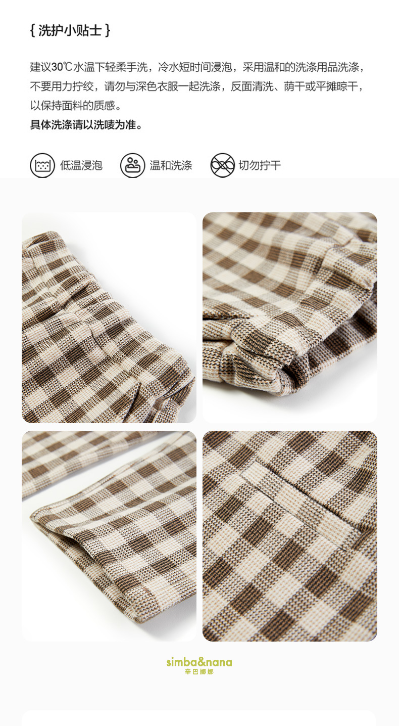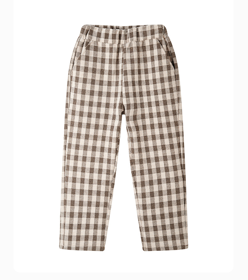 【辛巴娜娜】simbanana【大童】格子裤女中大童秋冬款松紧腰宽松小脚直筒裤子