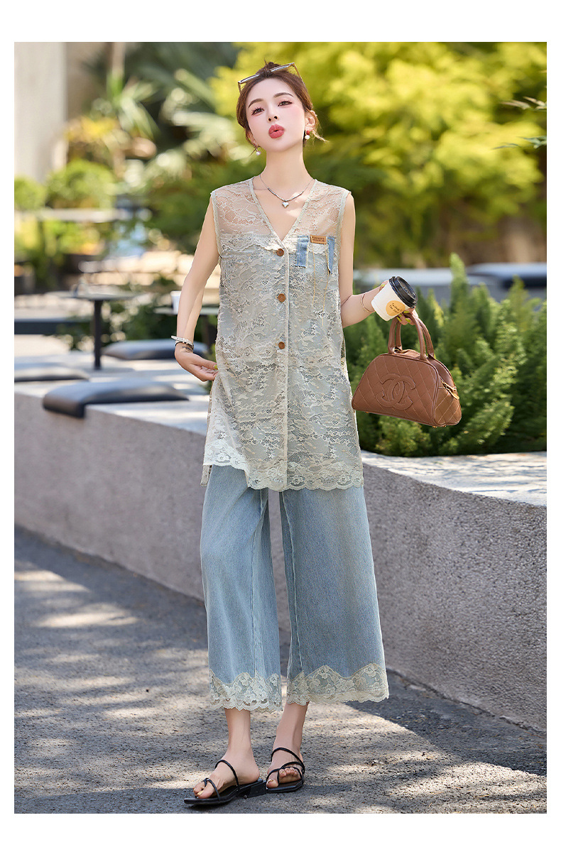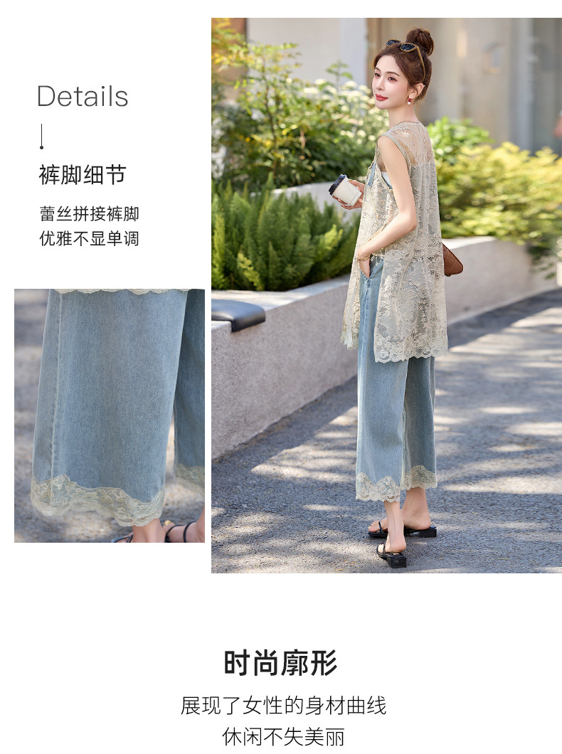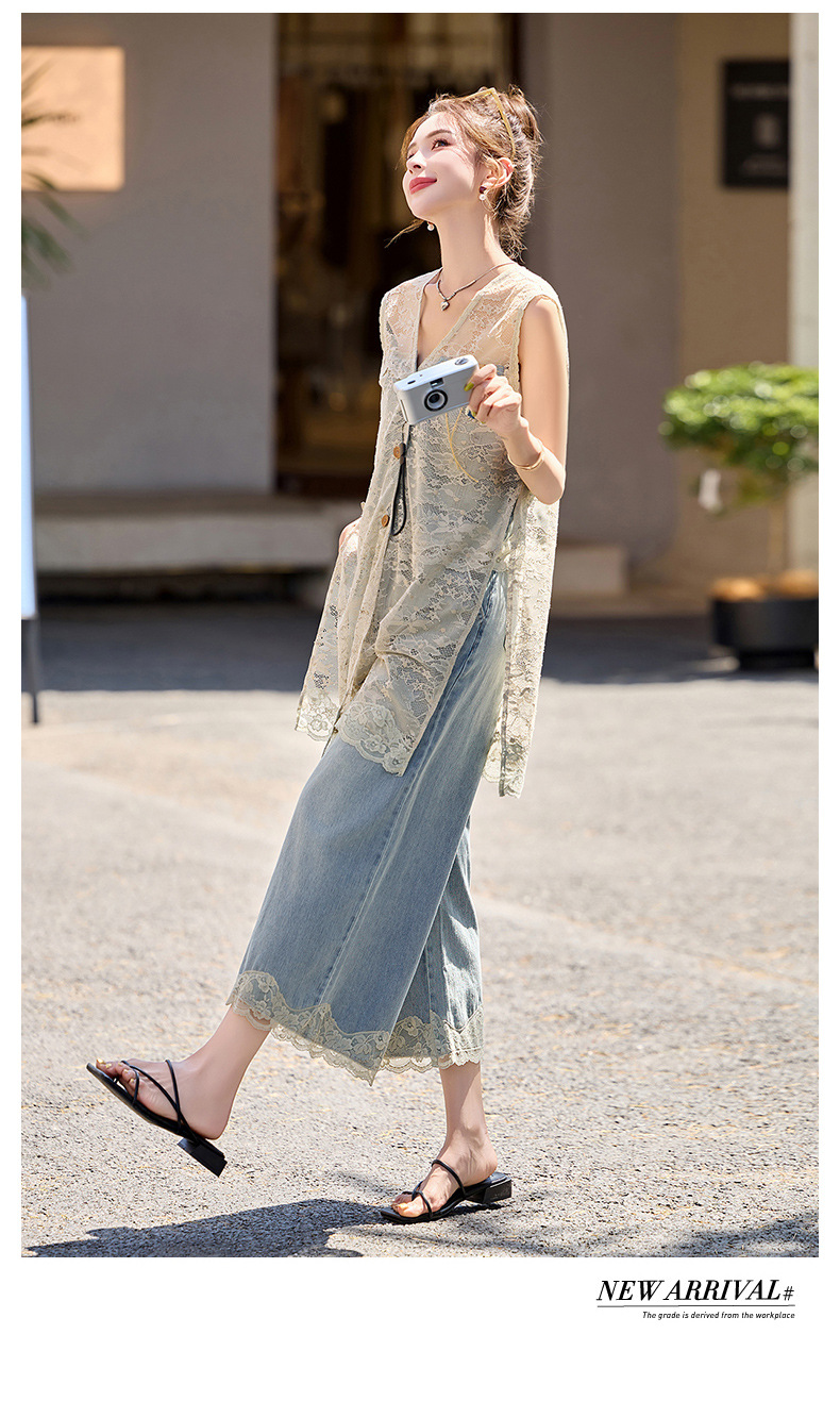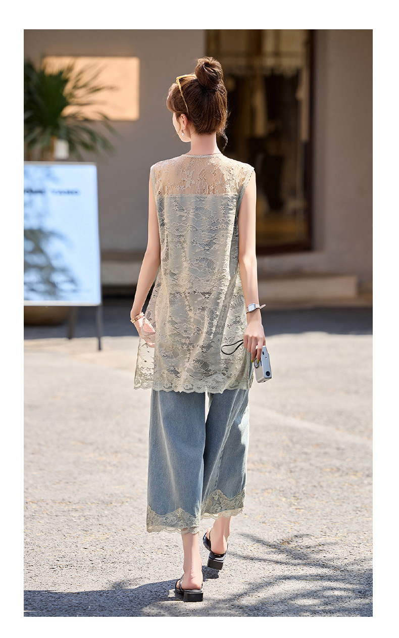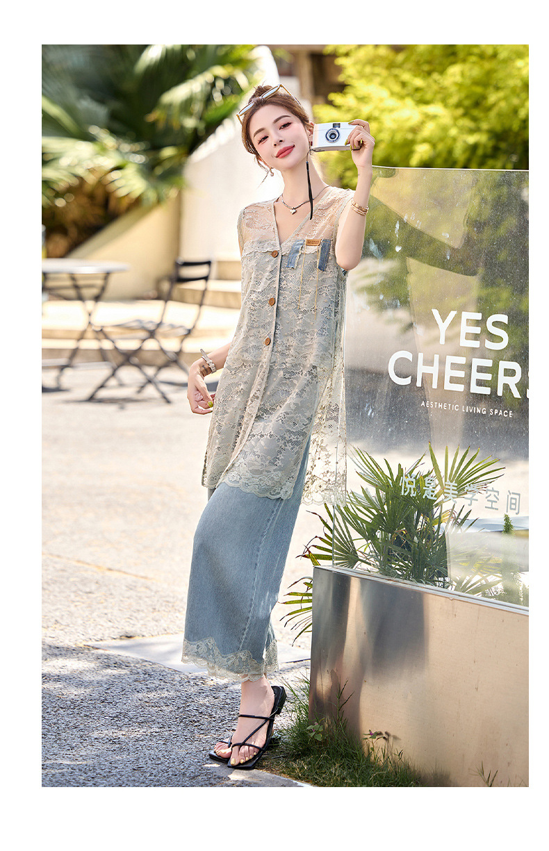 新中式镂空马甲罩衫女夏季新款复古气质外搭休闲背心阔腿裤两件套BX3012