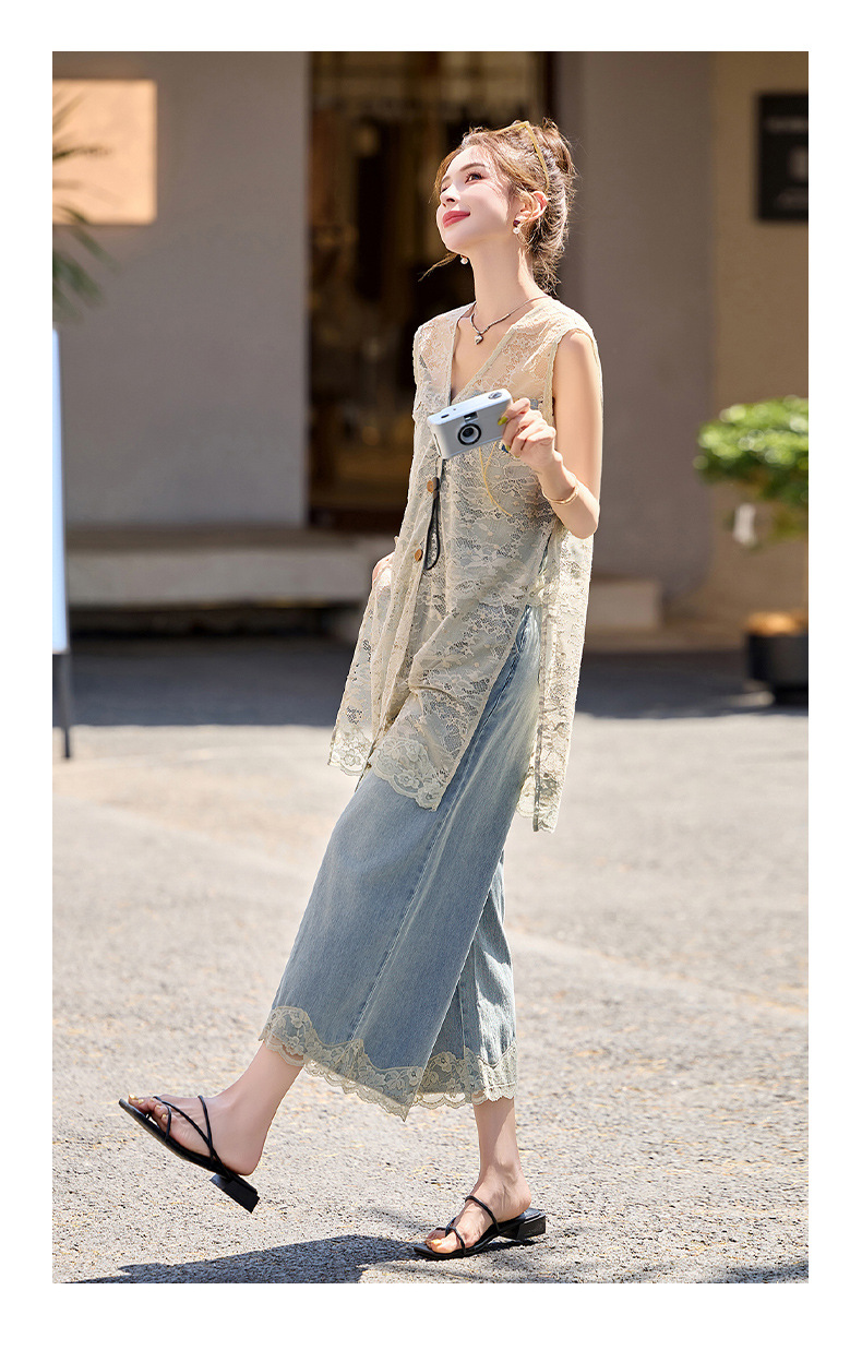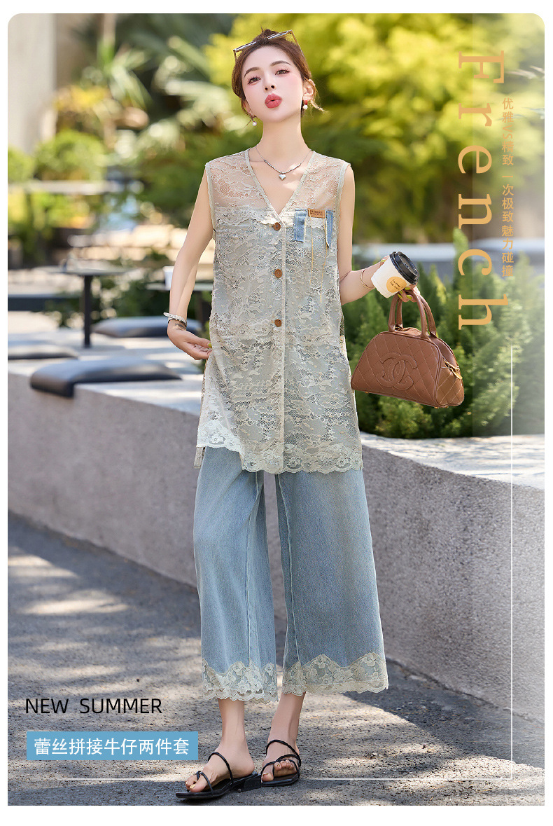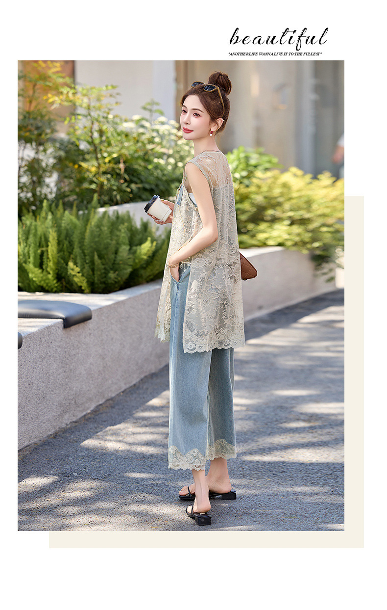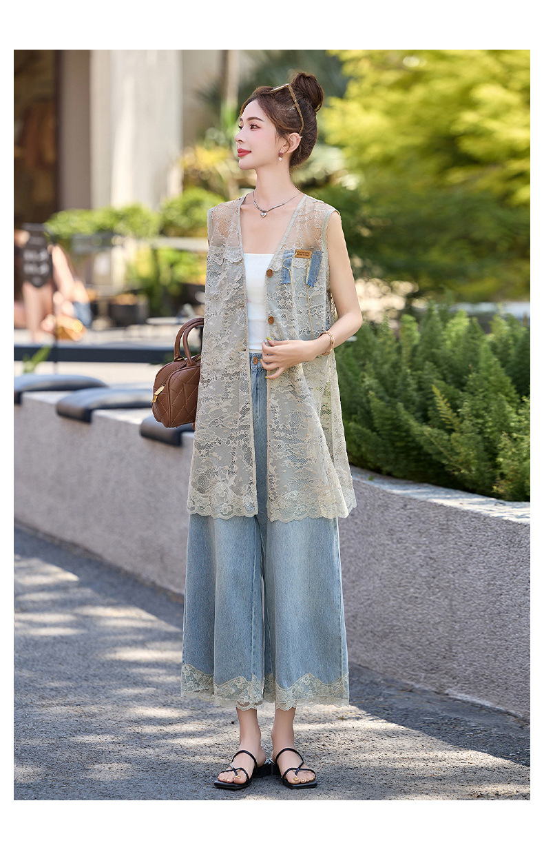 新中式镂空马甲罩衫女夏季新款复古气质外搭休闲背心阔腿裤两件套BX3012