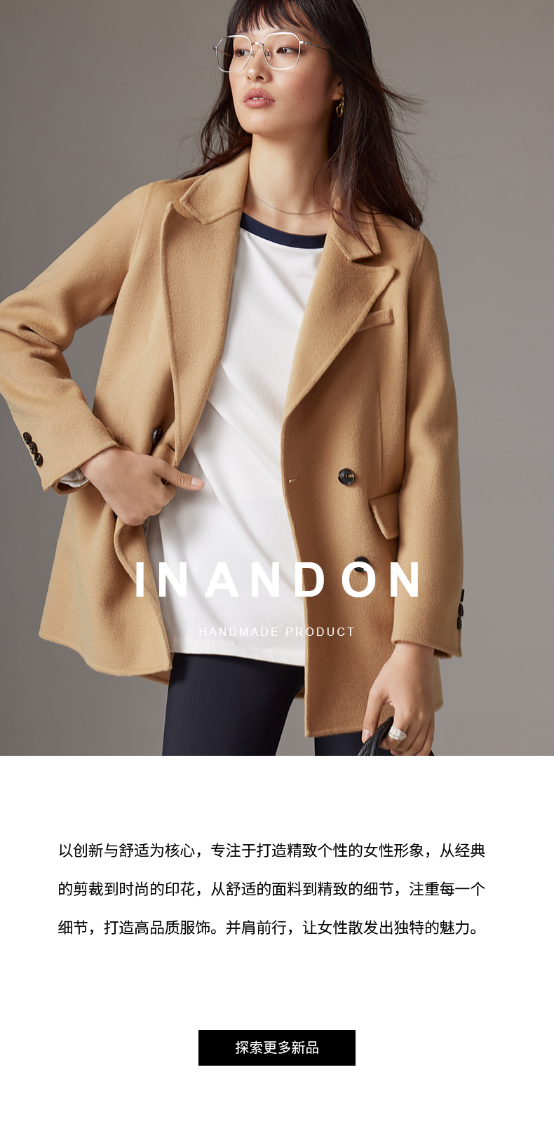IN AND ON—轻奢时尚品牌,以“致力于做你衣柜永远不肯丢掉的那一件”作为品牌理念,打造“轻奢时尚”的品牌定位。拥有时尚前沿的商品设计能力并将品质与价值进行完美平衡,致力为消费者提供舒适与奢华、创新与智能的完美购物体验。塑造独立自主的女性形象,让每个人都能拥有属于自己的时尚风格。