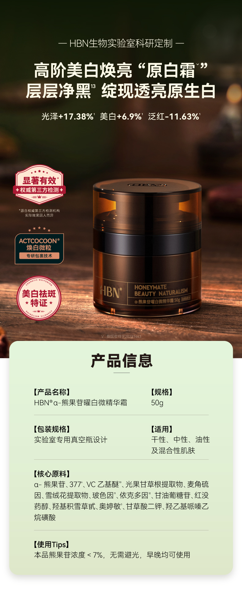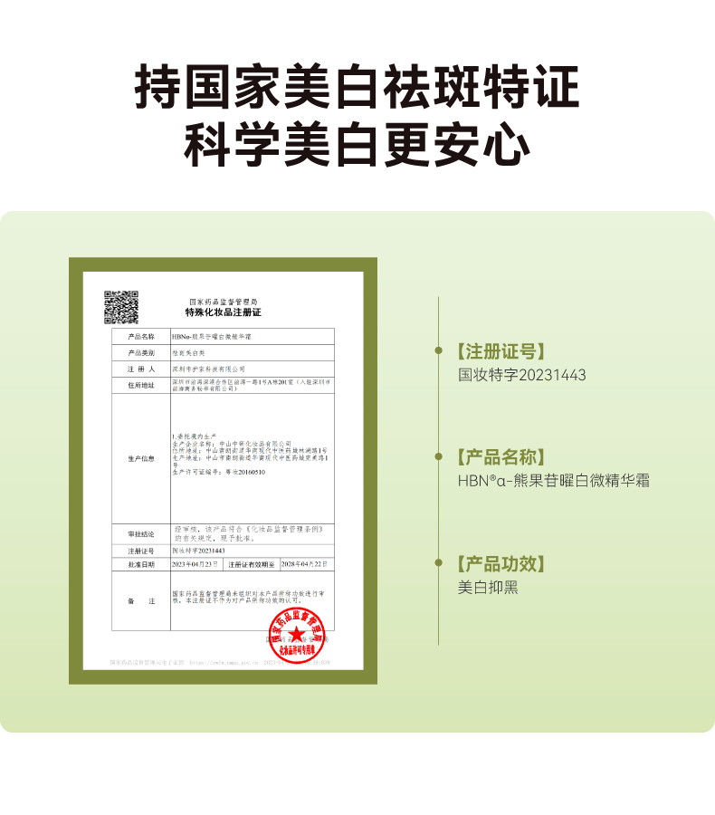 DK202406010【美白祛斑特证原白霜】HBN a-熊果苷曜白微精华霜 鎏光霜2.0