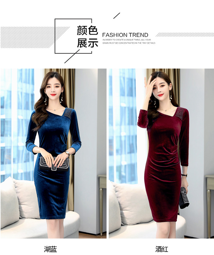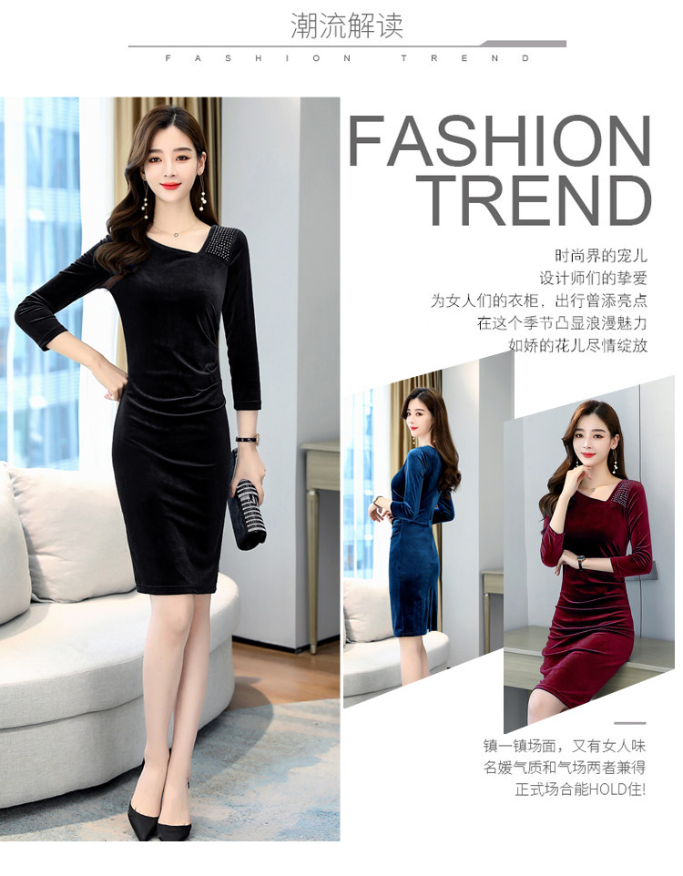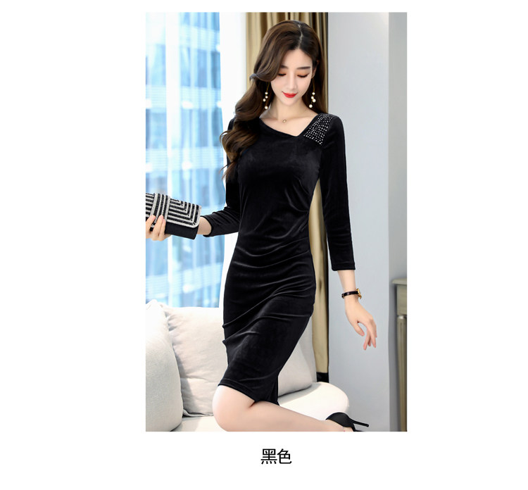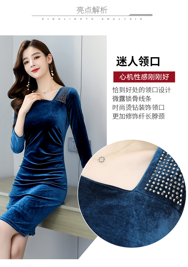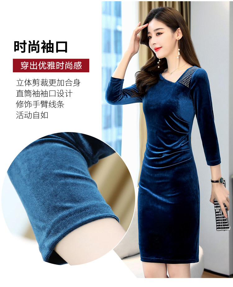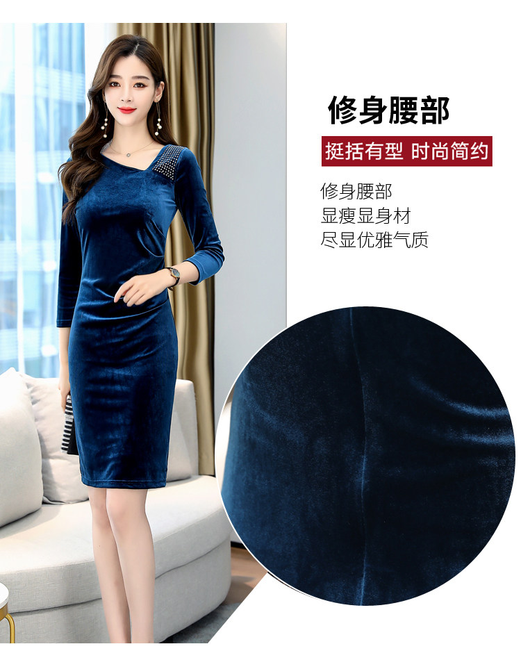 WZNH-YUMEI2038金丝绒旗袍连衣裙新款收腰显瘦气质职业减龄裙子