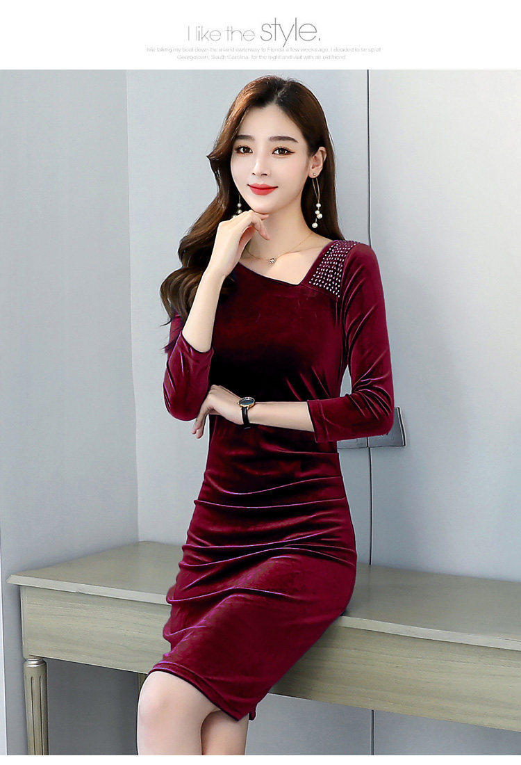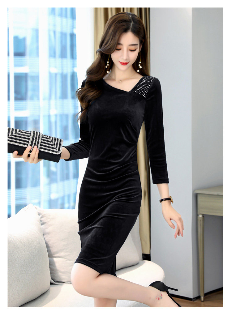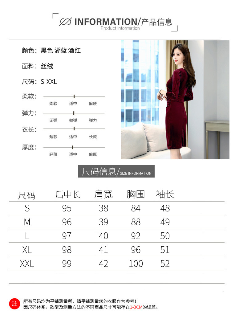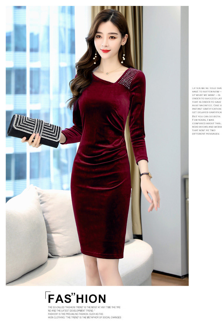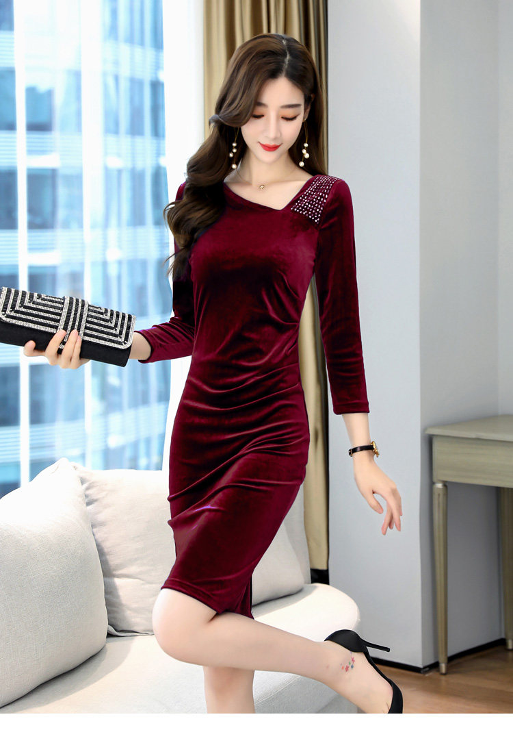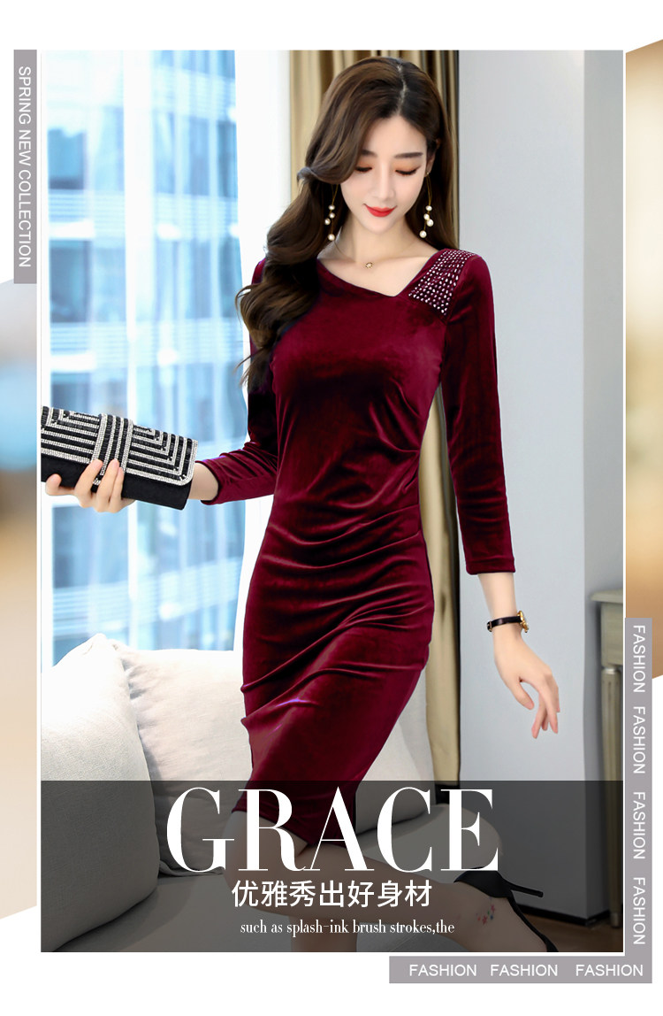 WZNH-YUMEI2038金丝绒旗袍连衣裙新款收腰显瘦气质职业减龄裙子
