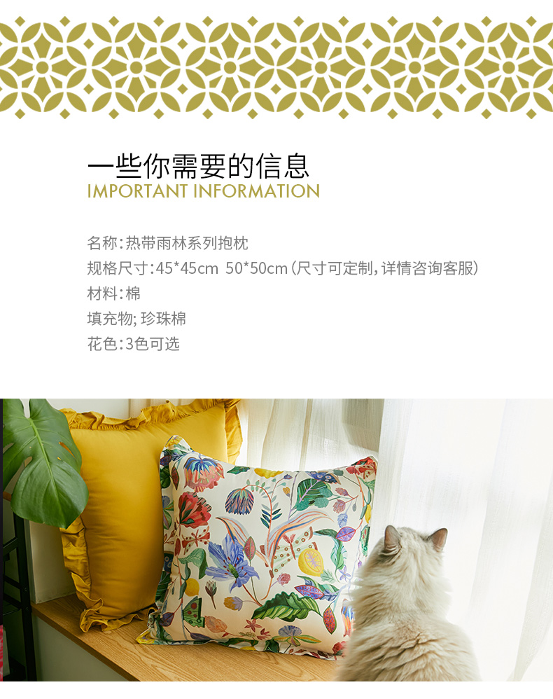 热带雨林系列抱枕荷叶边简约抱枕