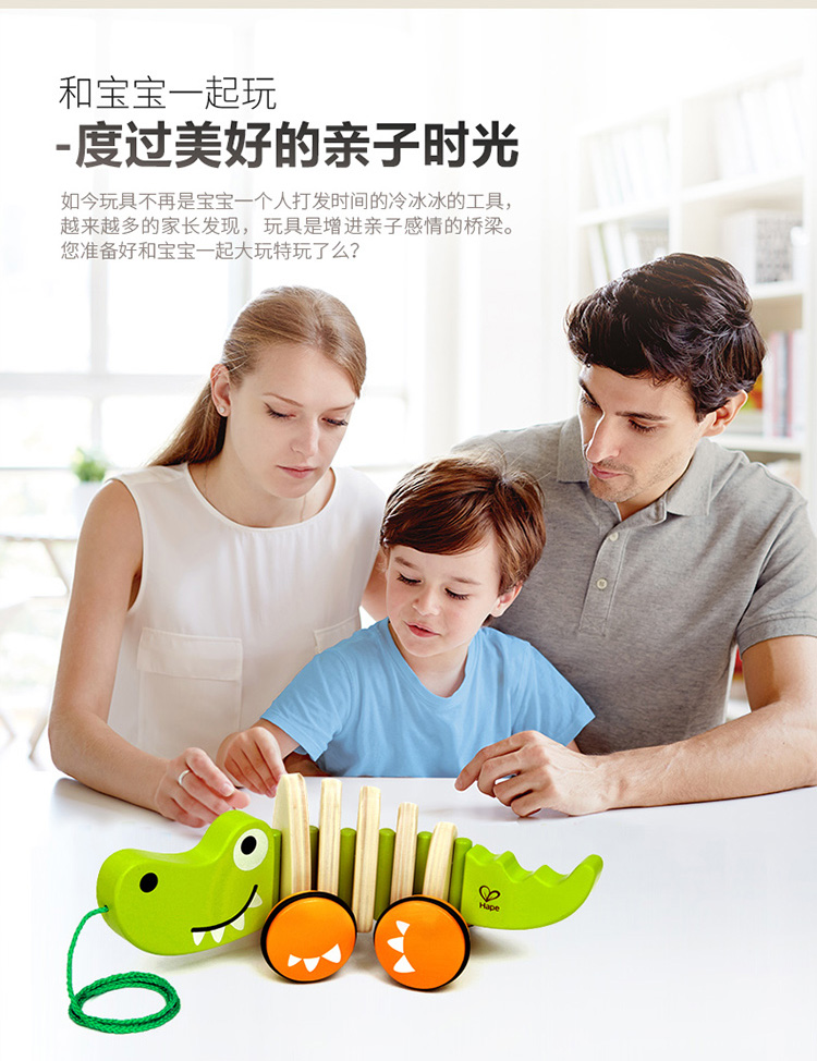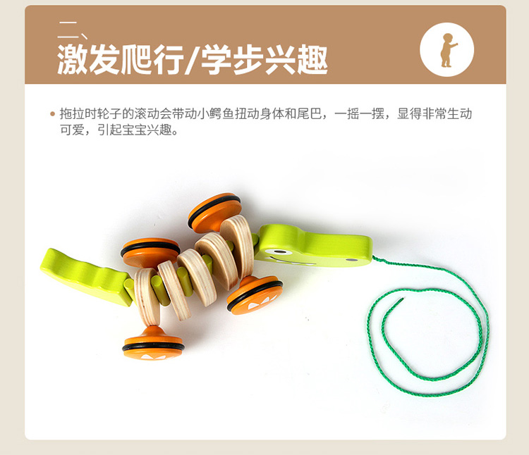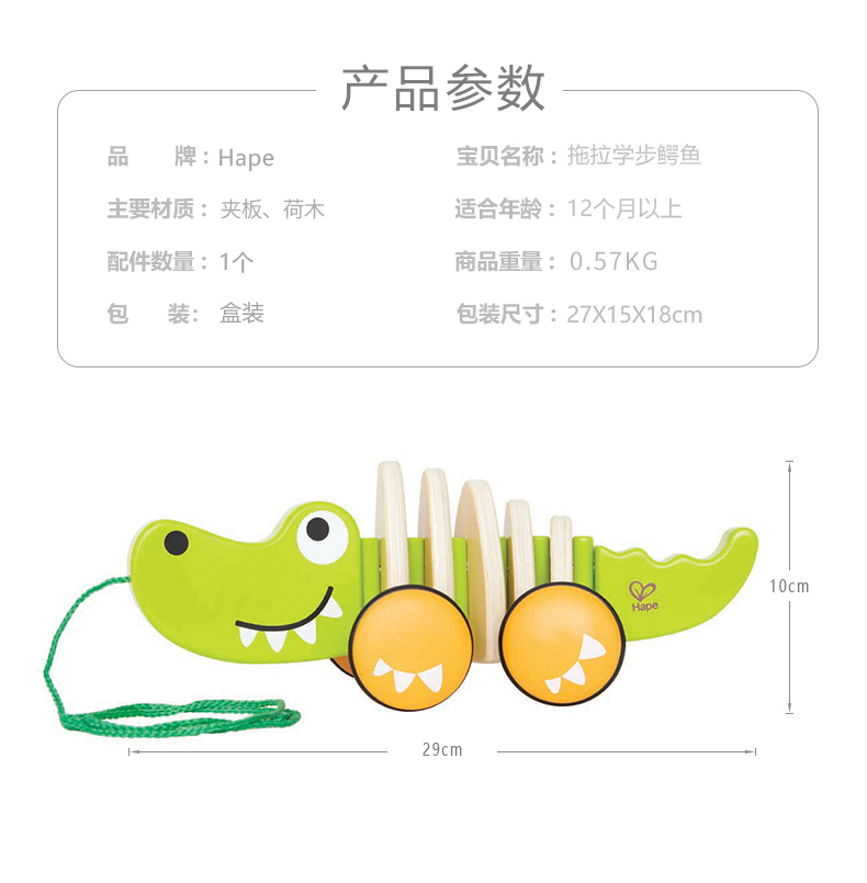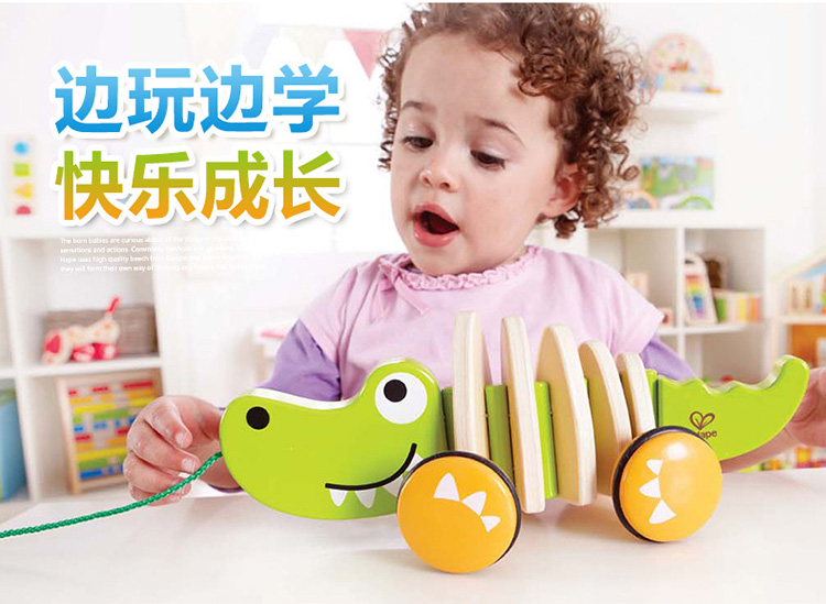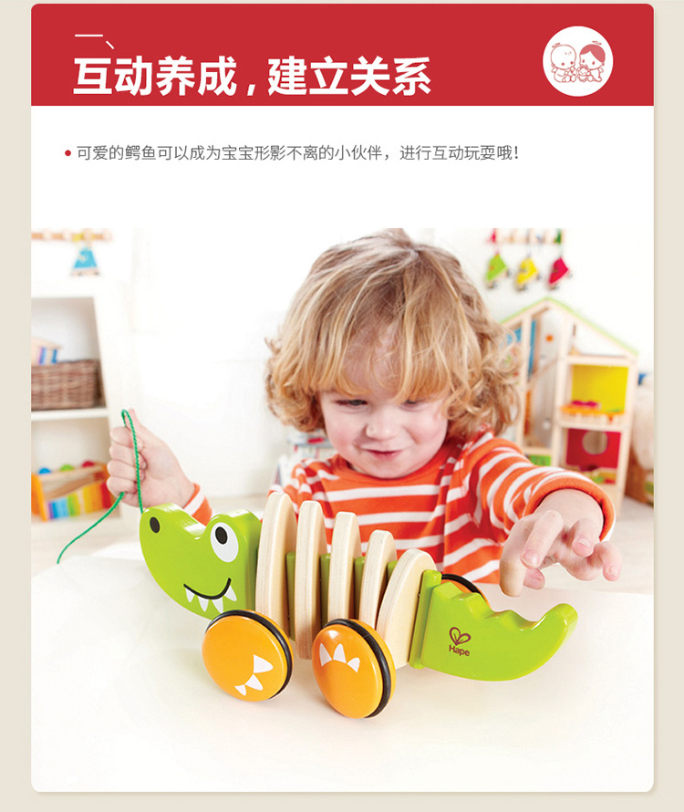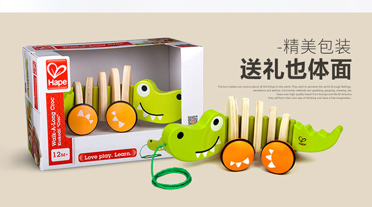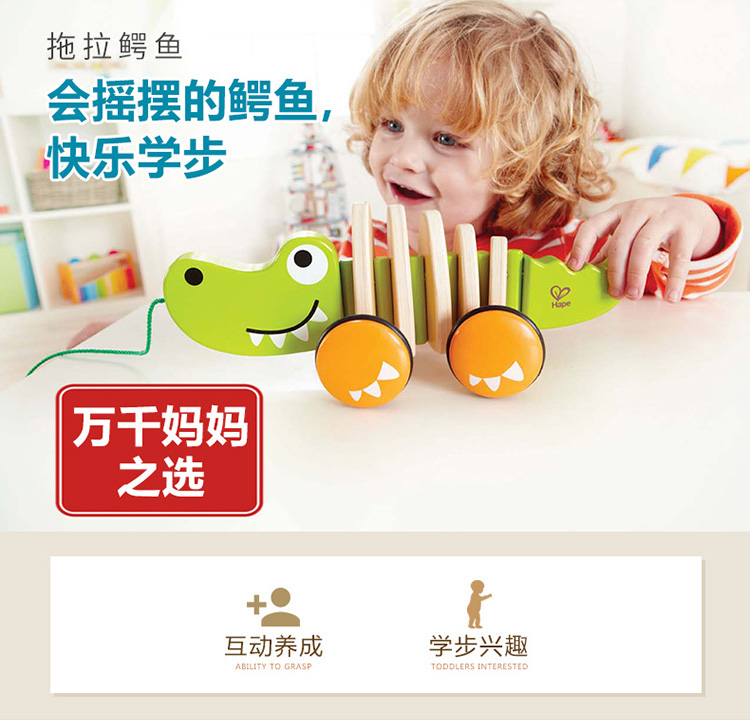 Hape拖拉玩具 木质学步手拉牵绳玩具会摇摆卡通动物字母 儿童节礼物 E0348拖拉鳄鱼