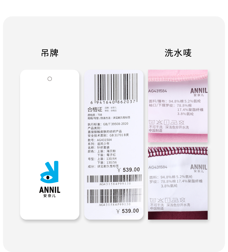 【5A级抗菌】女童运动风针织套装新款安奈儿童装实体店同款AG431584