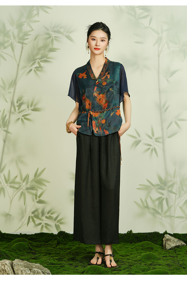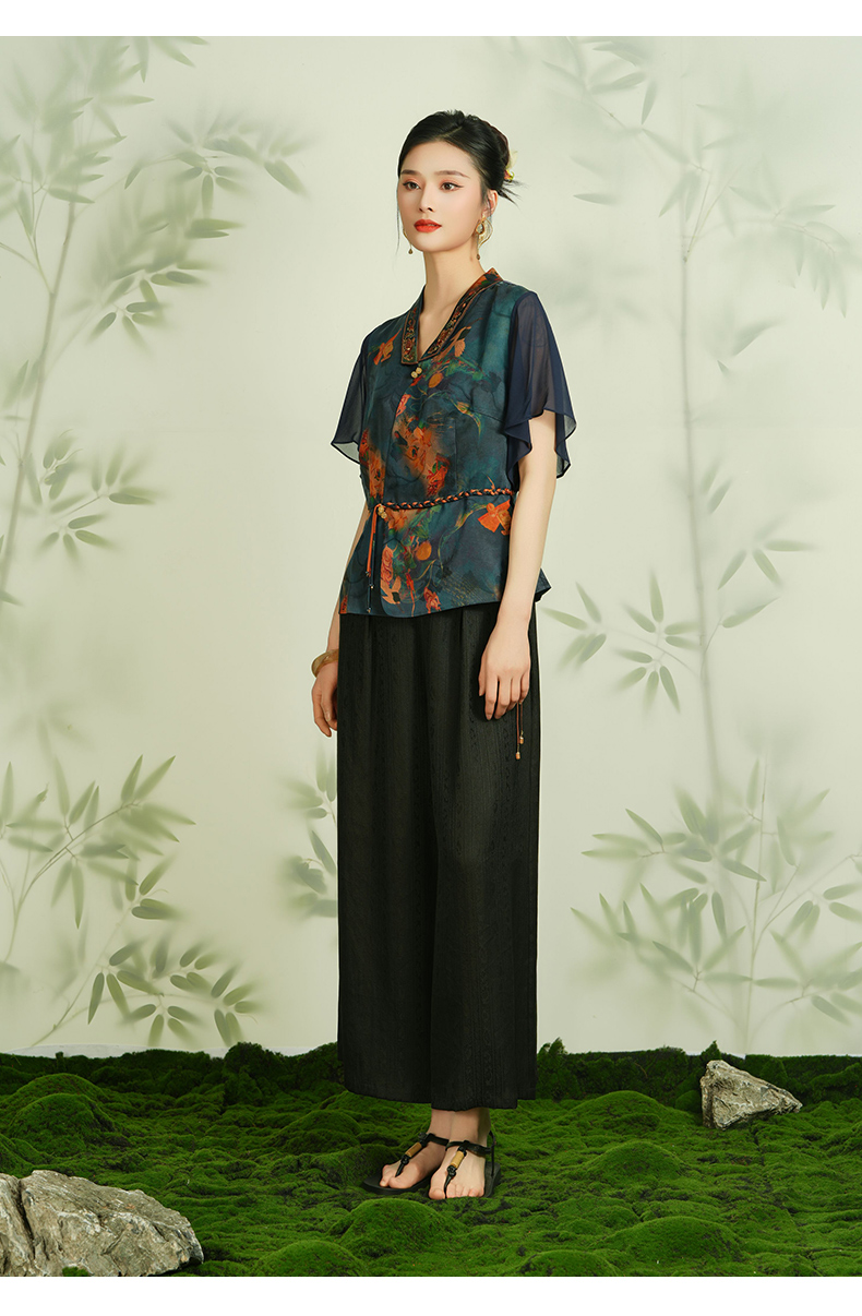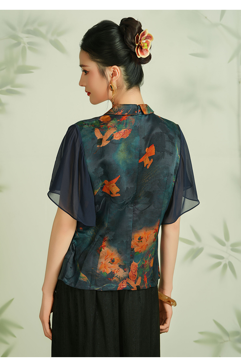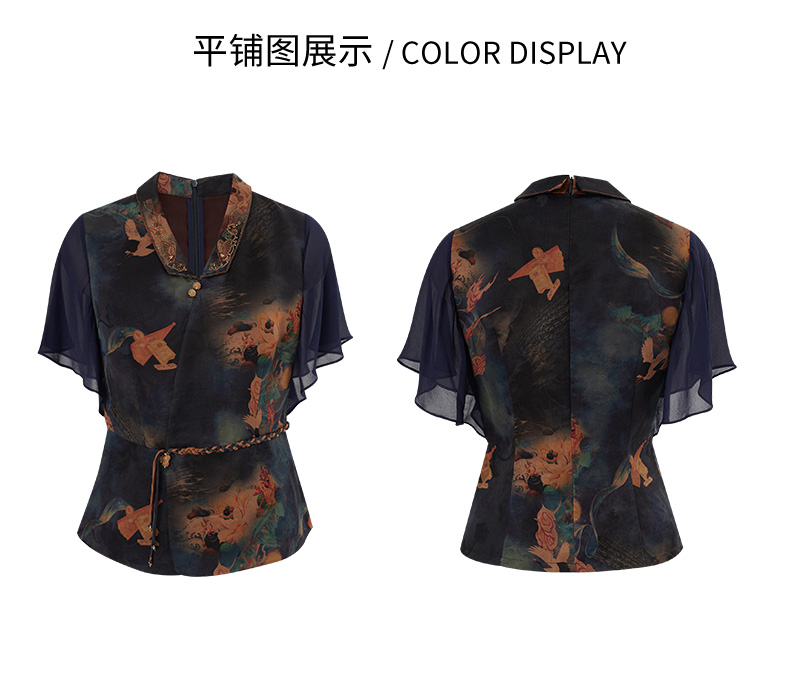 【幽兰天宫图】【香云纱】乔万尼真丝上衣重磅26mm桑蚕丝收腰设计短袖小衫ET2C283