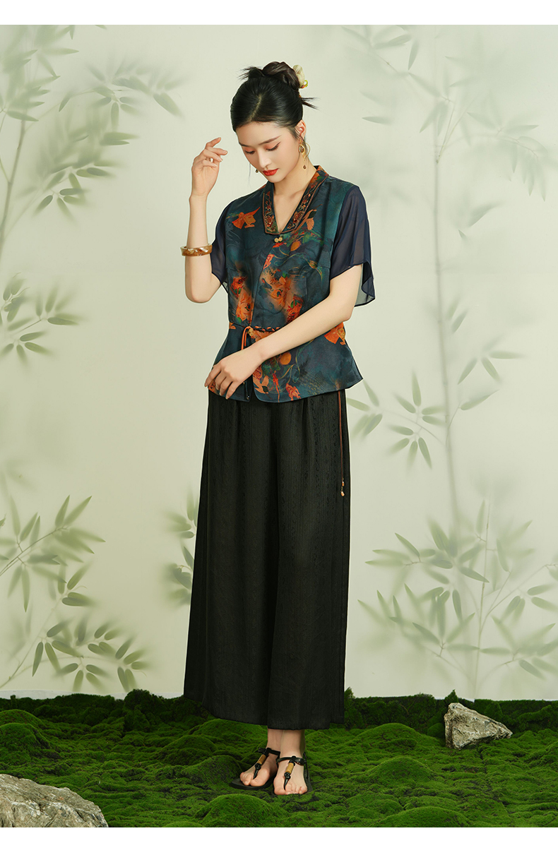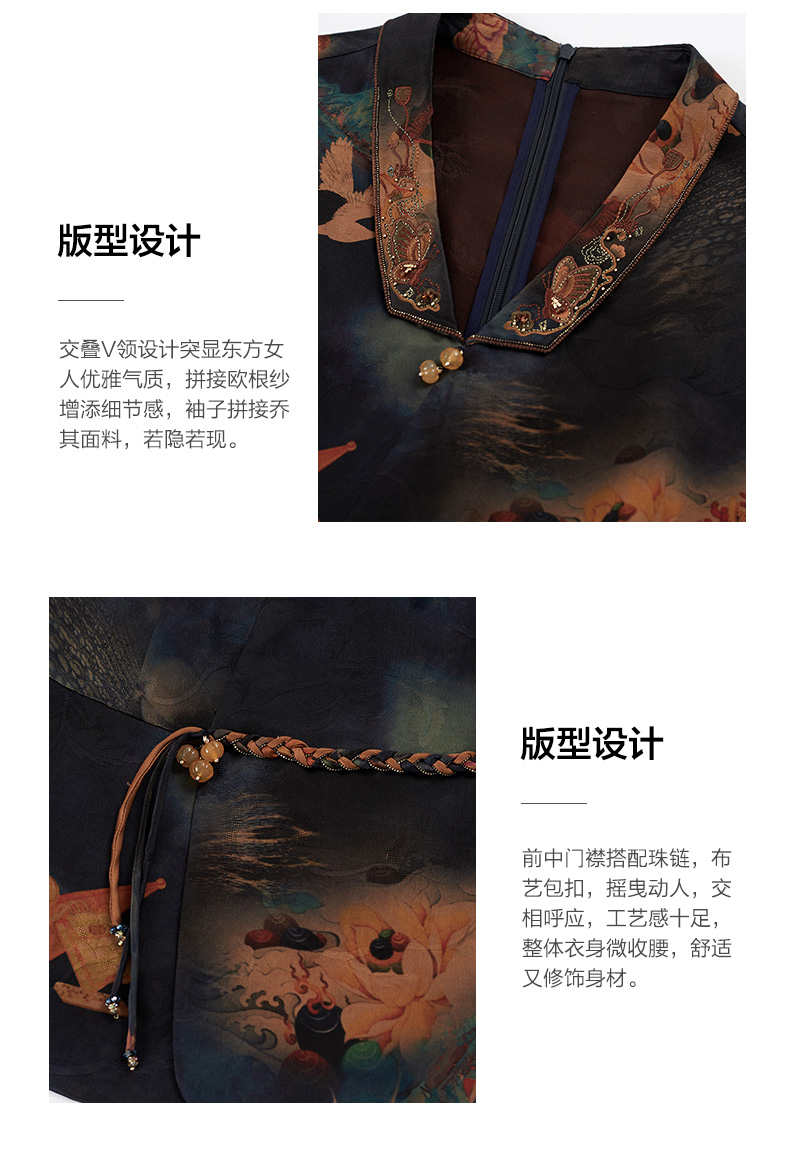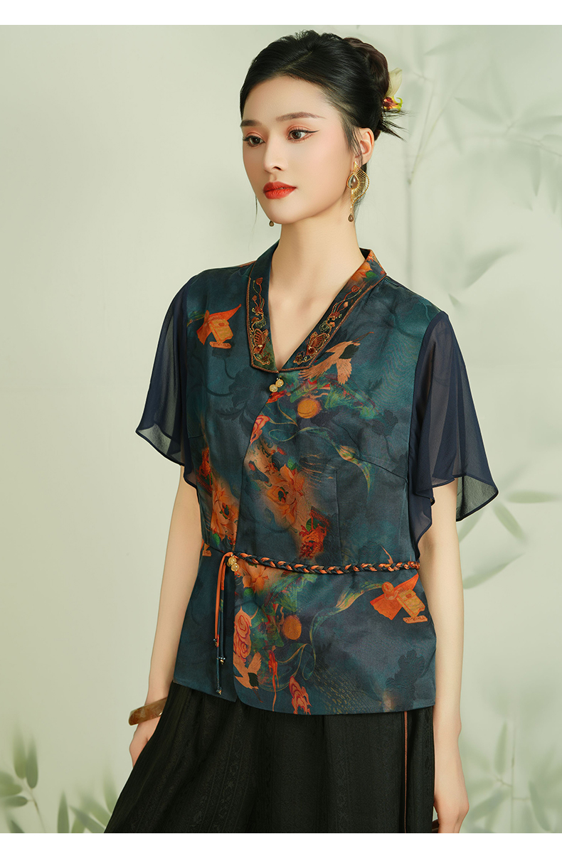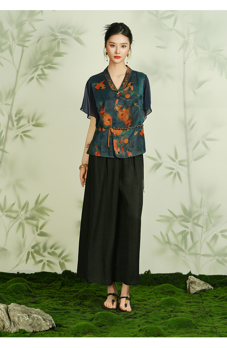 【幽兰天宫图】【香云纱】乔万尼真丝上衣重磅26mm桑蚕丝收腰设计短袖小衫ET2C283