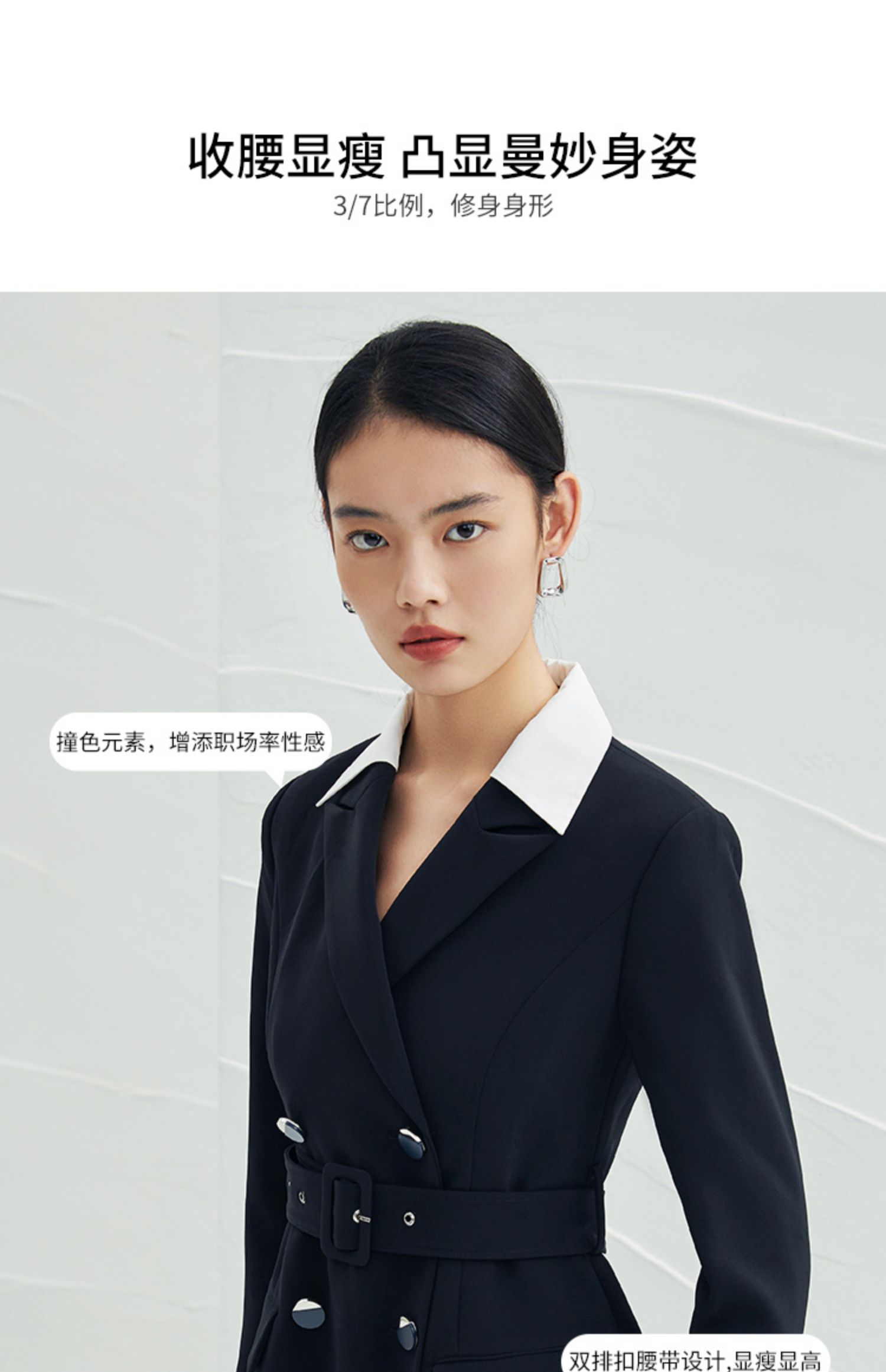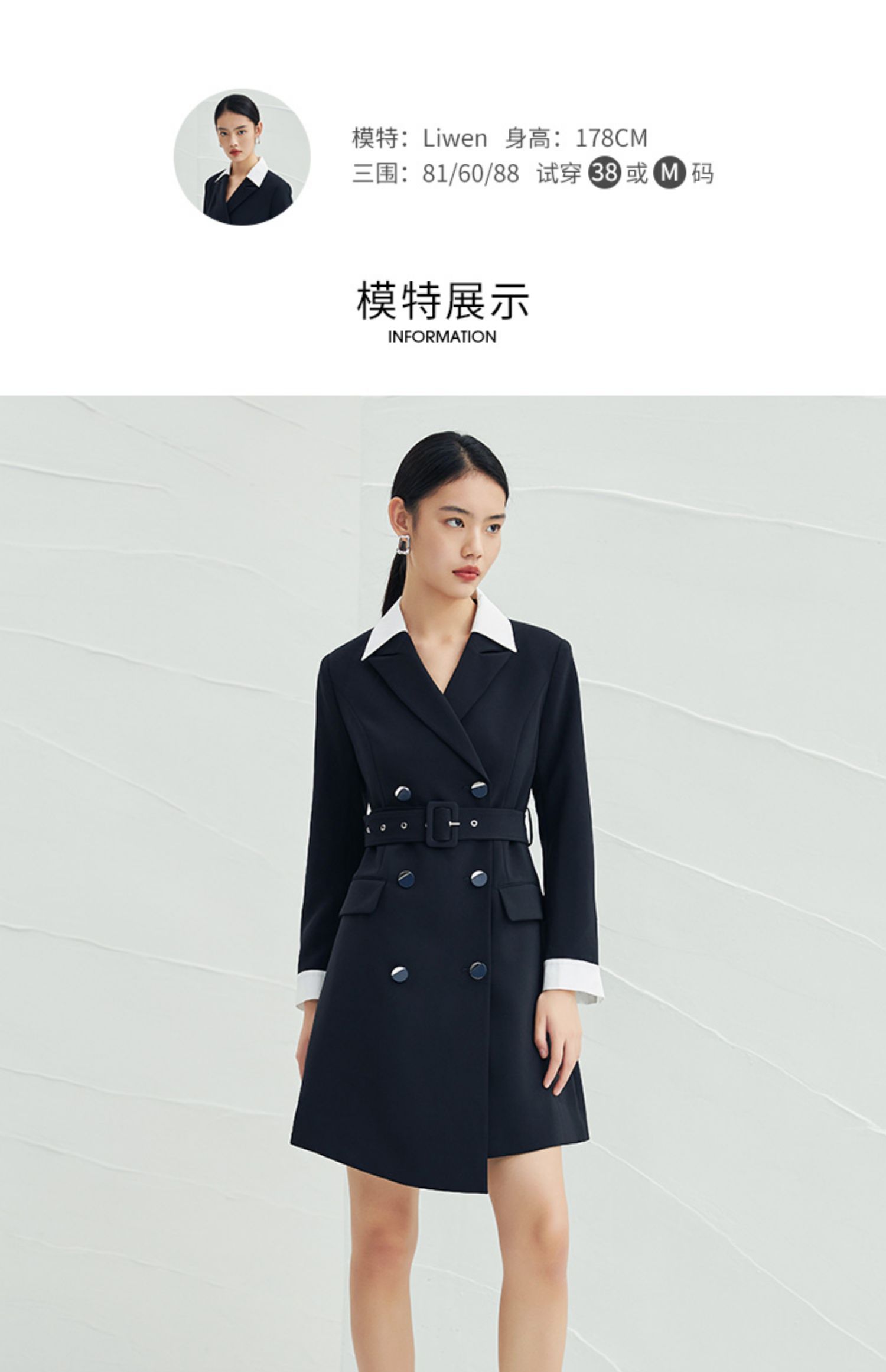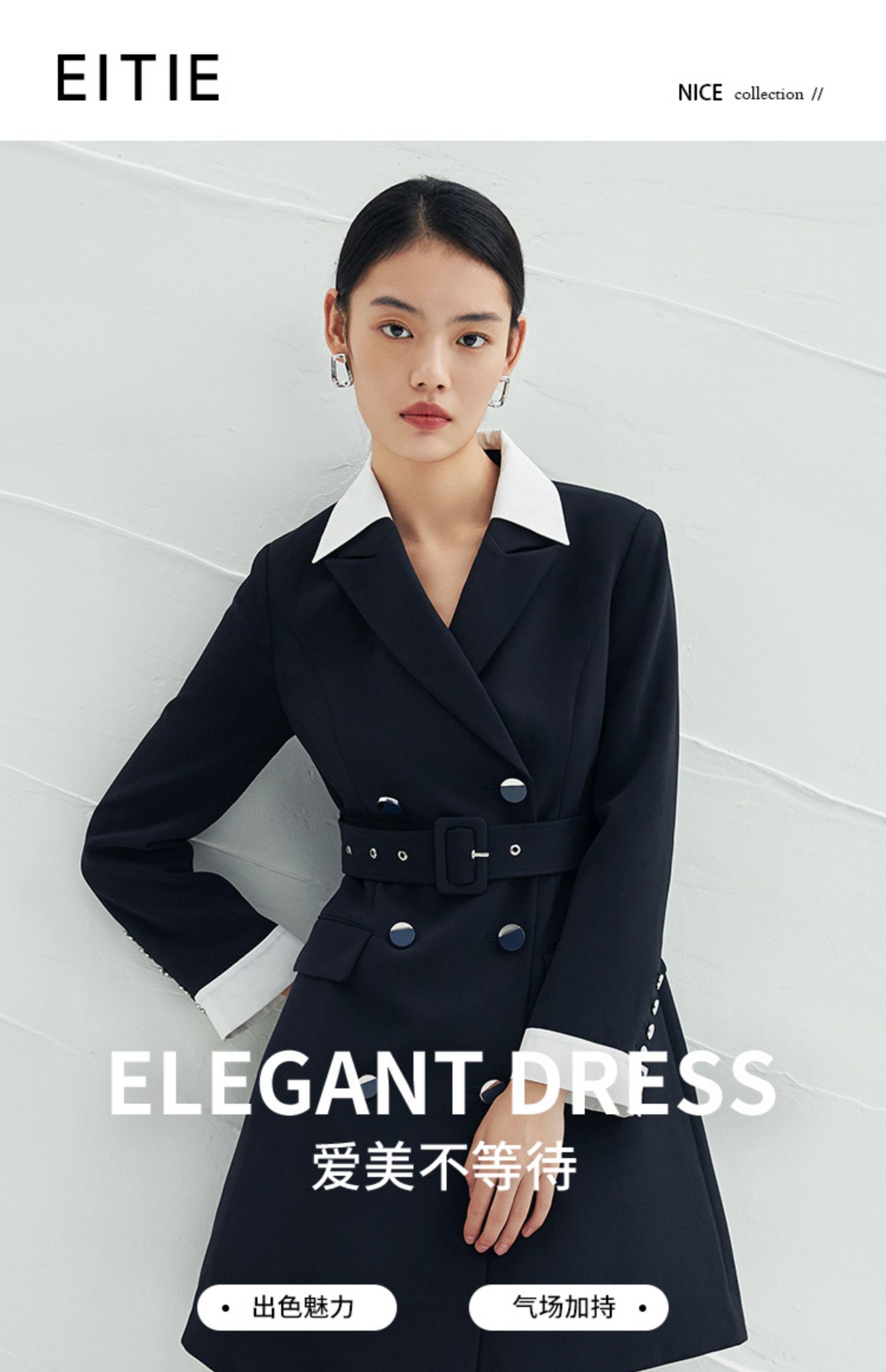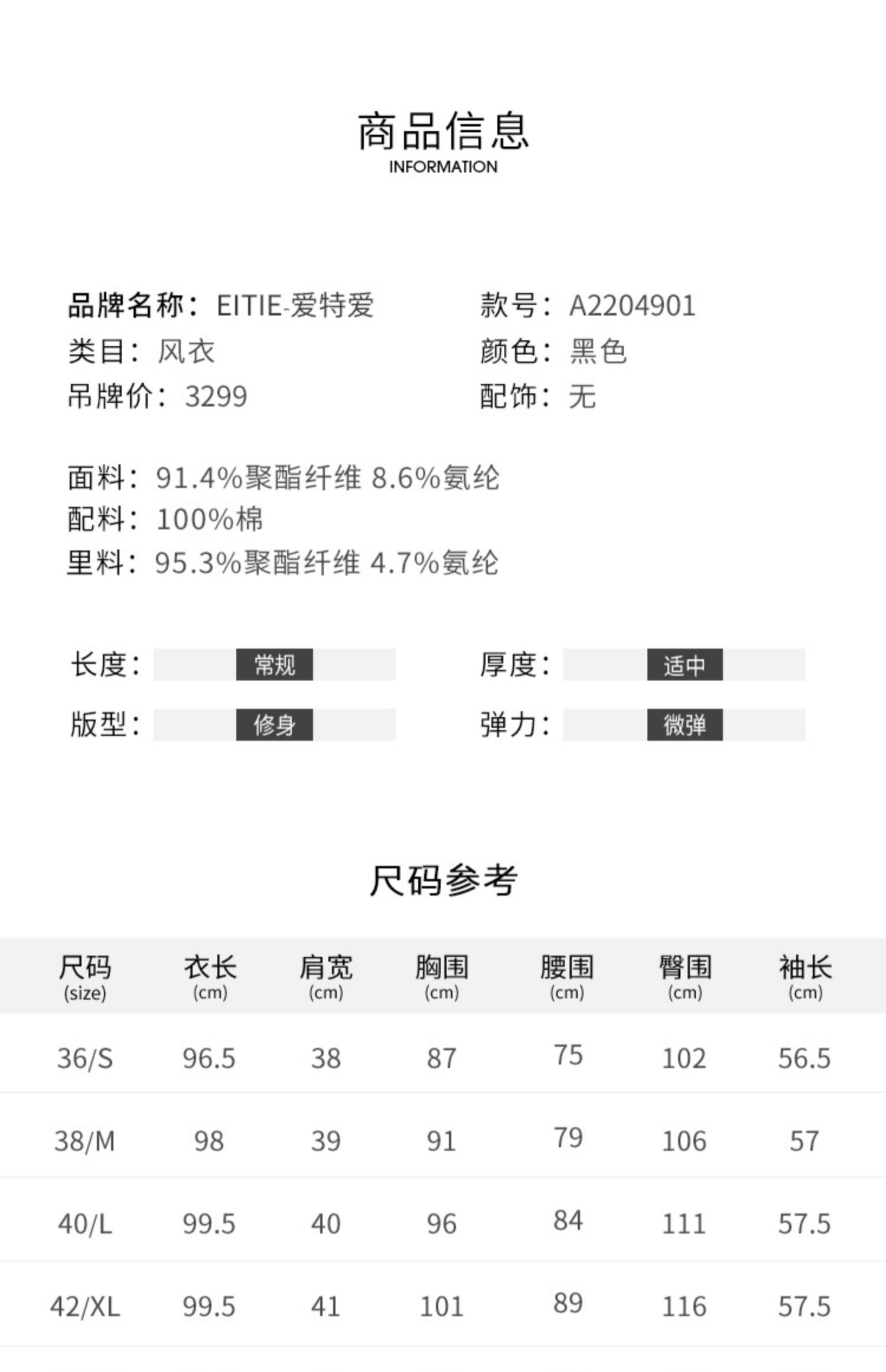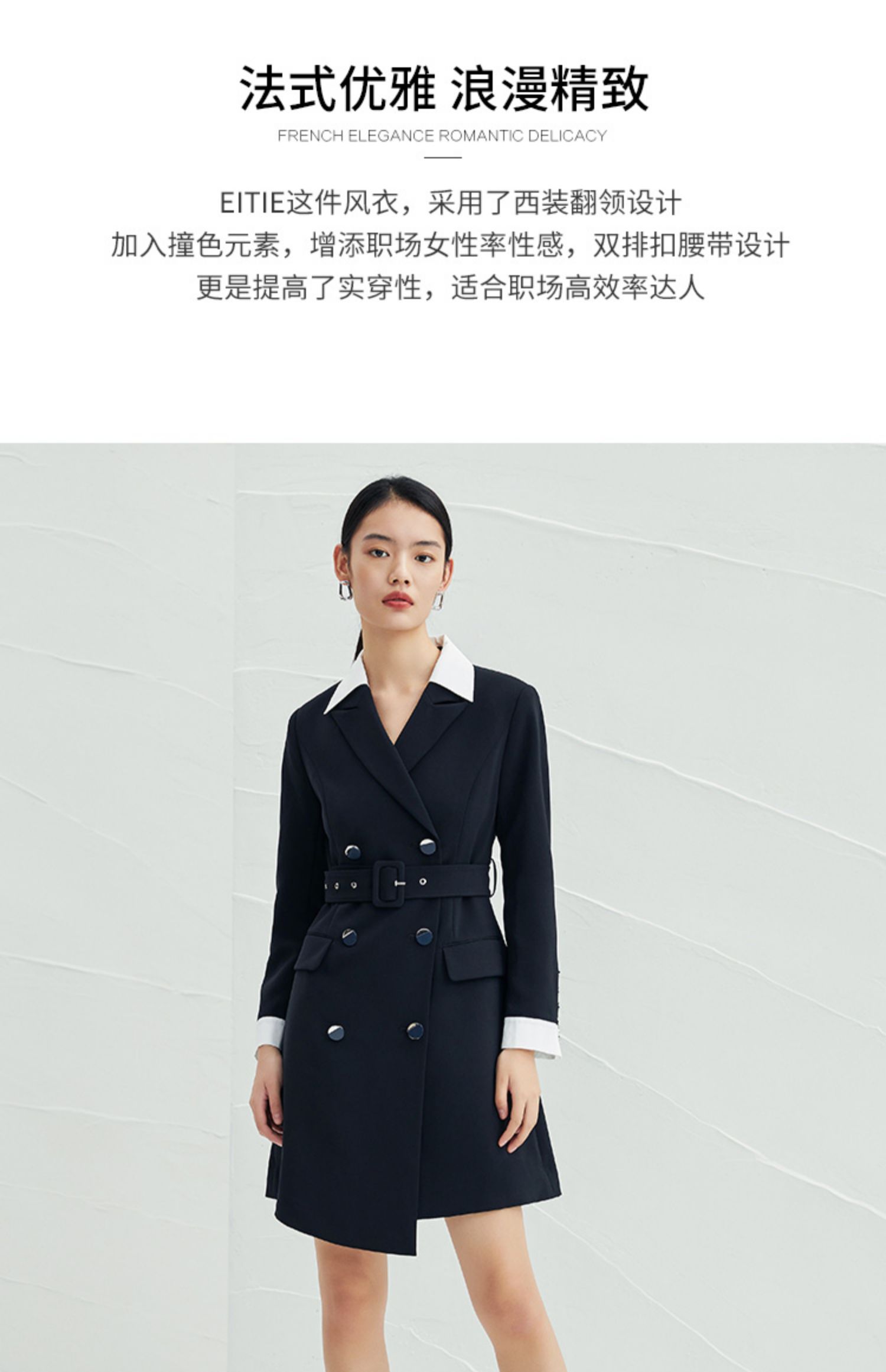 EITIE爱特爱春款新品时尚通勤职业干练收腰双排扣风衣外套A2204901