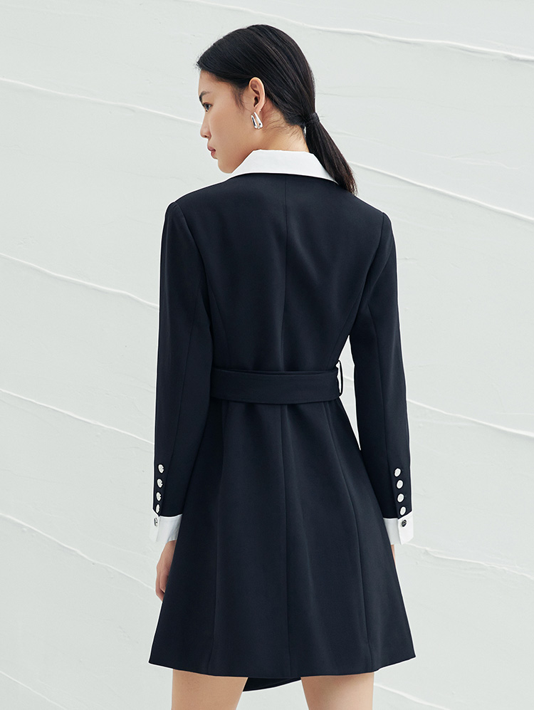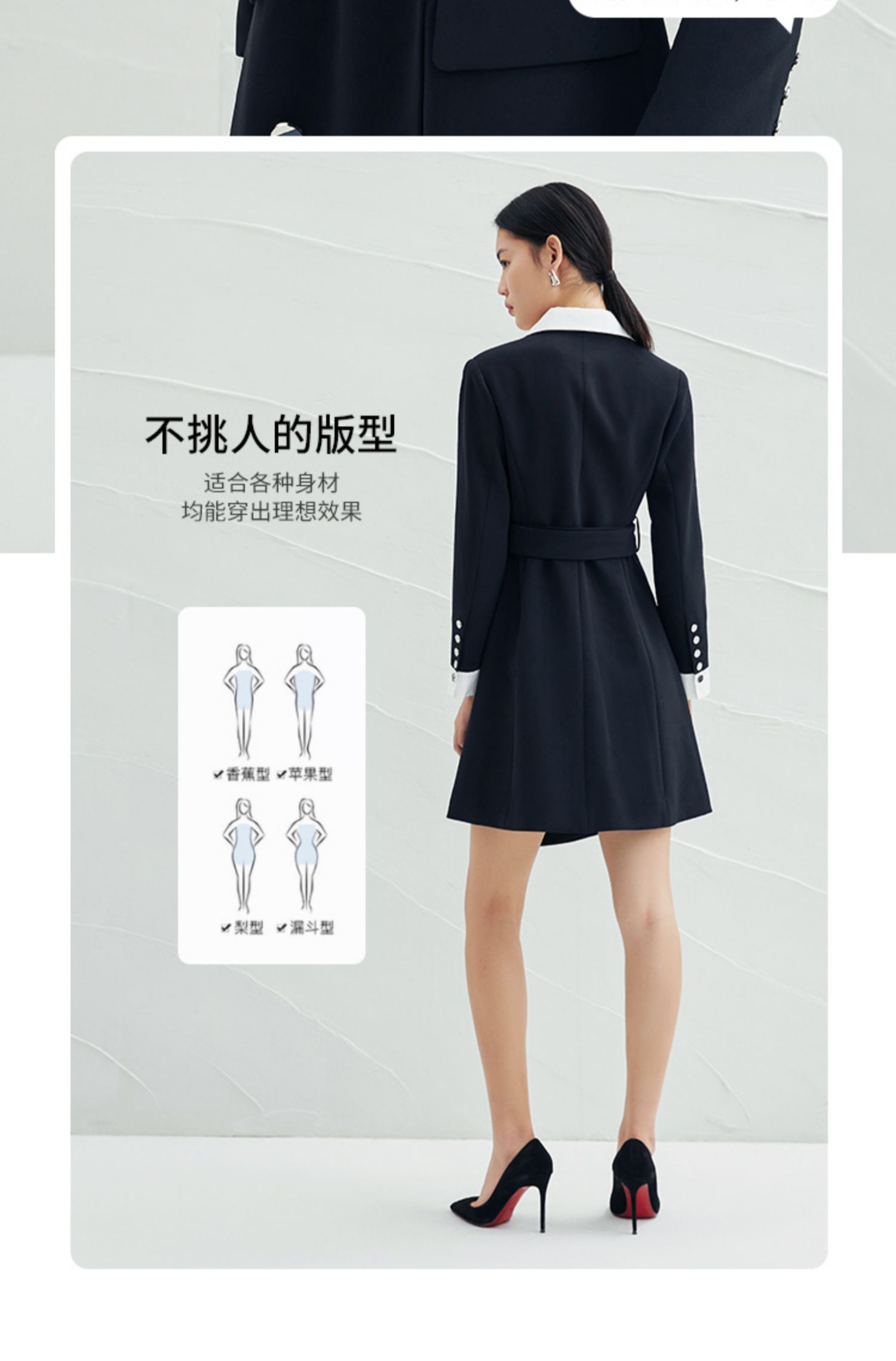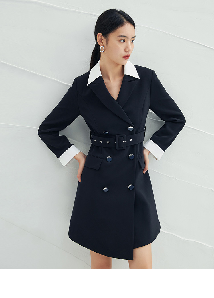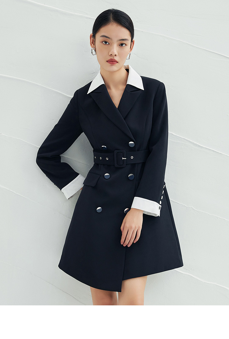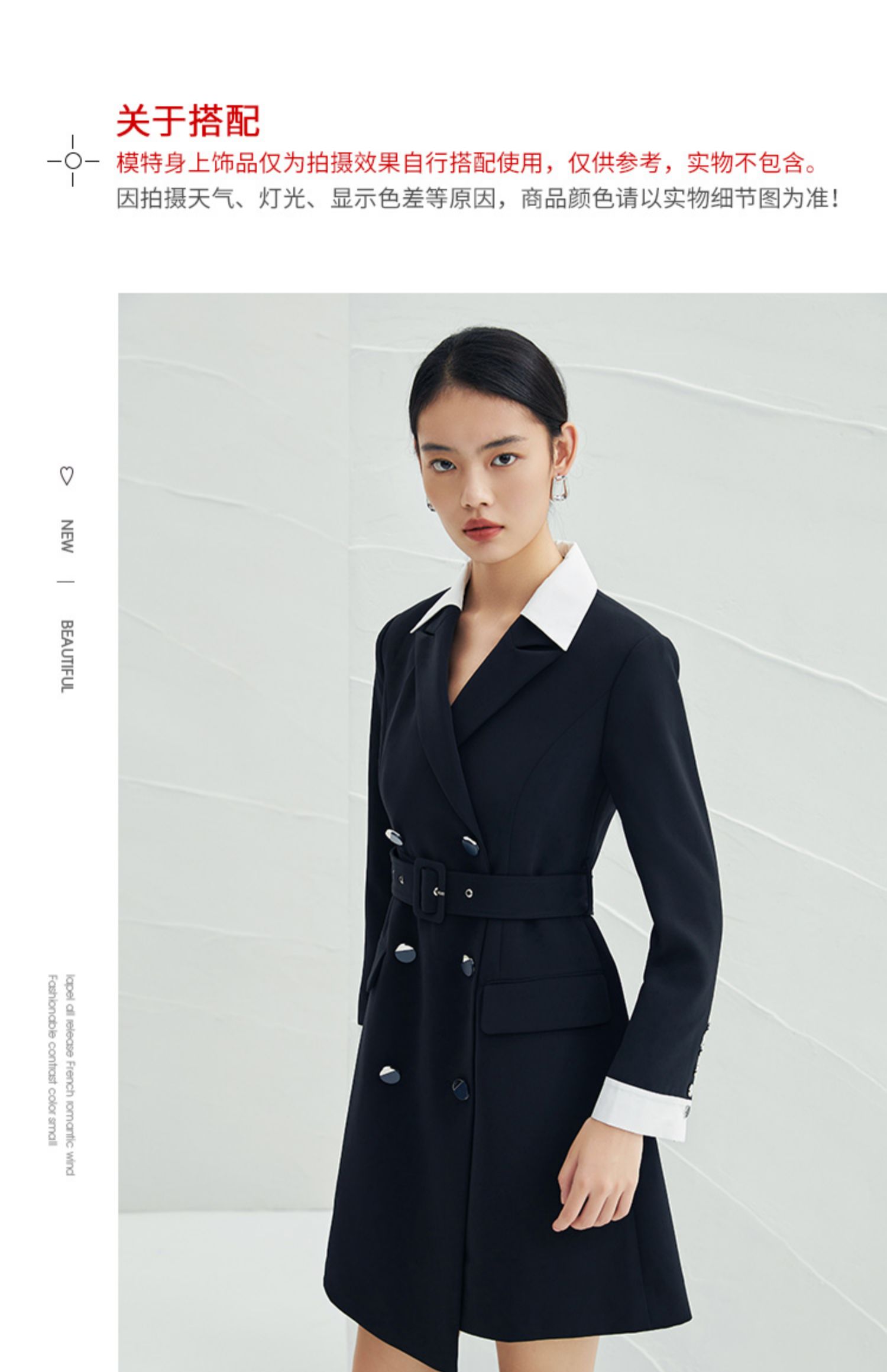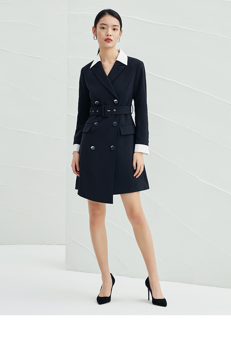 EITIE爱特爱春款新品时尚通勤职业干练收腰双排扣风衣外套A2204901