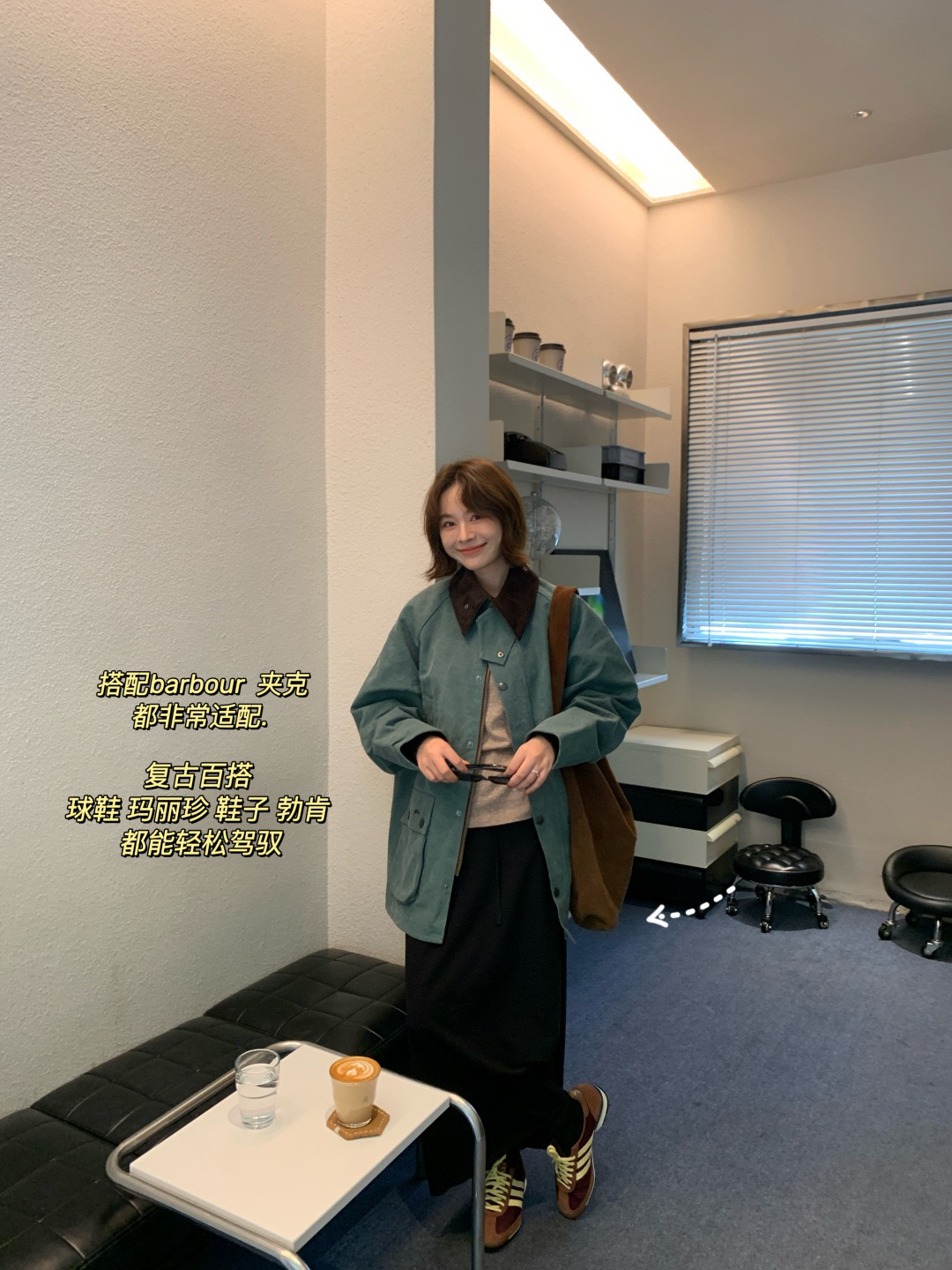 领口是那种很特别的双层毛边领口 搭配松弛落肩廓形 上身自带慵懒气息