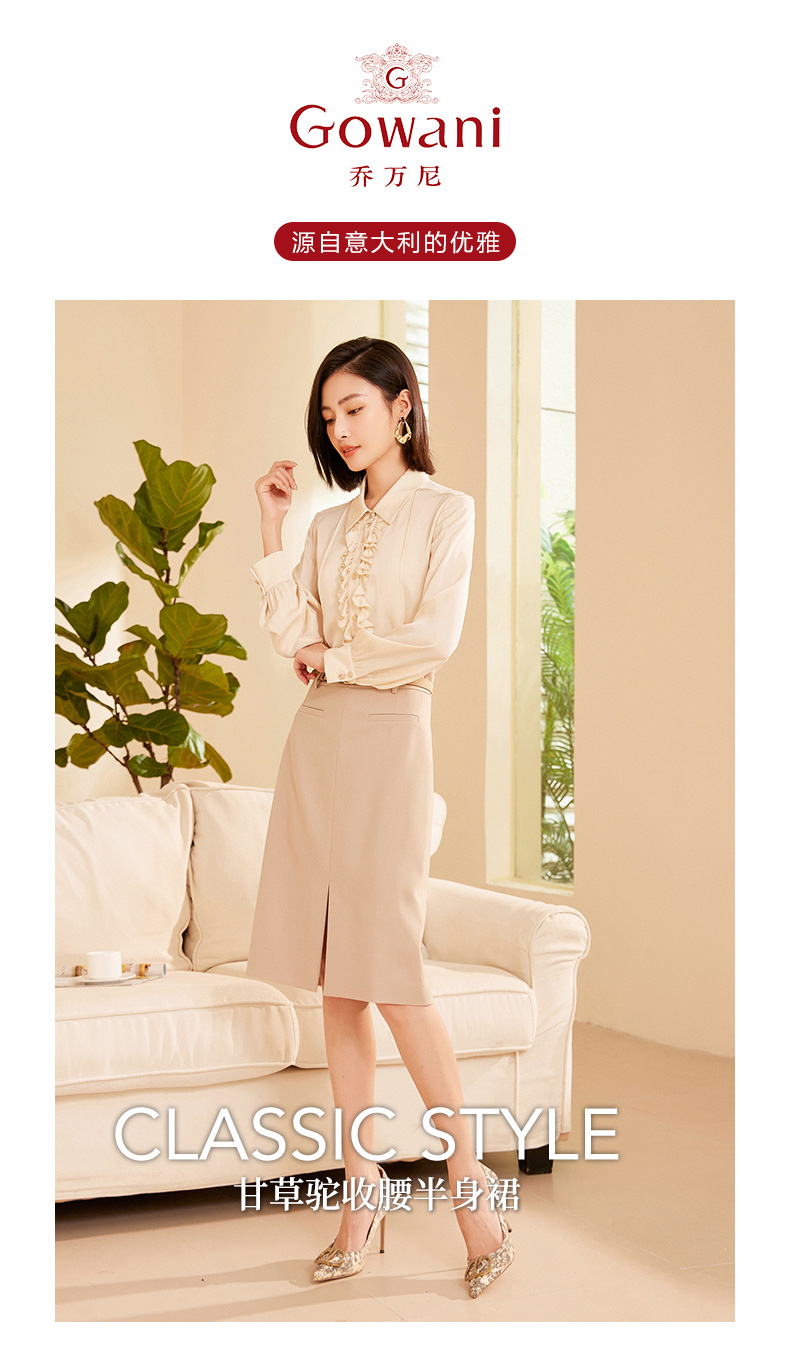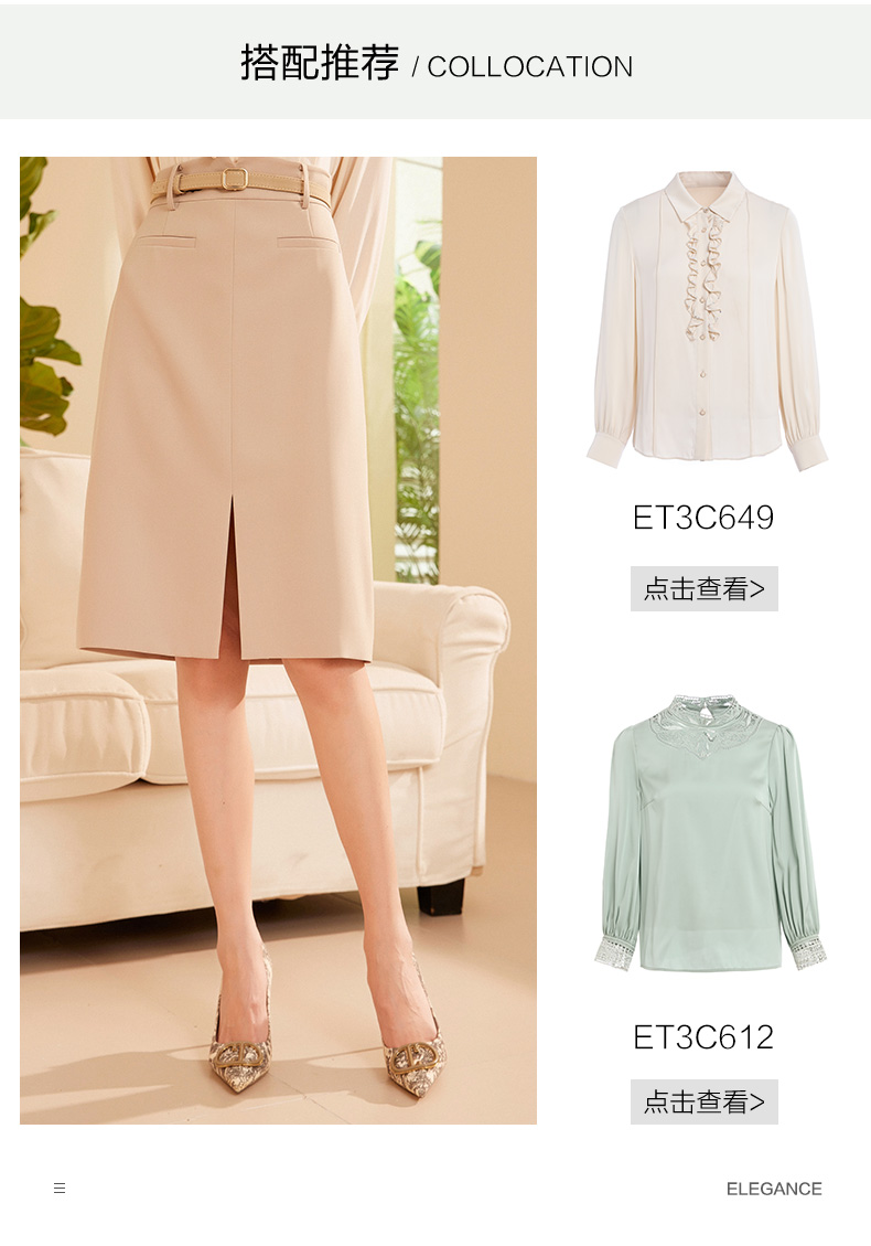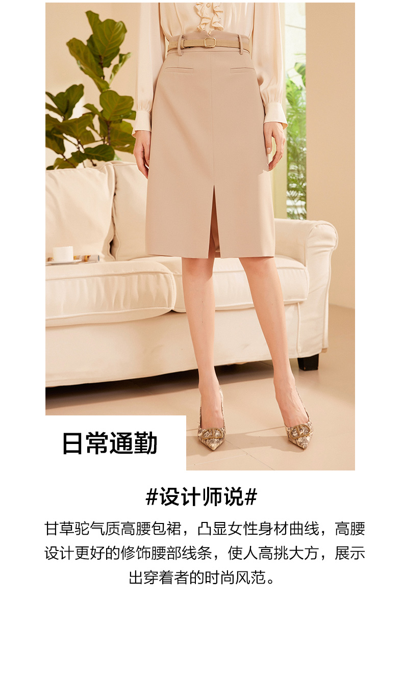 乔万尼新品高腰半身裙通勤纯色百搭简约ET3D617