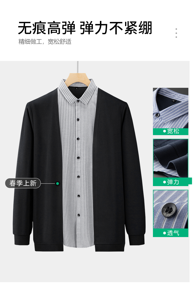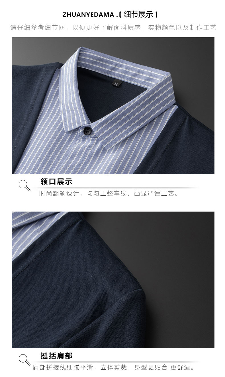 【新款DDA】大依优型大码假两件衬衫男士条纹翻领长袖商务休闲上衣加肥加大胖子 商品图2