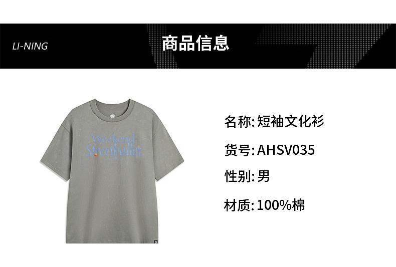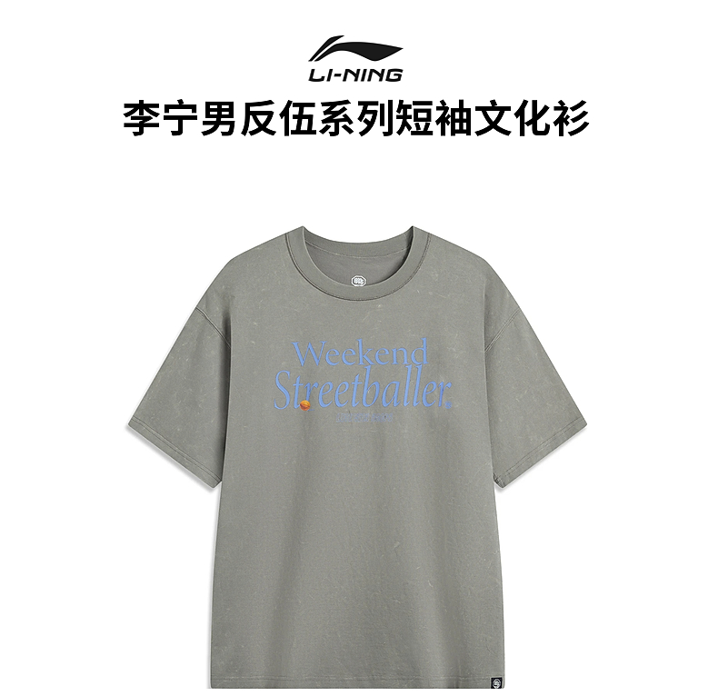 李宁反伍BADFIVE男子宽松短袖文化衫AHSV035