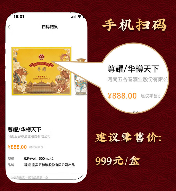 【赠送礼盒礼袋!年货好礼】入口甘美,粘稠度高,五粮出品华樽天下礼盒装白酒500ml带手提袋52度浓香型白酒。rf