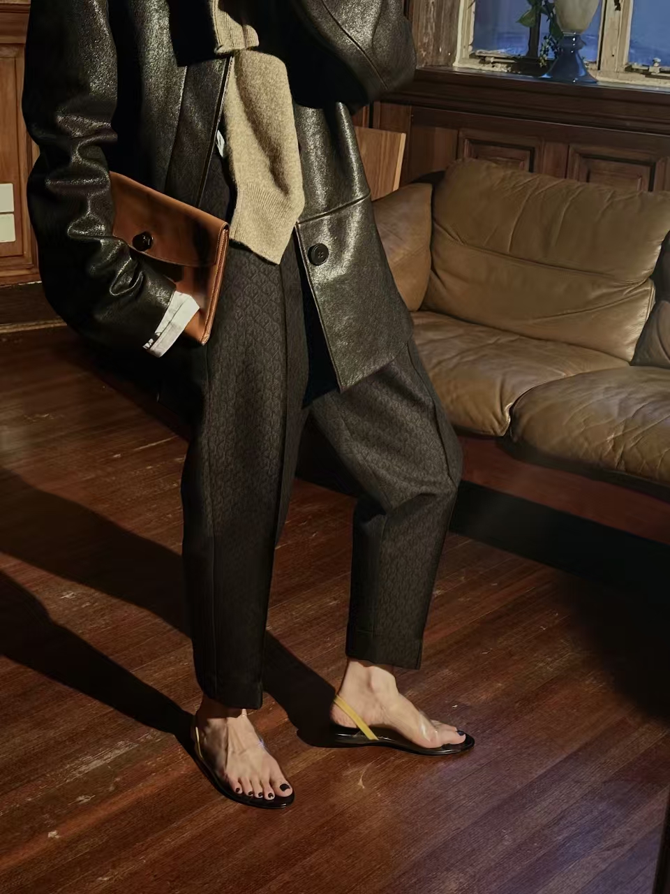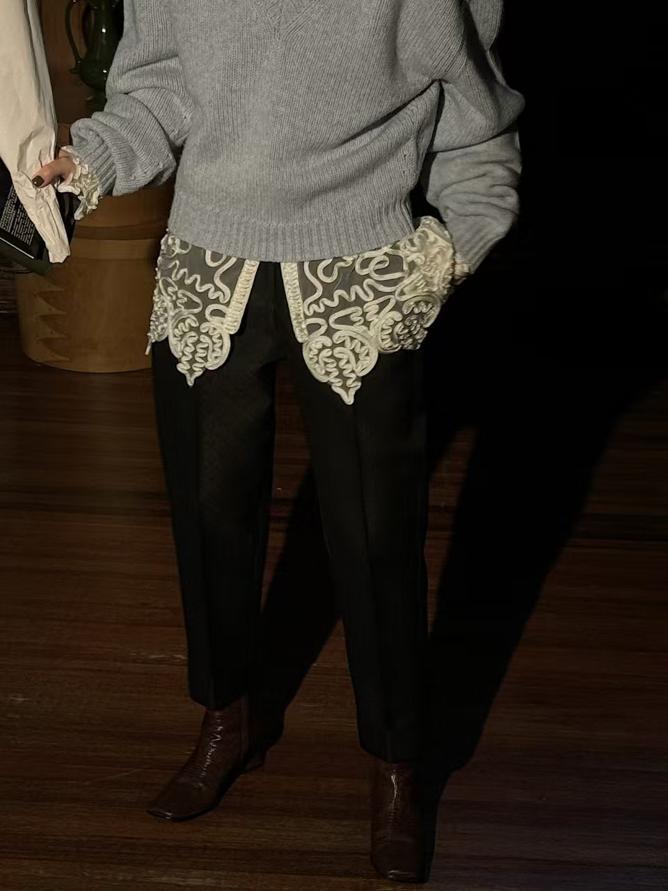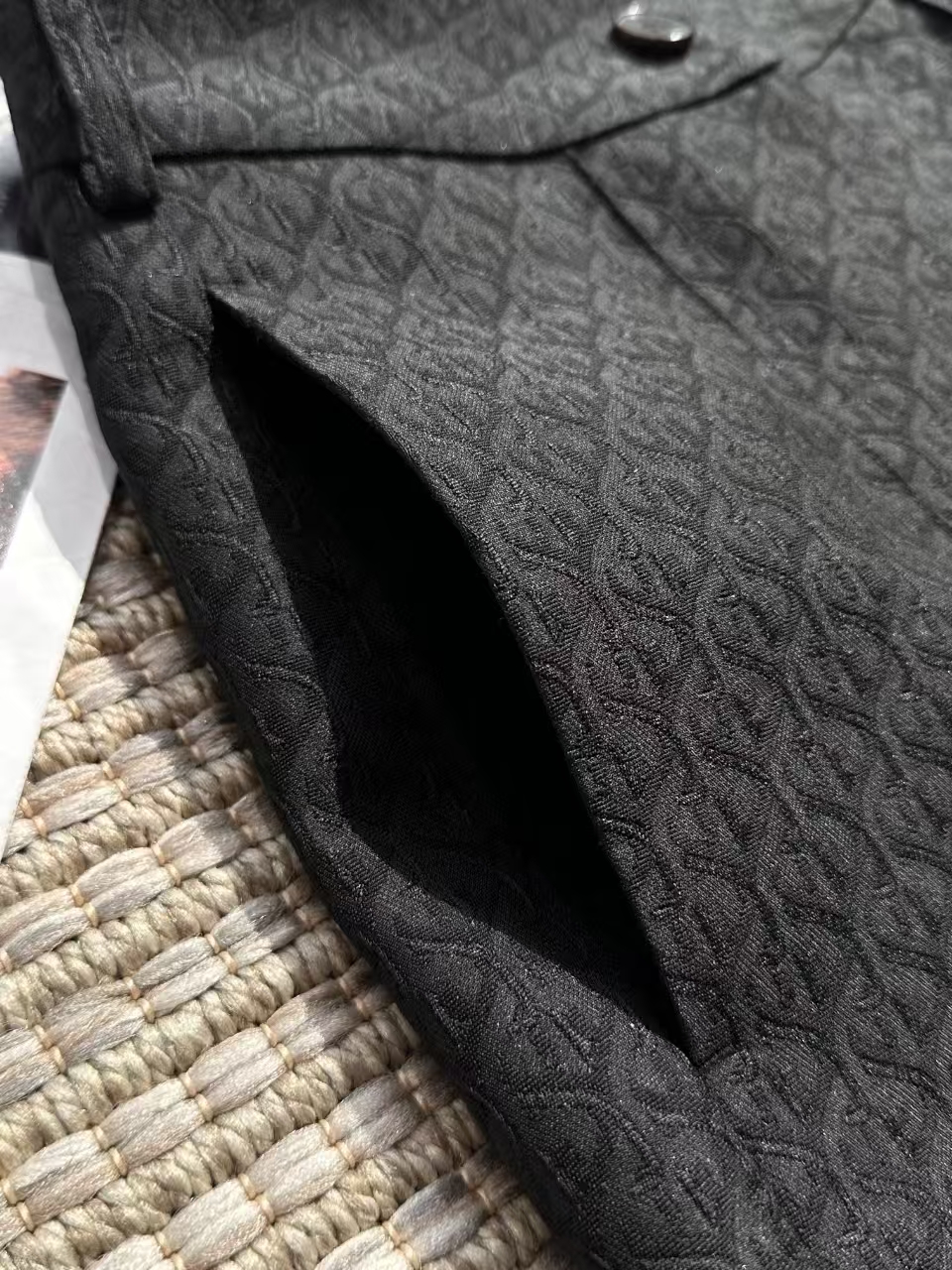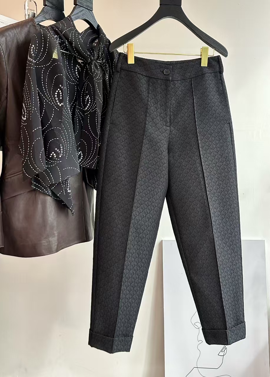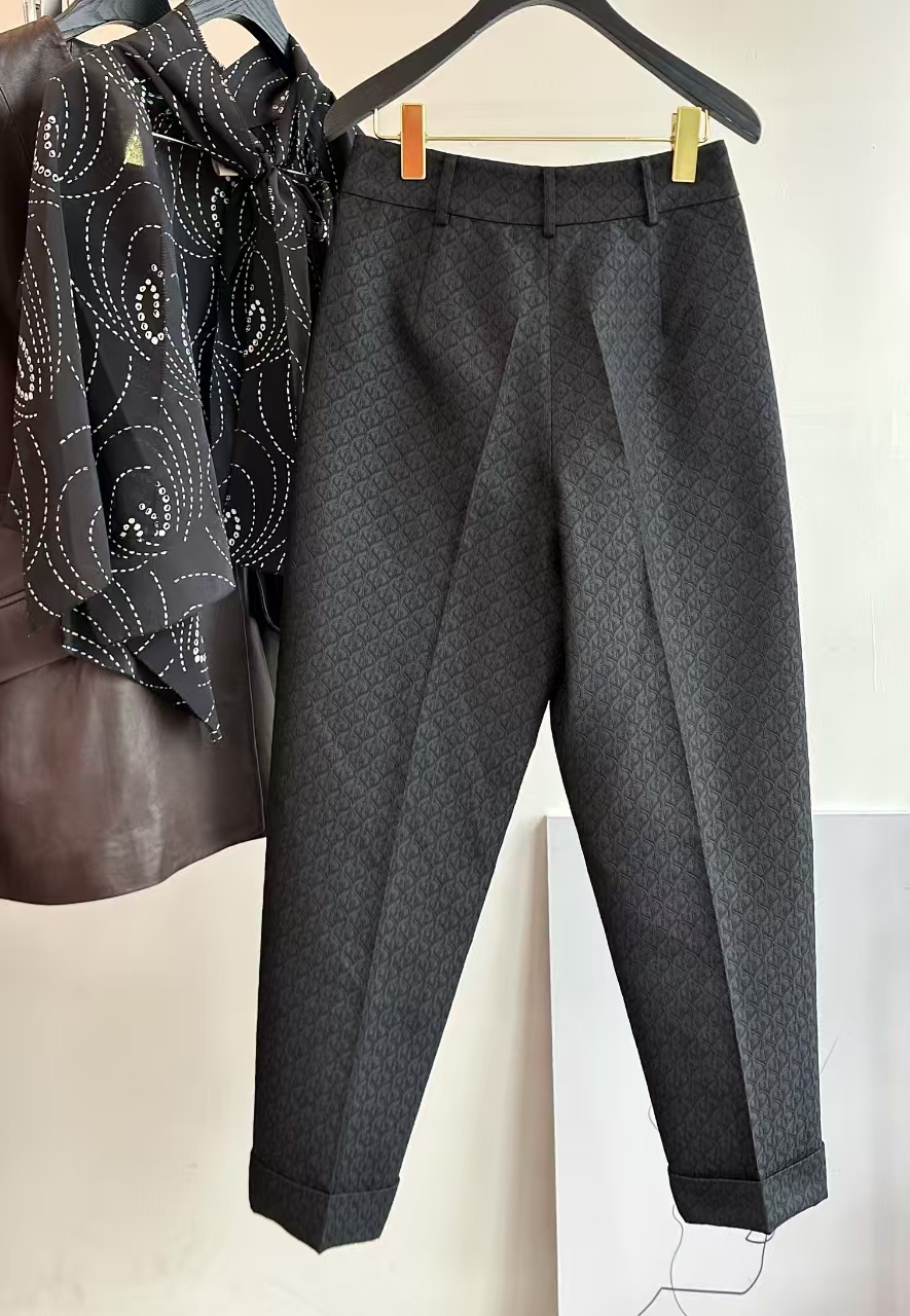 顺丰包邮71858洛诗琳黑色提花翻边锥形九分裤859