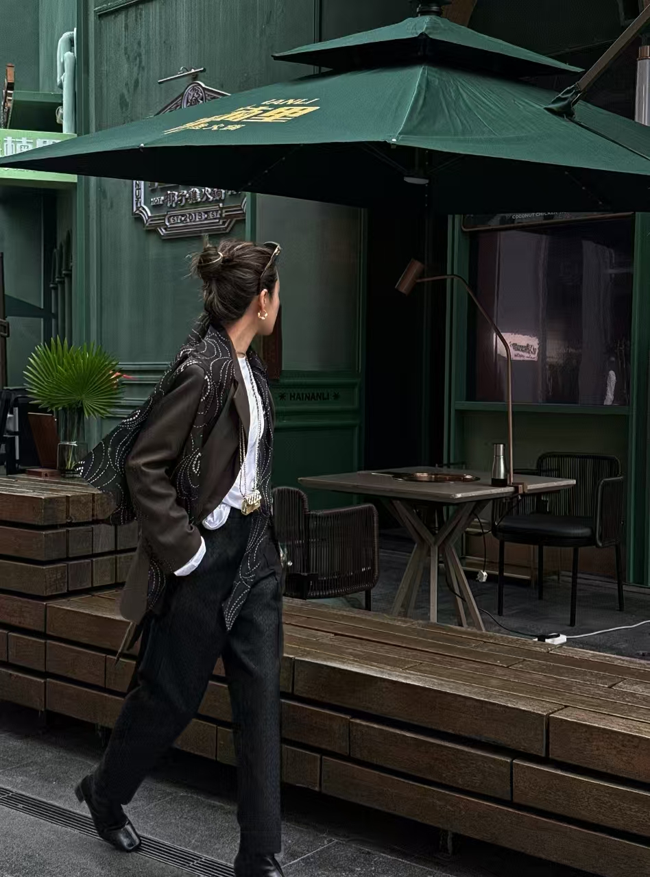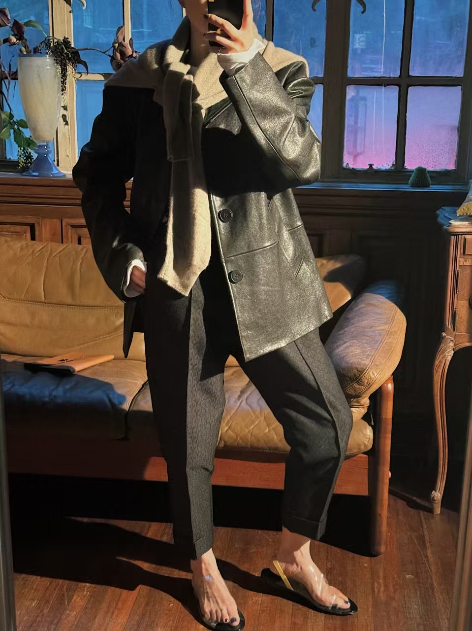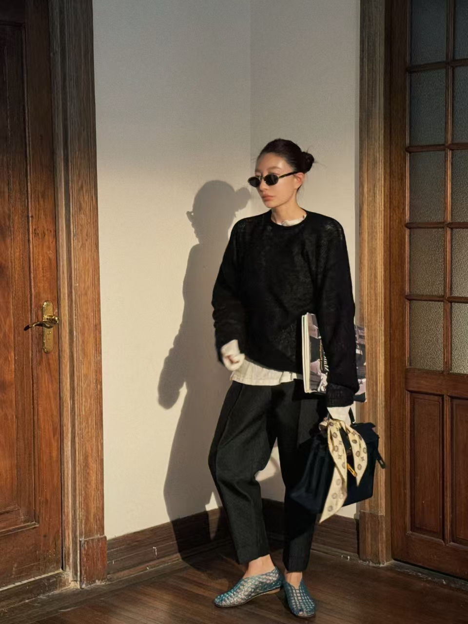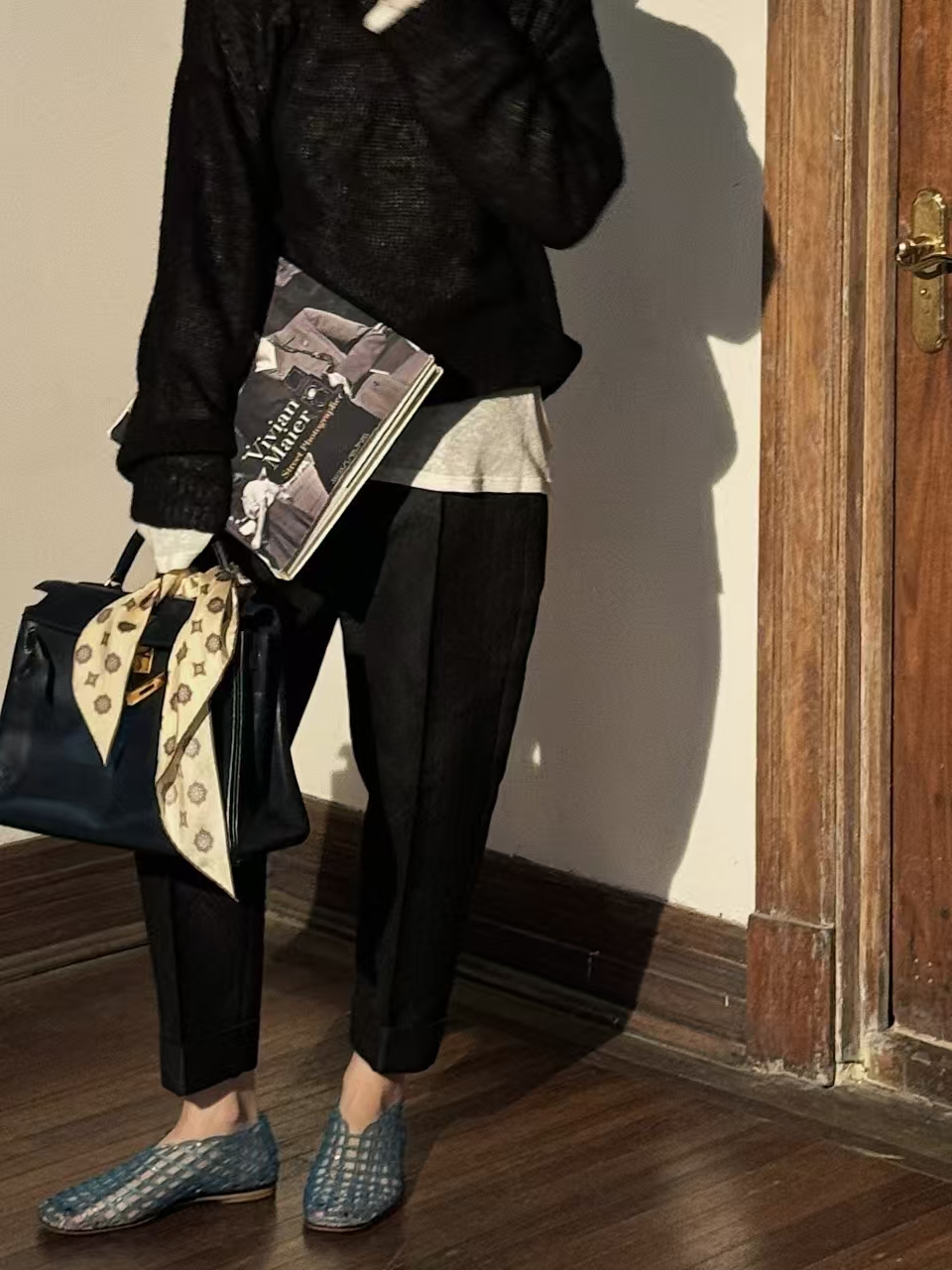 顺丰包邮71858洛诗琳黑色提花翻边锥形九分裤859