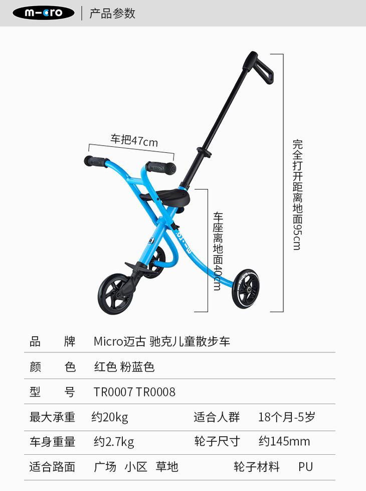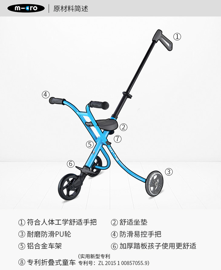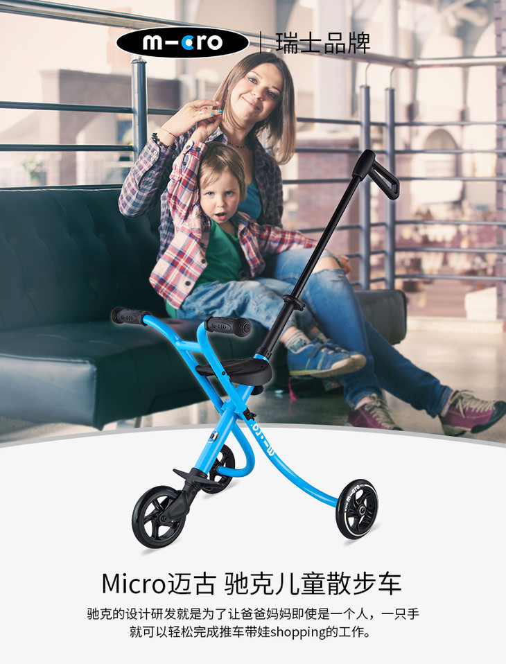 瑞士micro迈古米高溜娃神器 遛娃车儿童手推车可折叠三轮车升级版