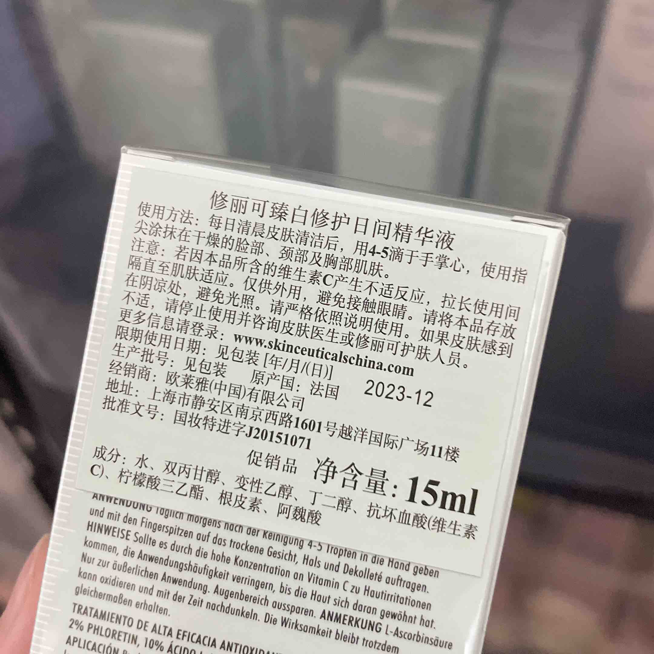 价值800 修丽可CF 日间精华液 高浓度VC抗氧化抗初老美白淡斑修护中样15ml 国内专柜