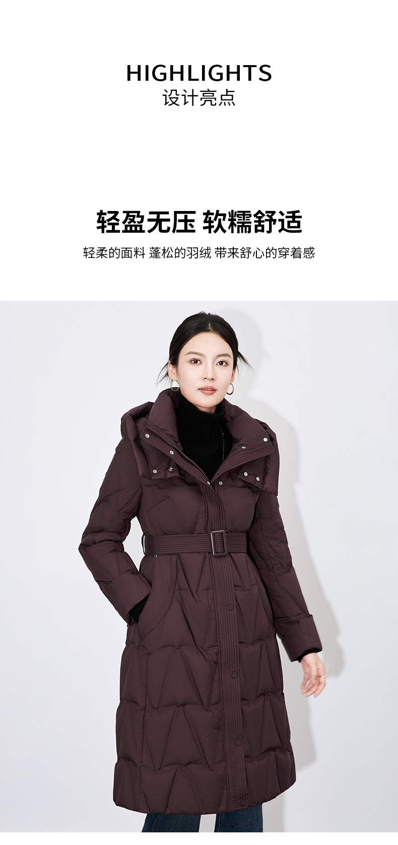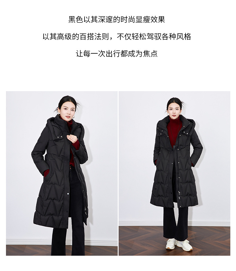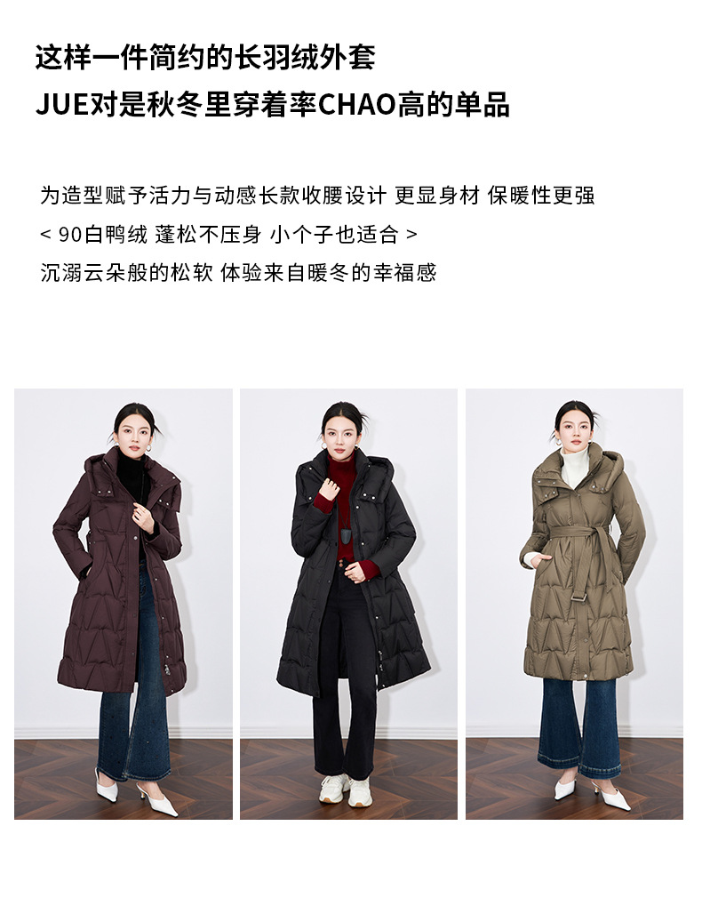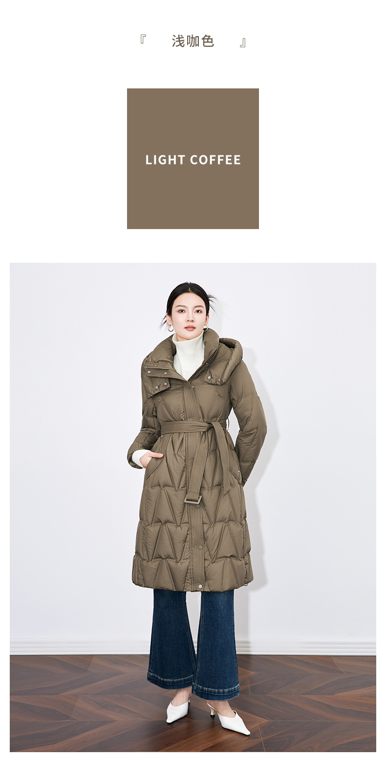 【高货wl】全新升级【铂金会员735/天猫989/差价254】(05931)洛诗琳秋冬简约连帽收腰系带御寒保暖长款90白鸭绒羽绒服