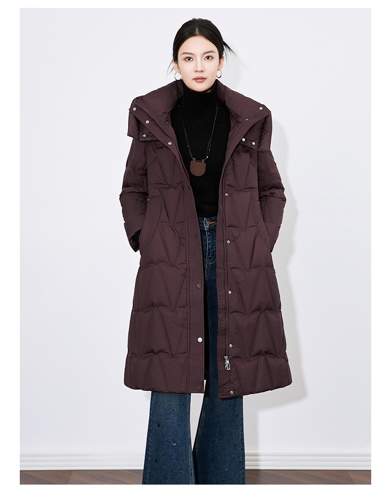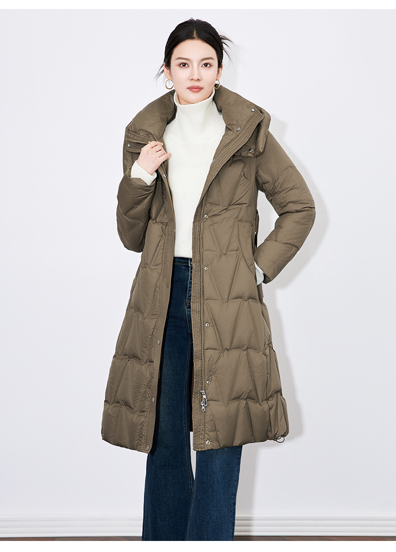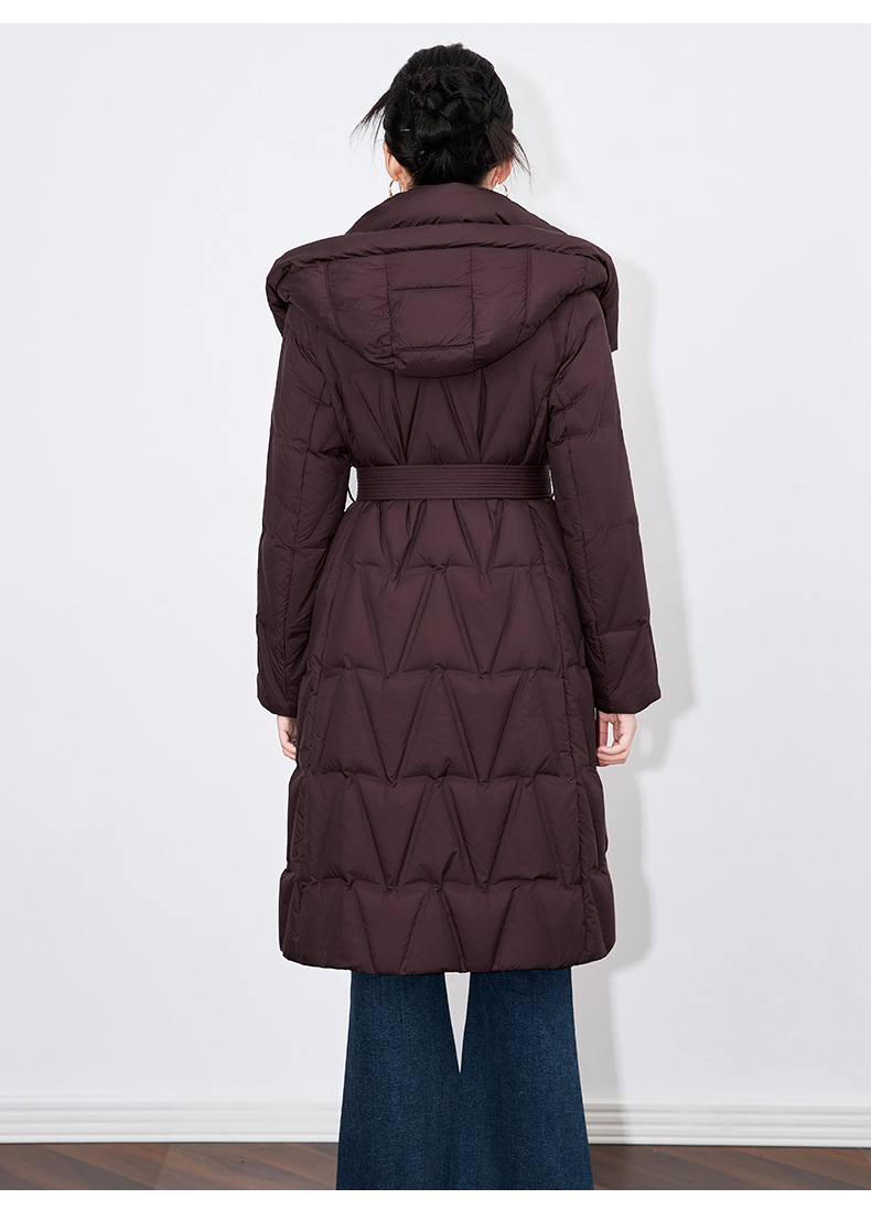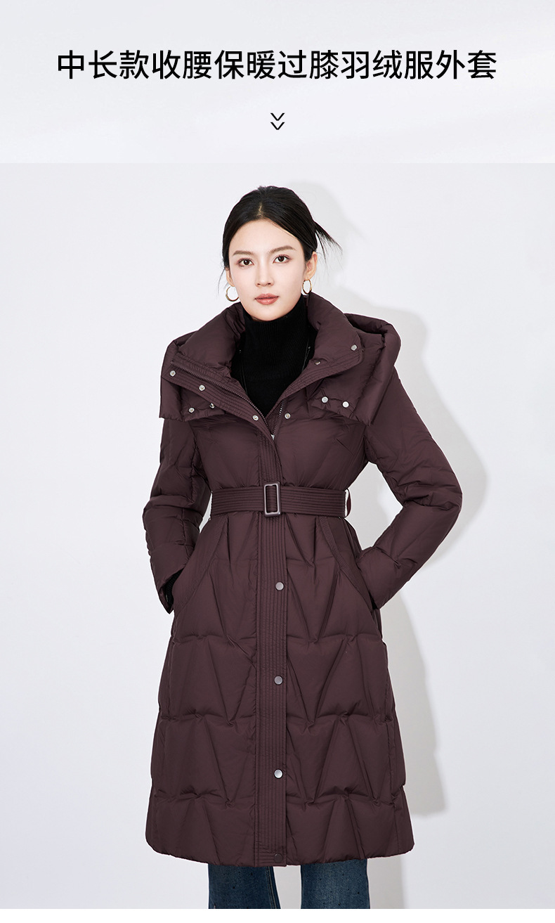 【高货wl】全新升级【铂金会员735/天猫989/差价254】(05931)洛诗琳秋冬简约连帽收腰系带御寒保暖长款90白鸭绒羽绒服