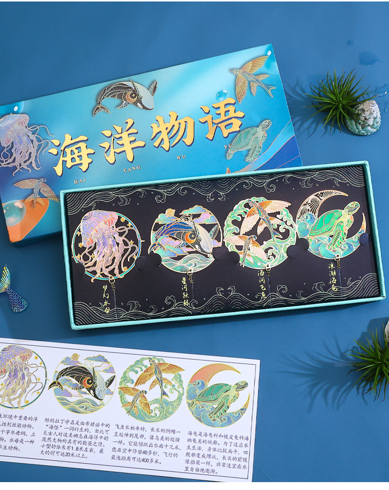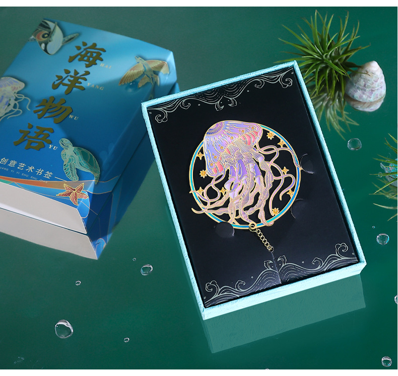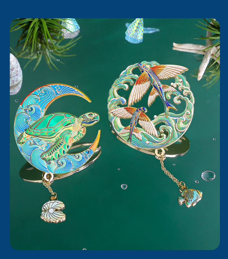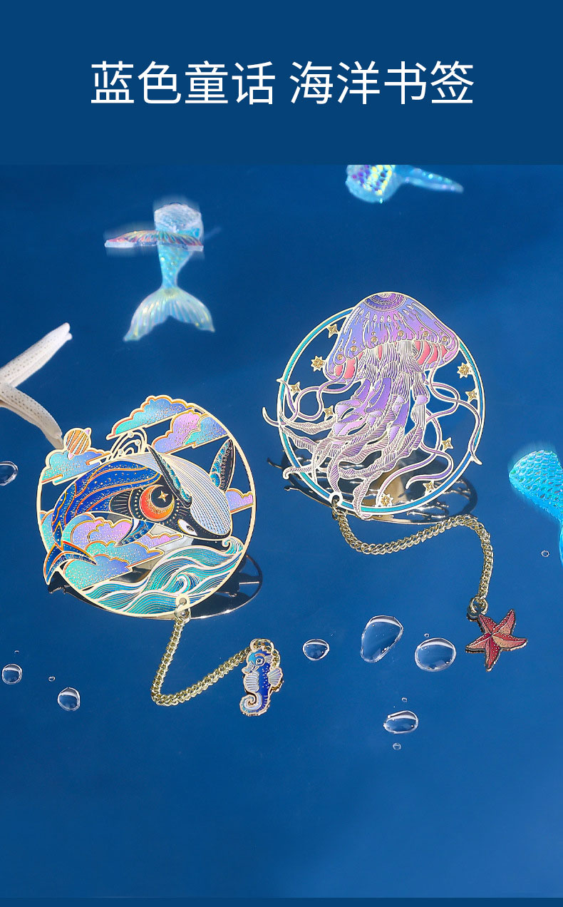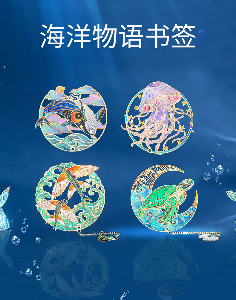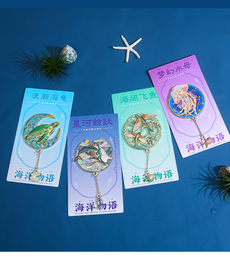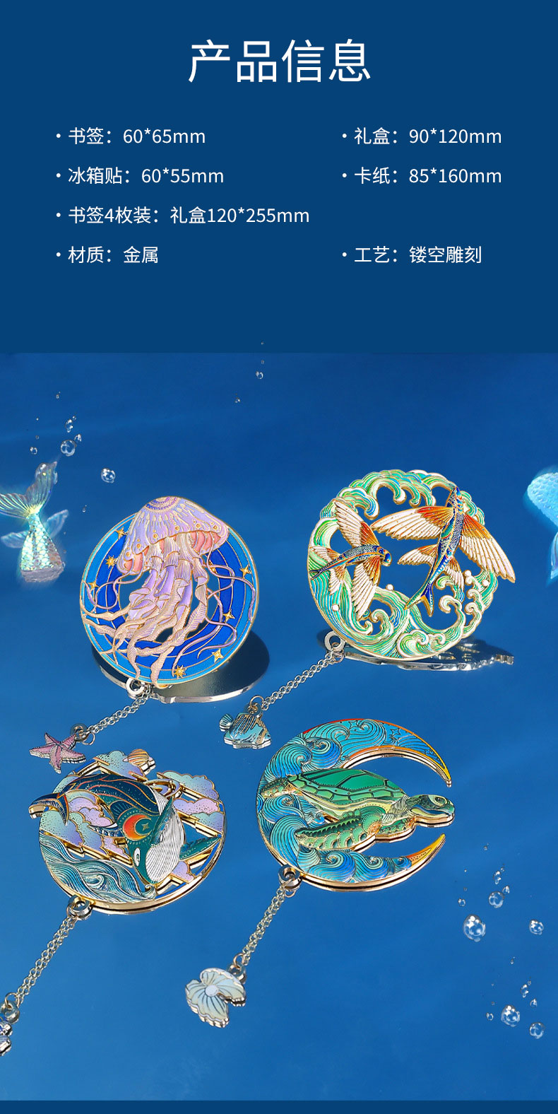 【海洋物语金属冰箱贴&书签】中国风自然博物馆海龟水母磁吸文创纪念品学生礼物