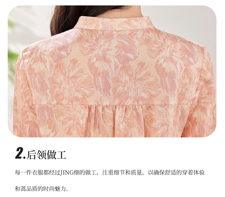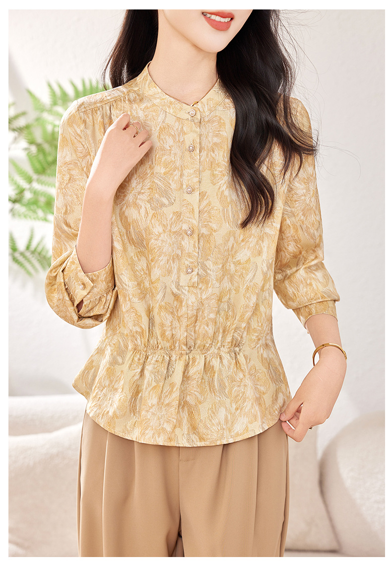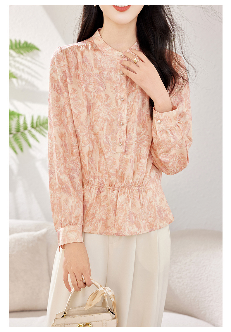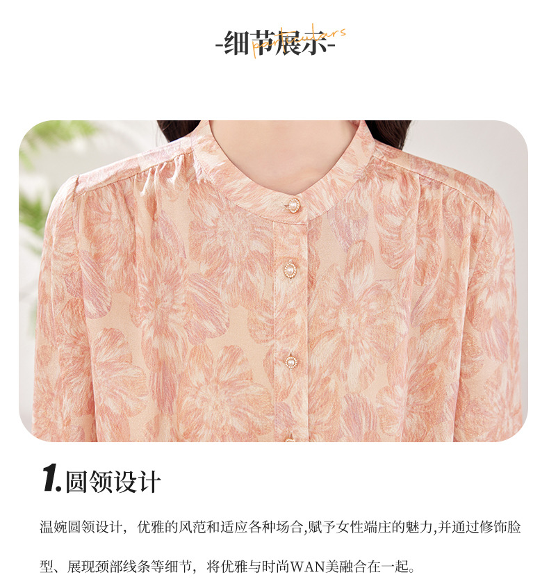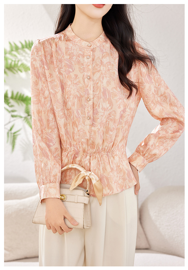 KQ-2026春季新款桑蚕丝长袖衬衫套头印花大码真丝气质休闲上衣
