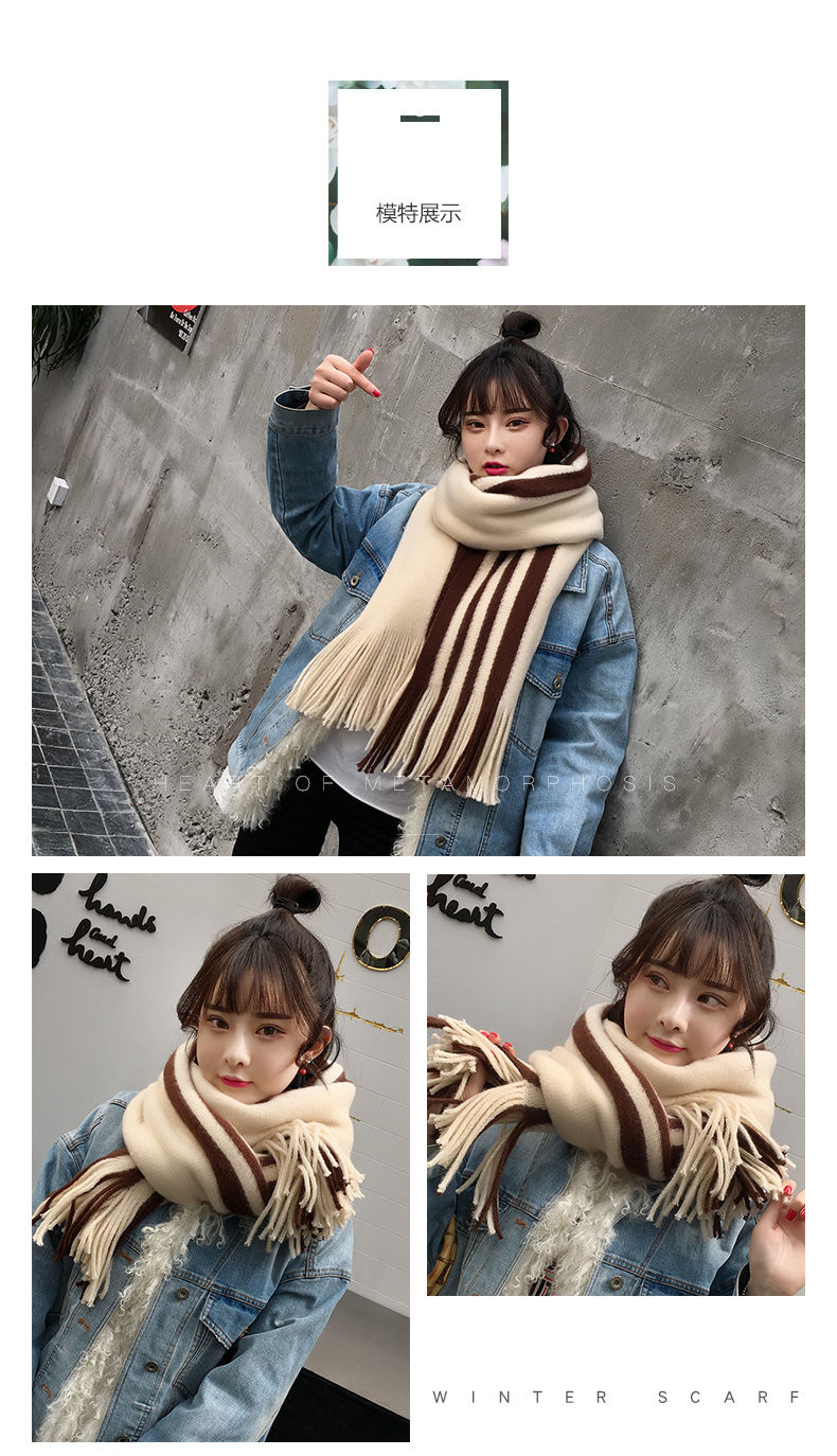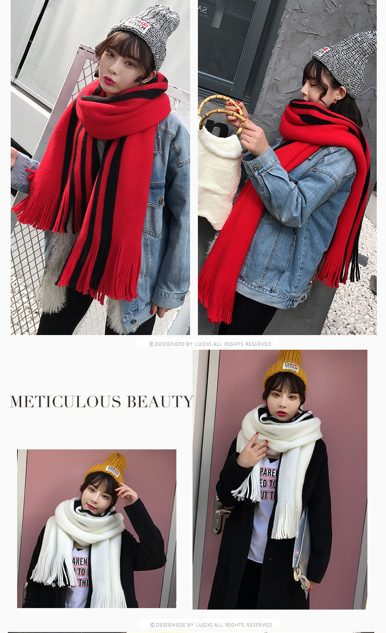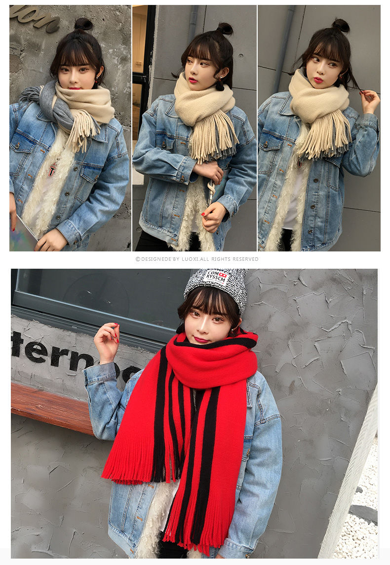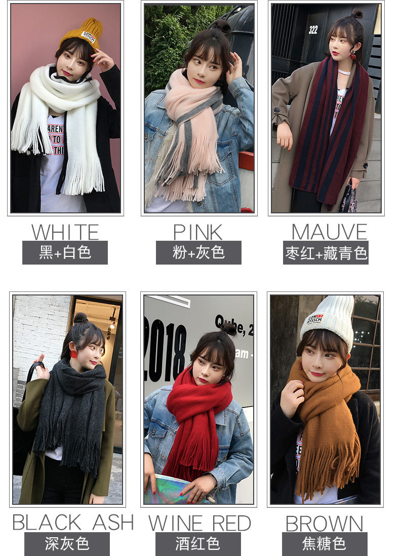 围巾女韩版百搭长款加厚网红保暖女士可爱毛线学生围脖冬款
