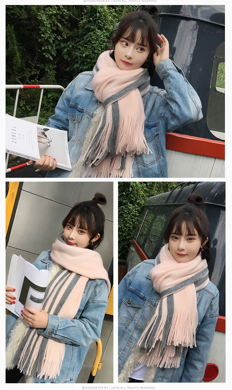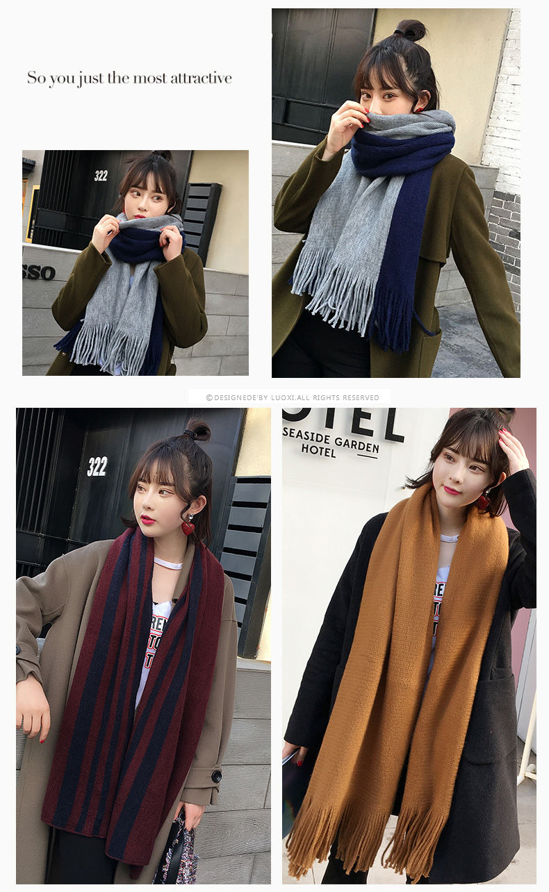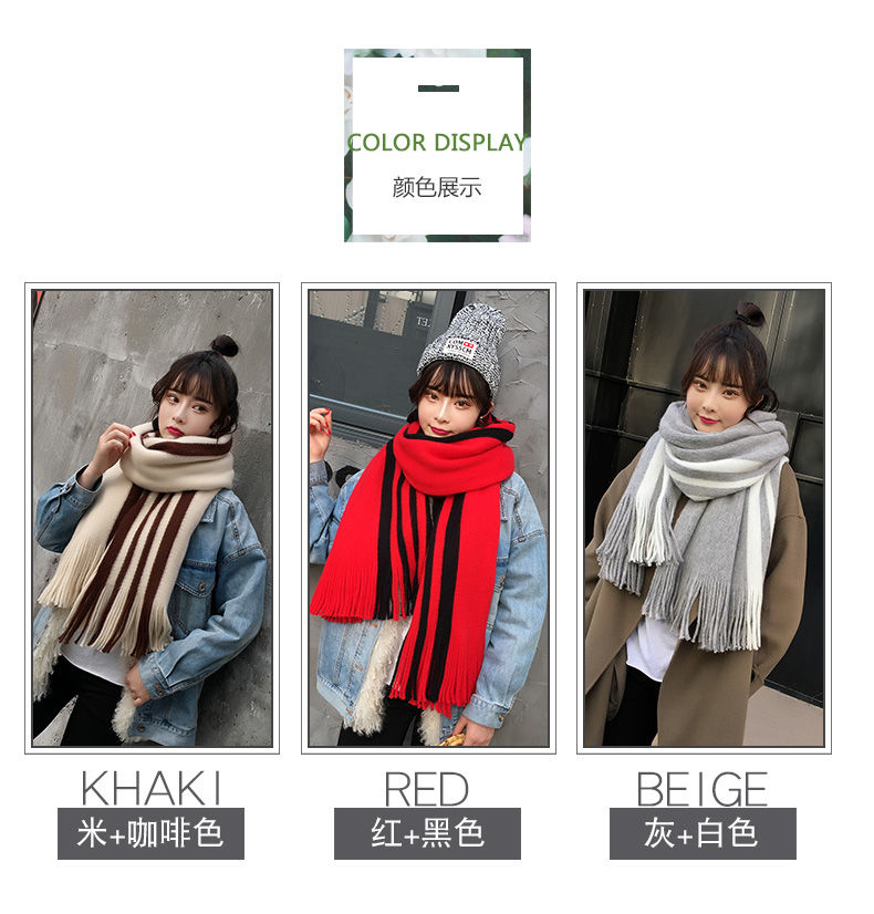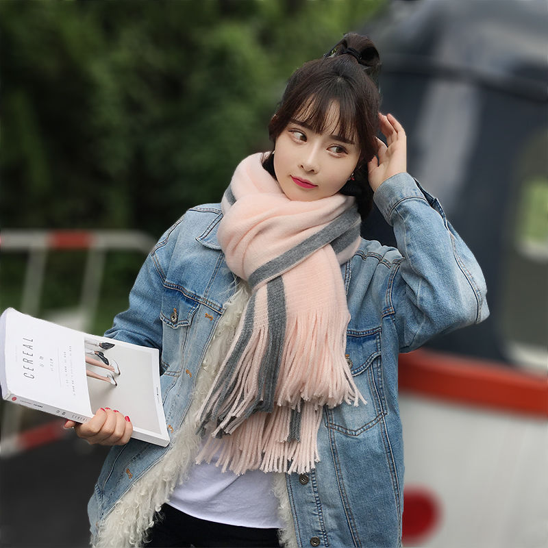 围巾女韩版百搭长款加厚网红保暖女士可爱毛线学生围脖冬款