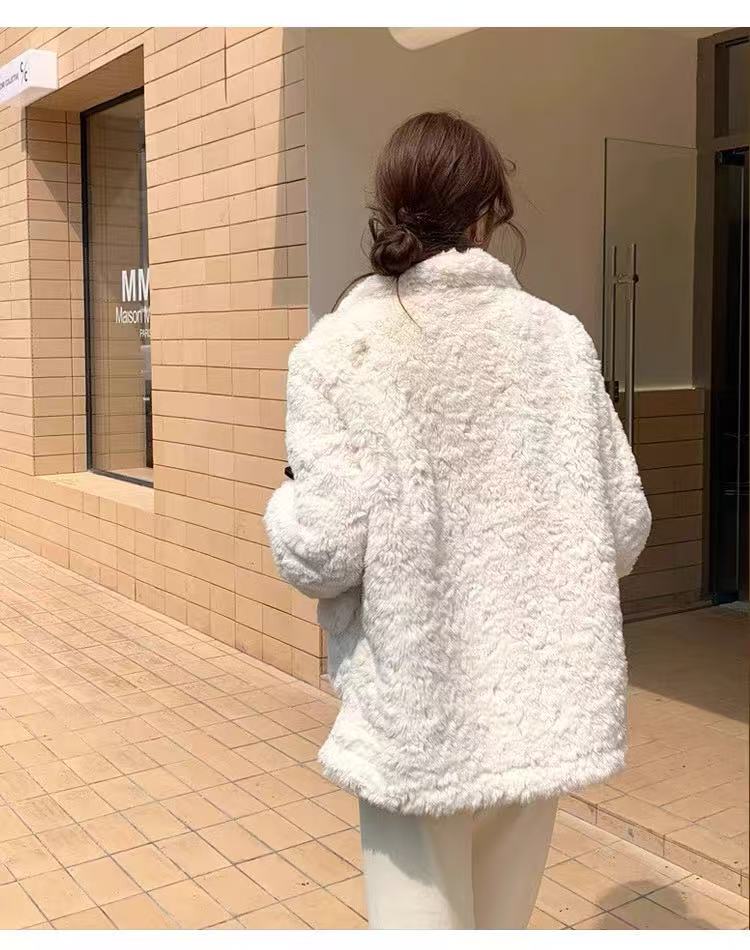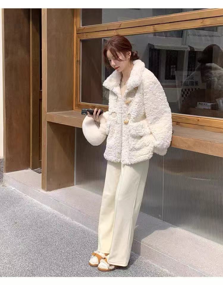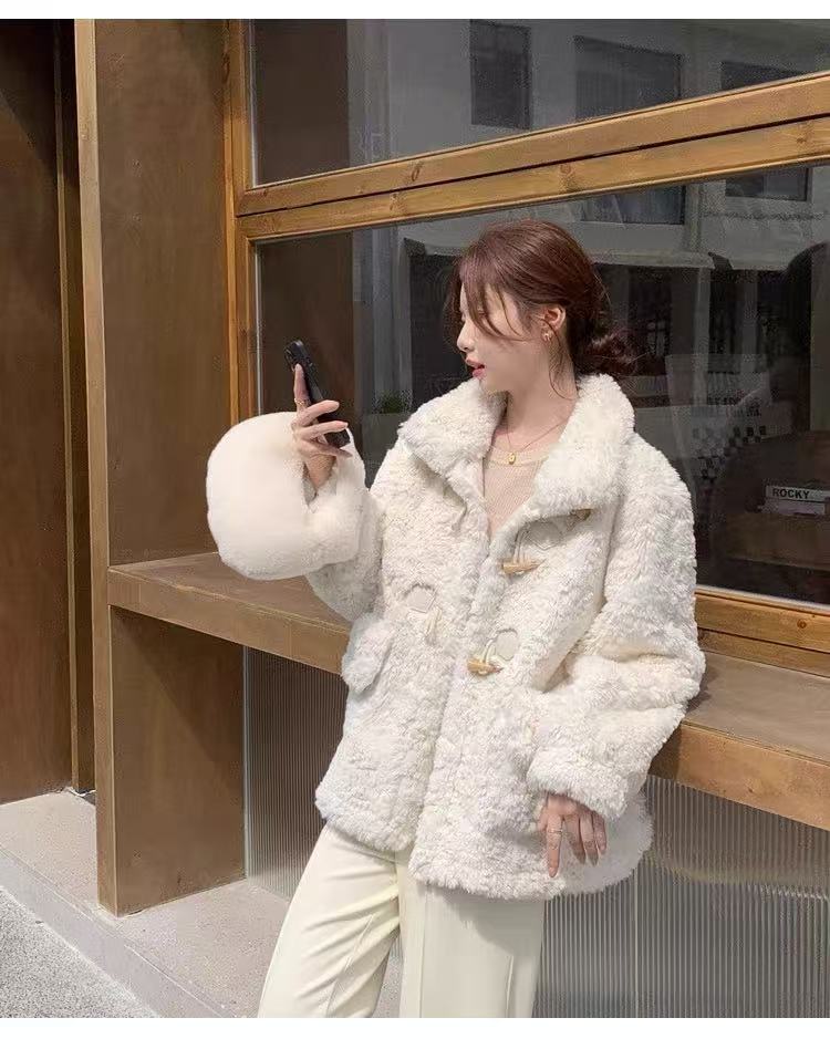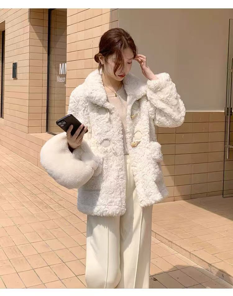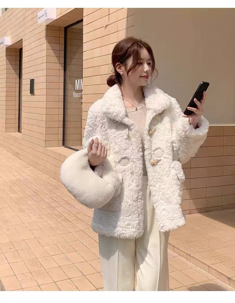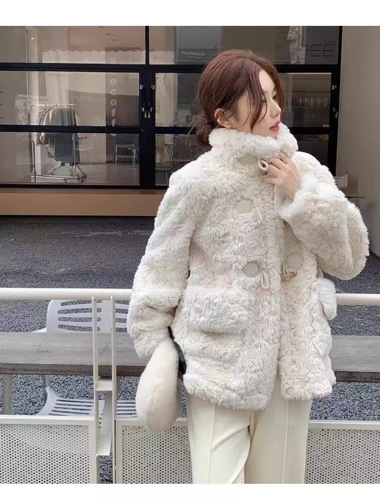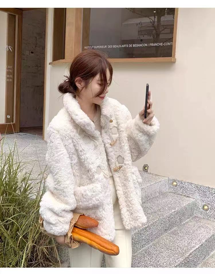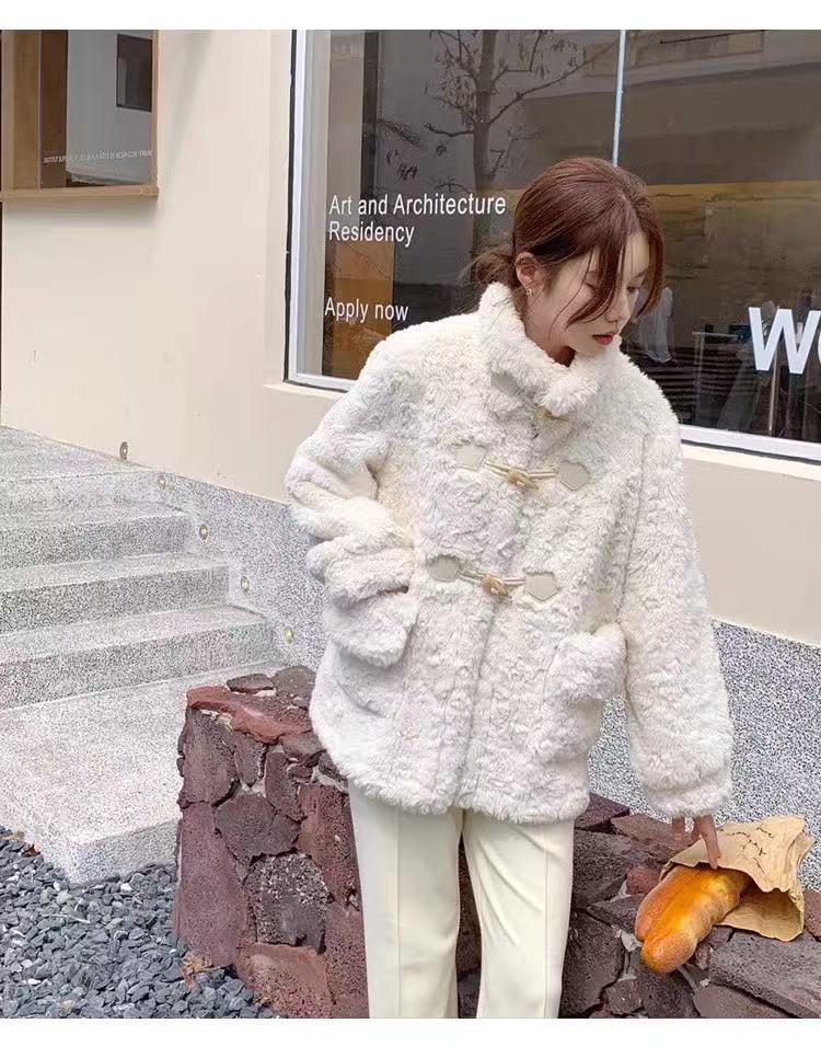【环保皮草】P05牛角扣皮毛一体秋冬大衣外套-喜出