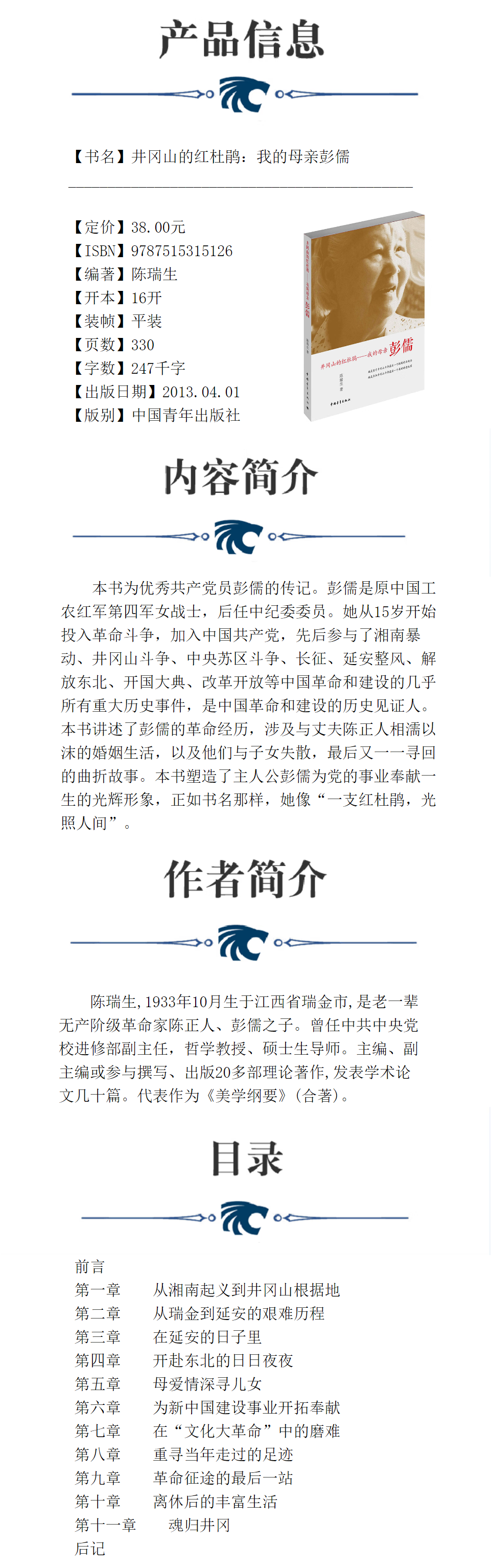 井冈山的红杜鹃:我的母亲彭儒 陈瑞生著 中国青年出版社