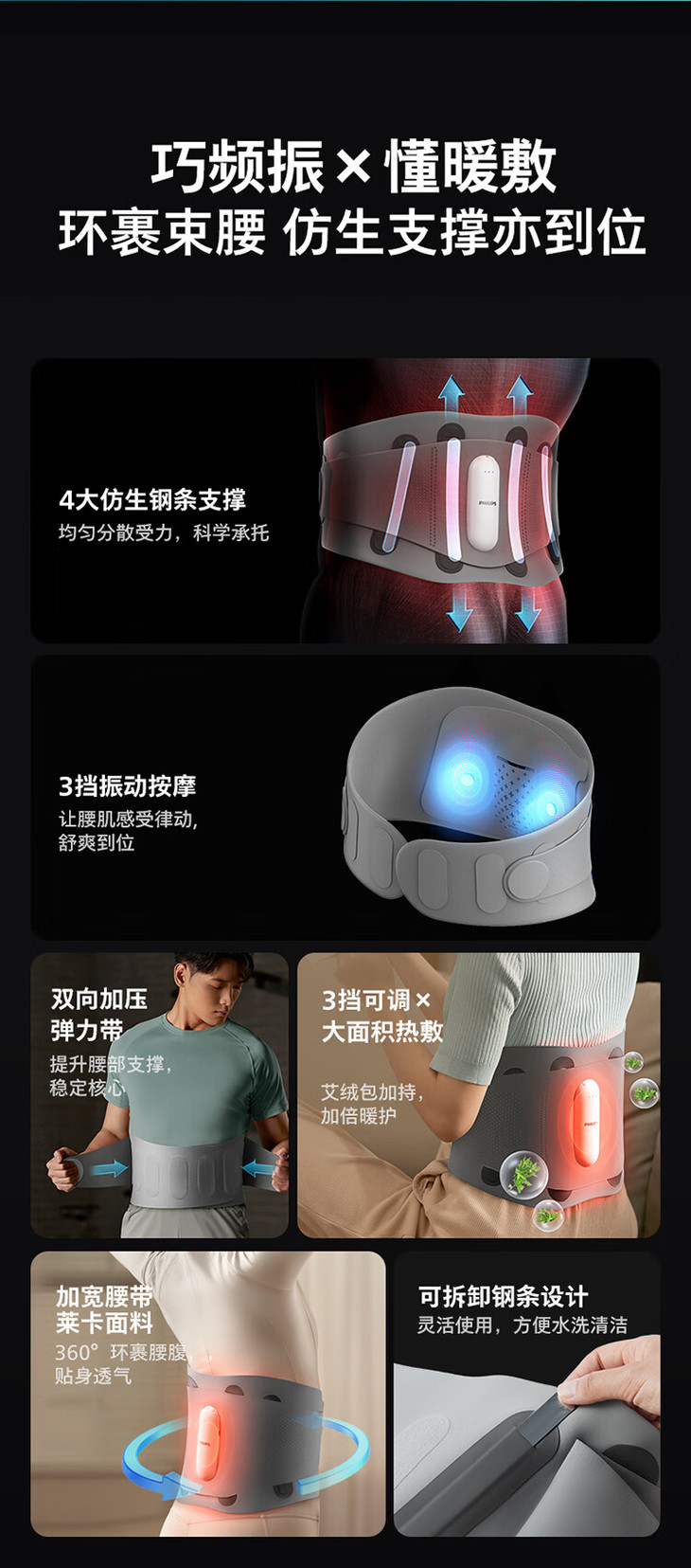 PHILIPS飞利浦热敷护腰运动腰带(PPM3210B)