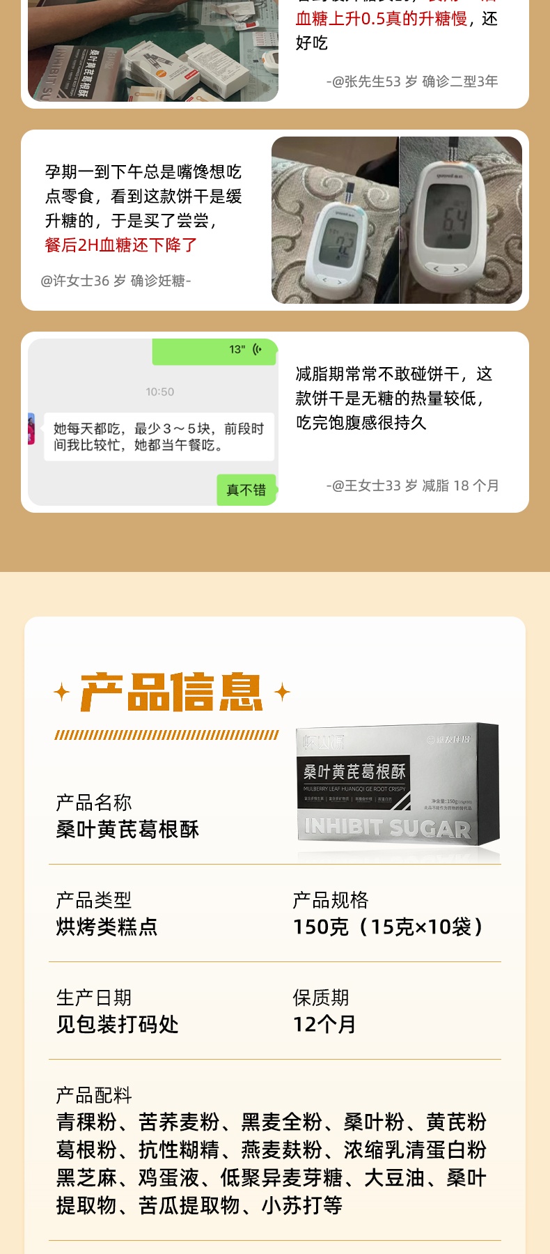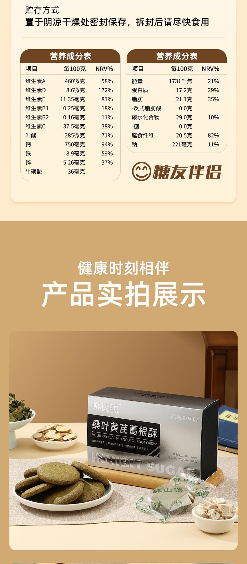 怀山源桑叶黄芪葛根酥控糖饼干糖友伴侣零食富含维生素矿物质蛋白150g/盒