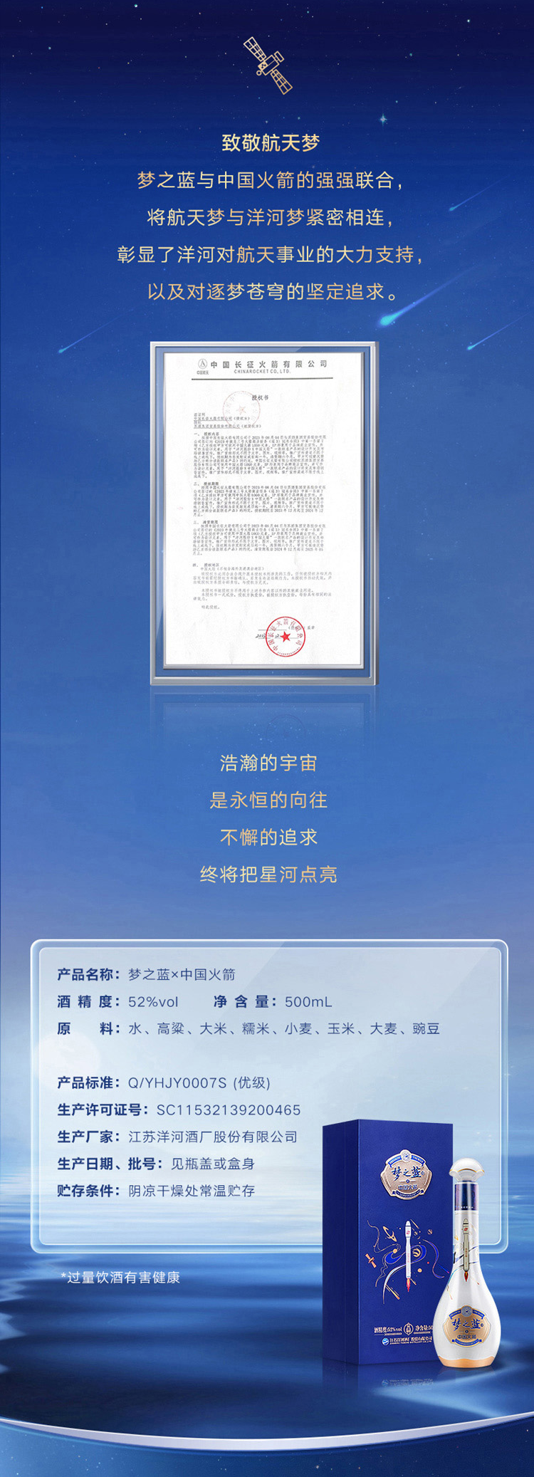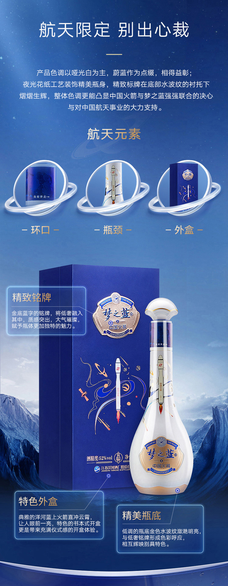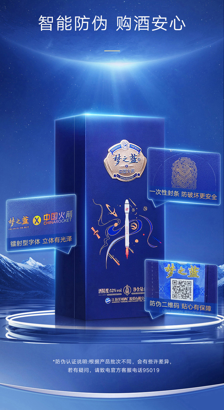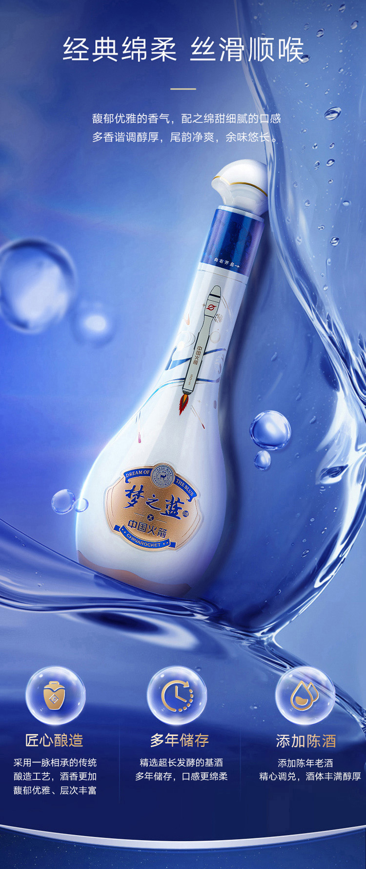 洋河梦之蓝中国火箭联名 绵柔白酒52度500mL
