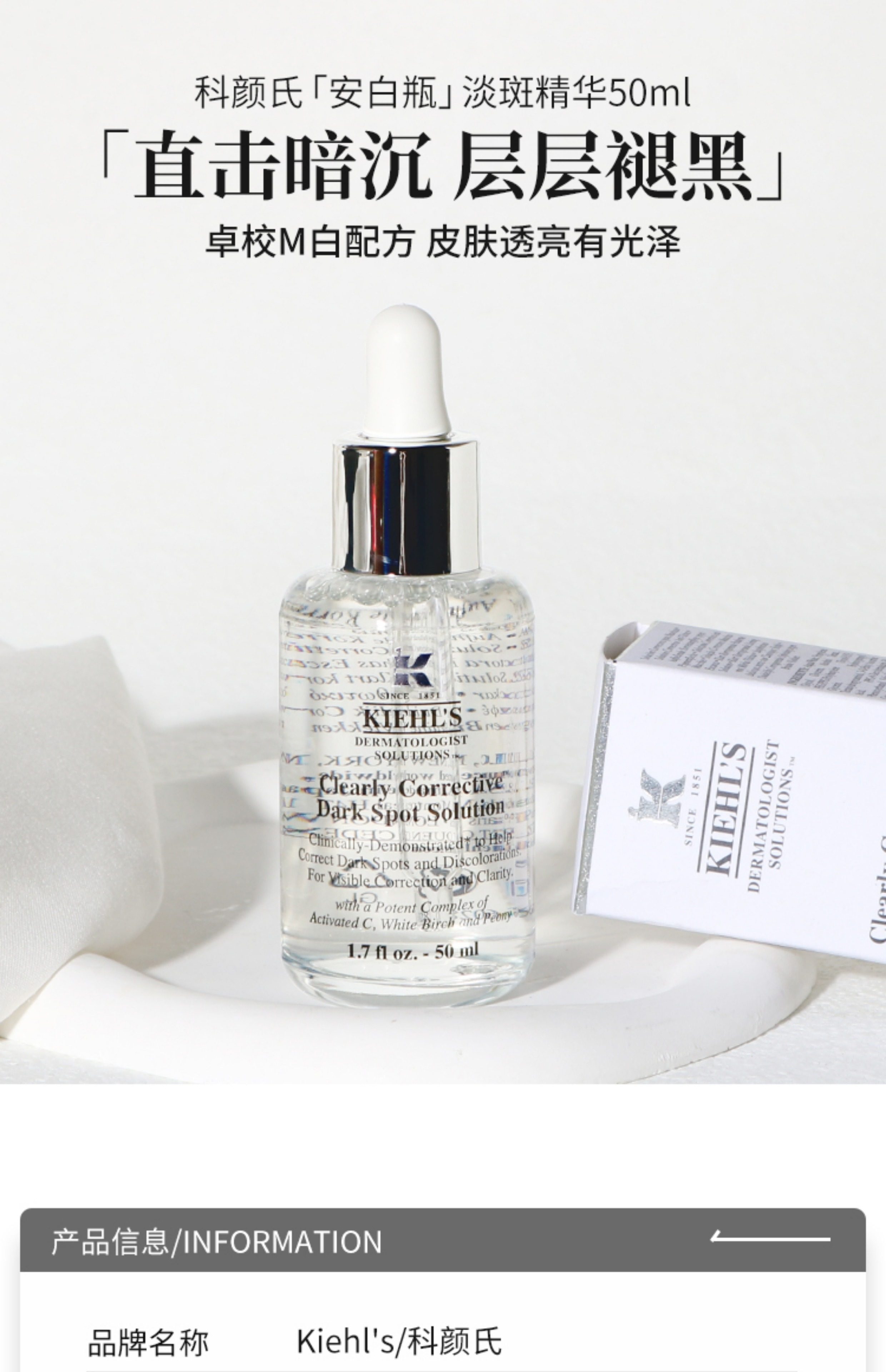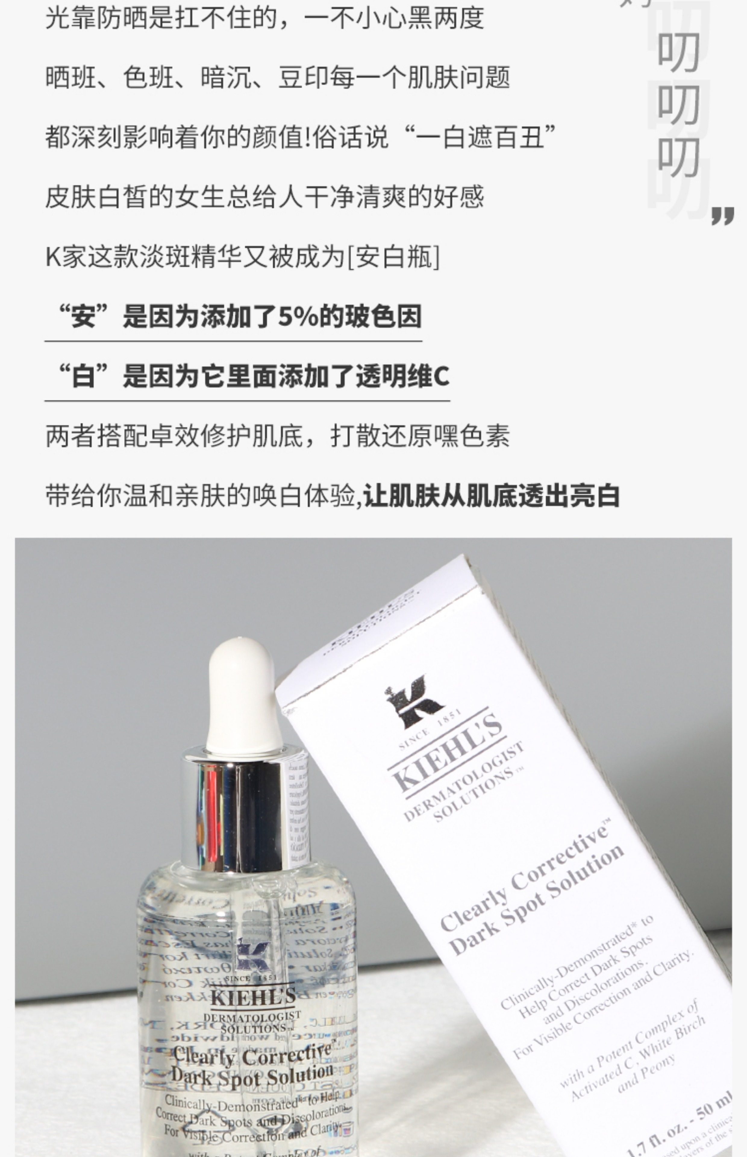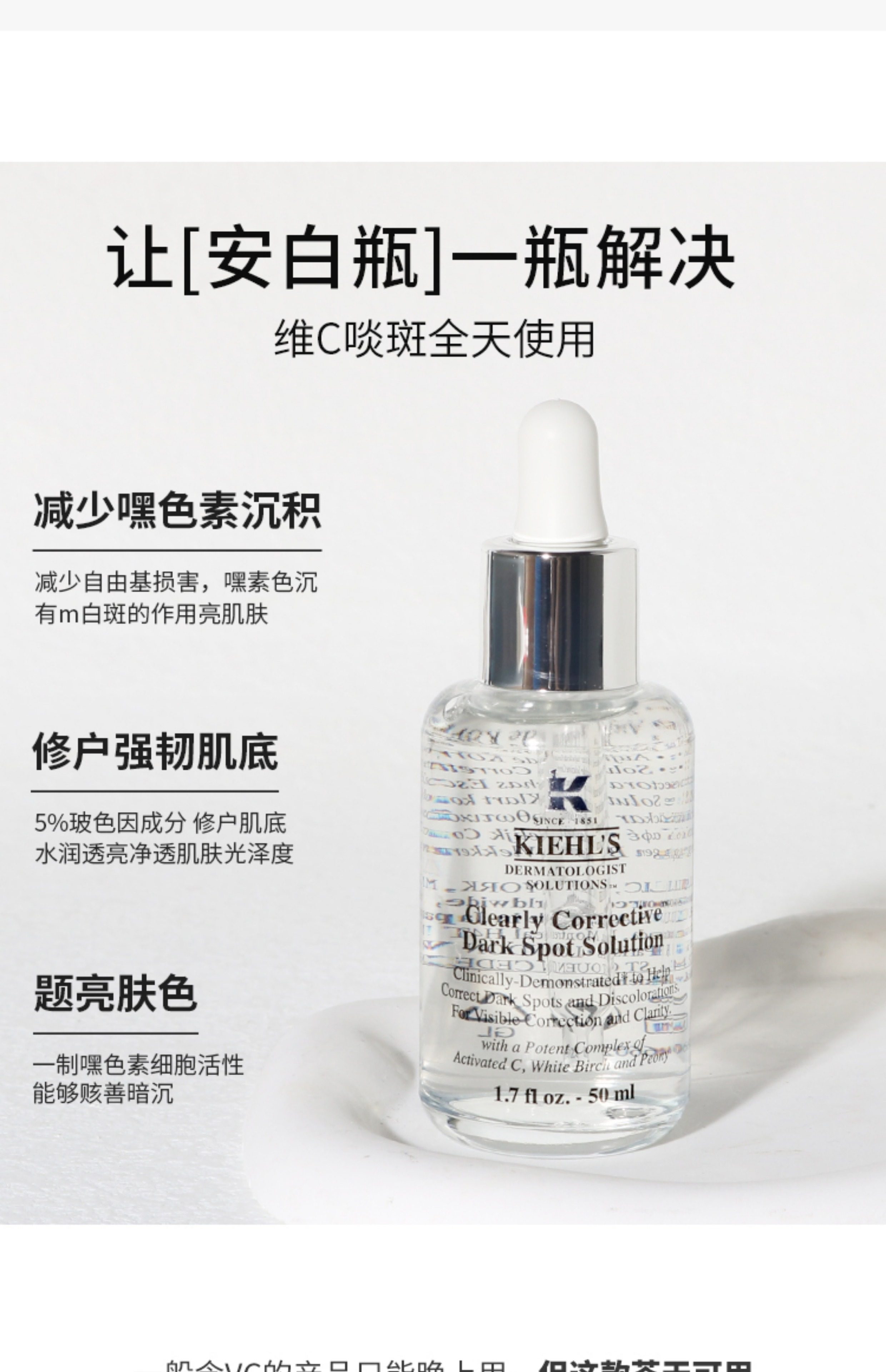 【双节大促价】大牌正品Kiehl's/科颜氏 集焕白均衡亮肤淡斑精华液50ml 安瓶美白淡化痘印提亮肤色-喜出