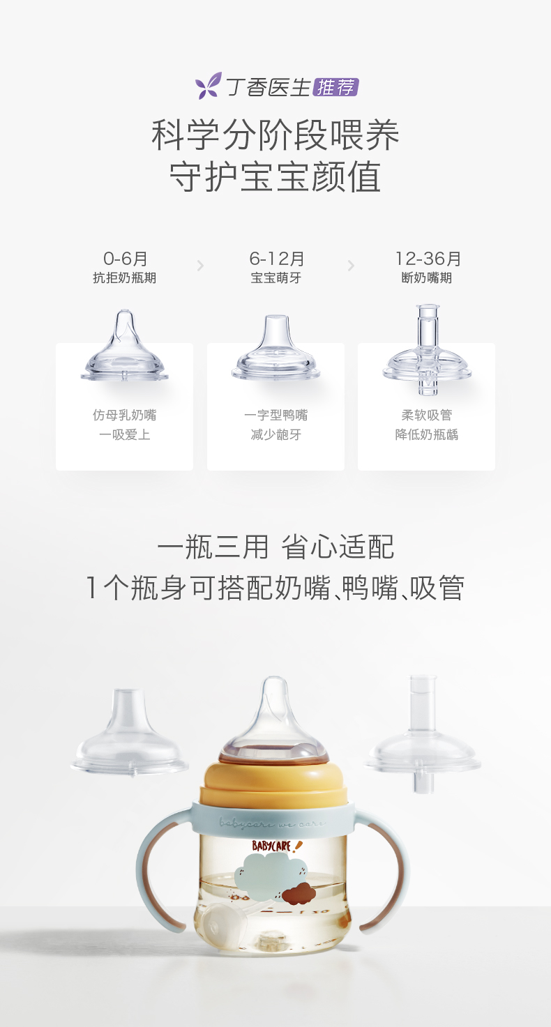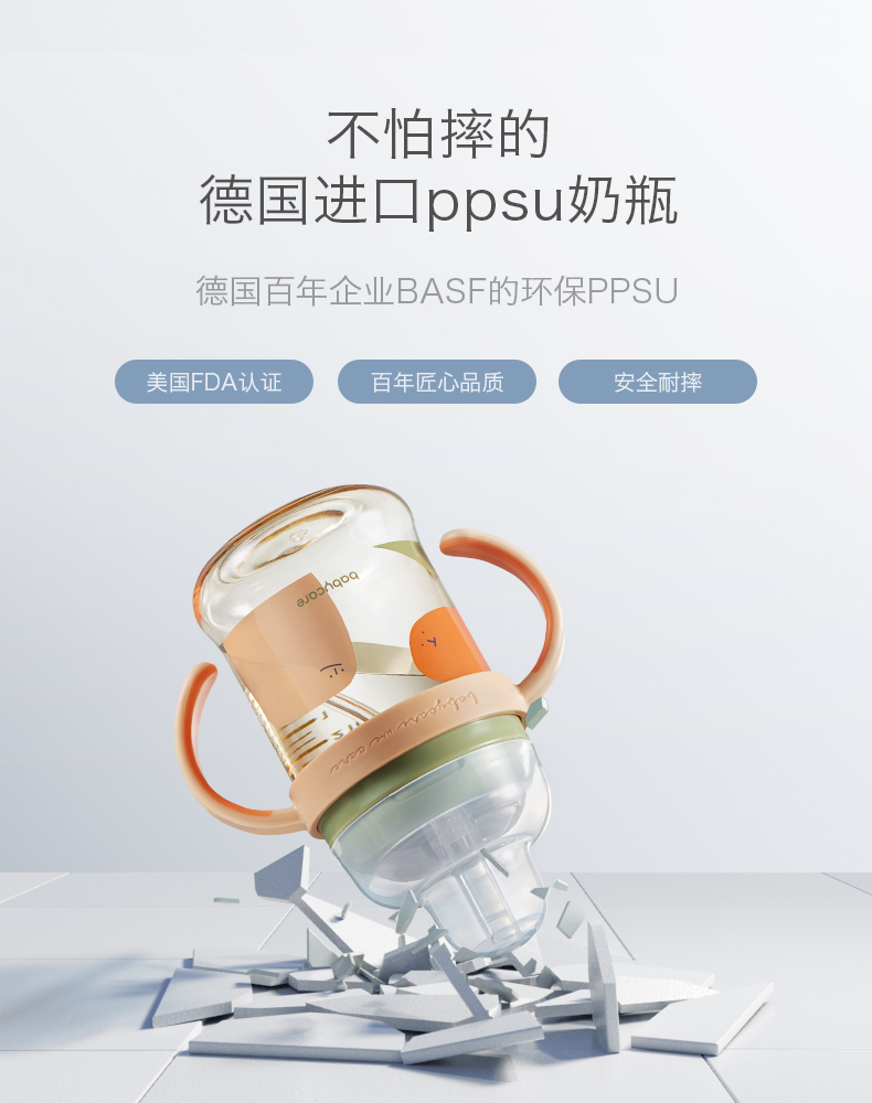 babycare新生婴儿奶瓶硅胶仿母乳柔软 6个月宝宝断奶神器ppsu耐摔