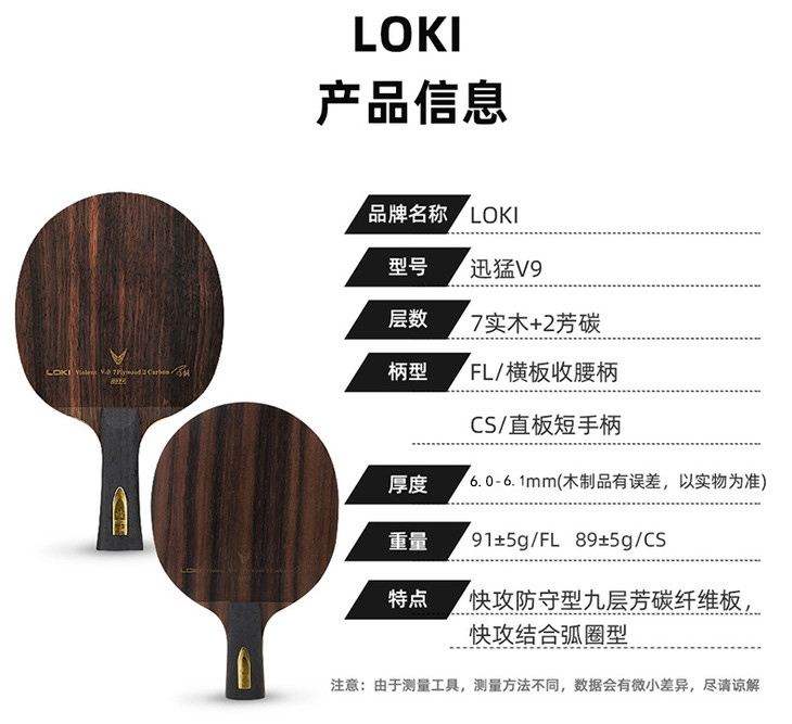 • 商品名称:LOKI雷神 王皓亲情代言 2016新款专业底板 迅猛V9 快攻防守型