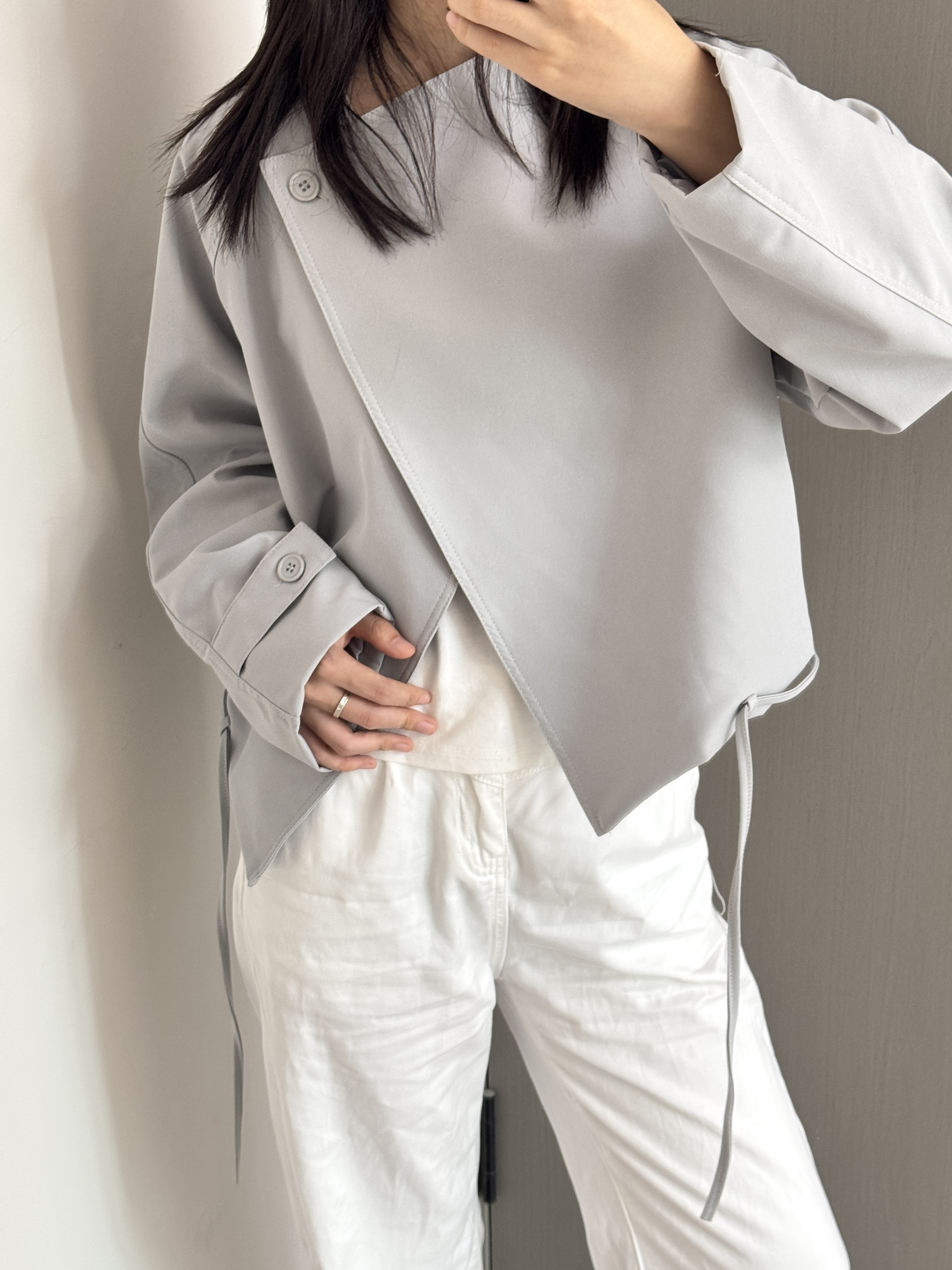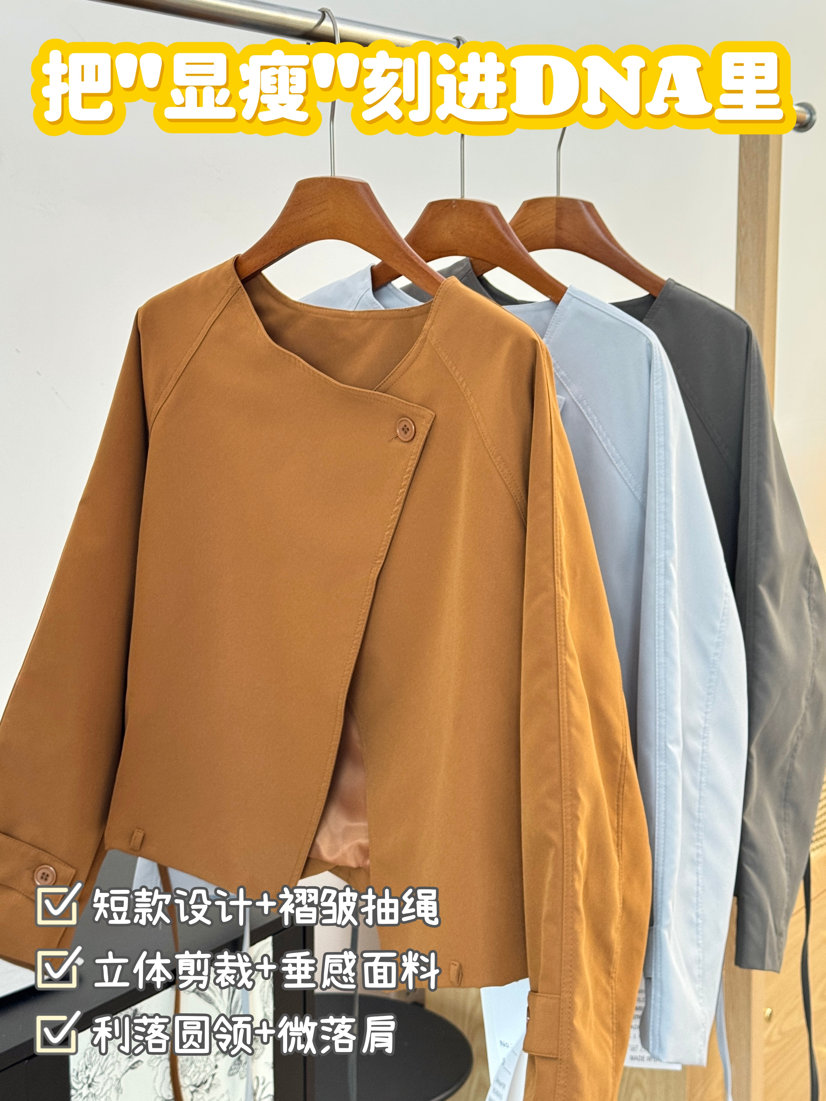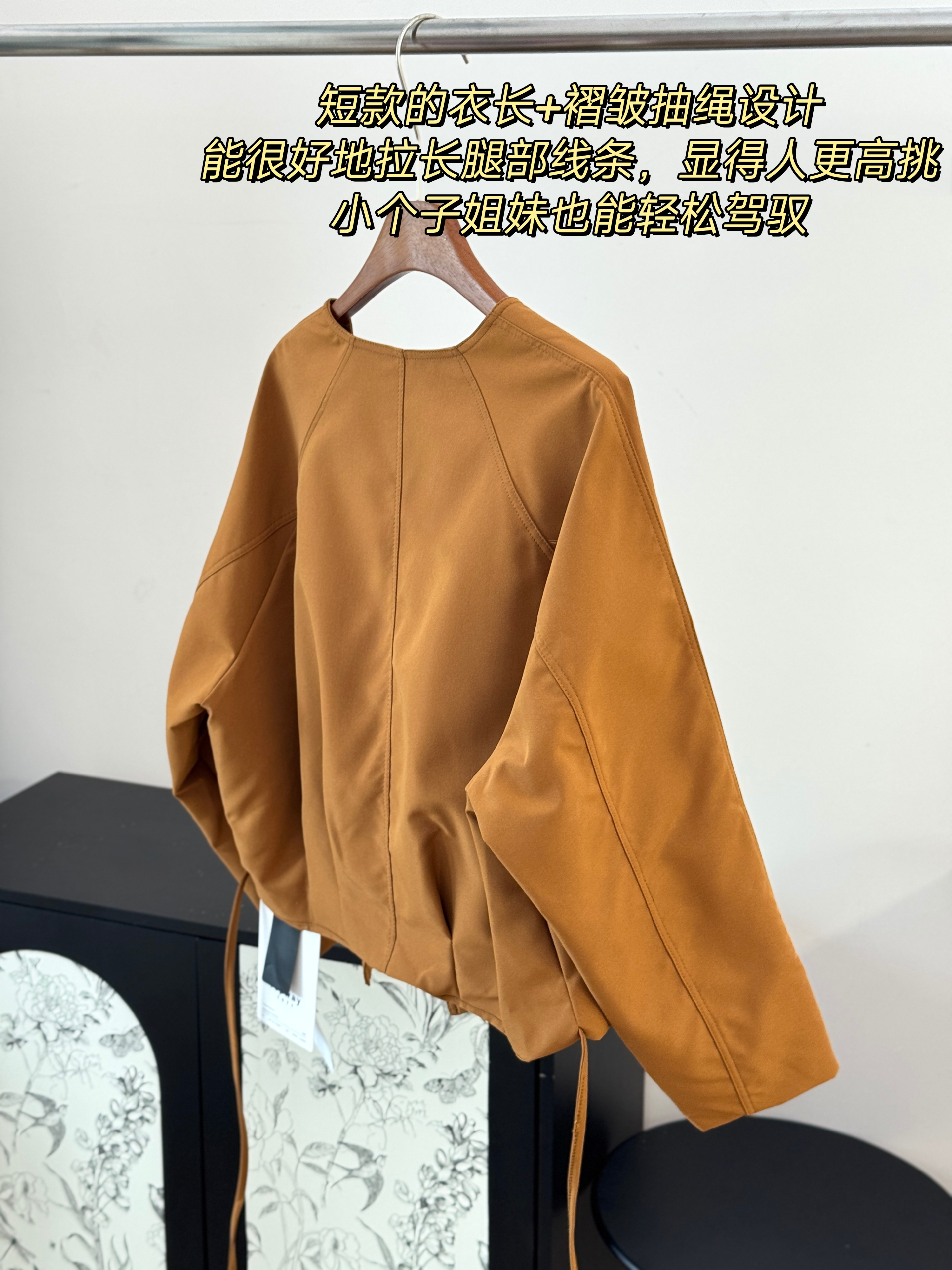 【圆领抽绳短款外套】显高显瘦还百搭 微宽松版型+斜扣设计 圆领+抽绳设计