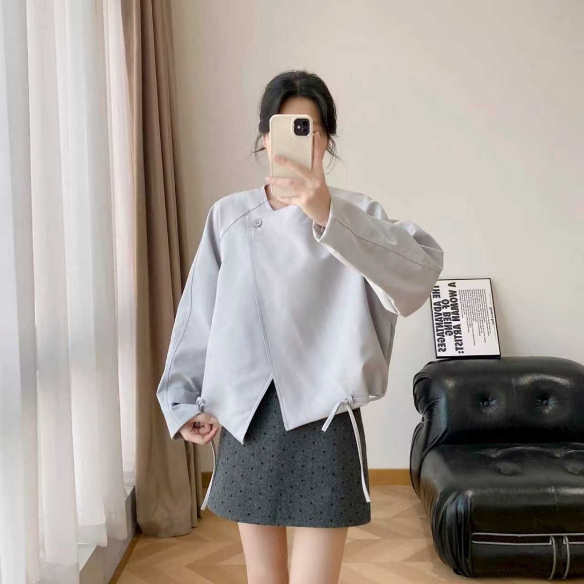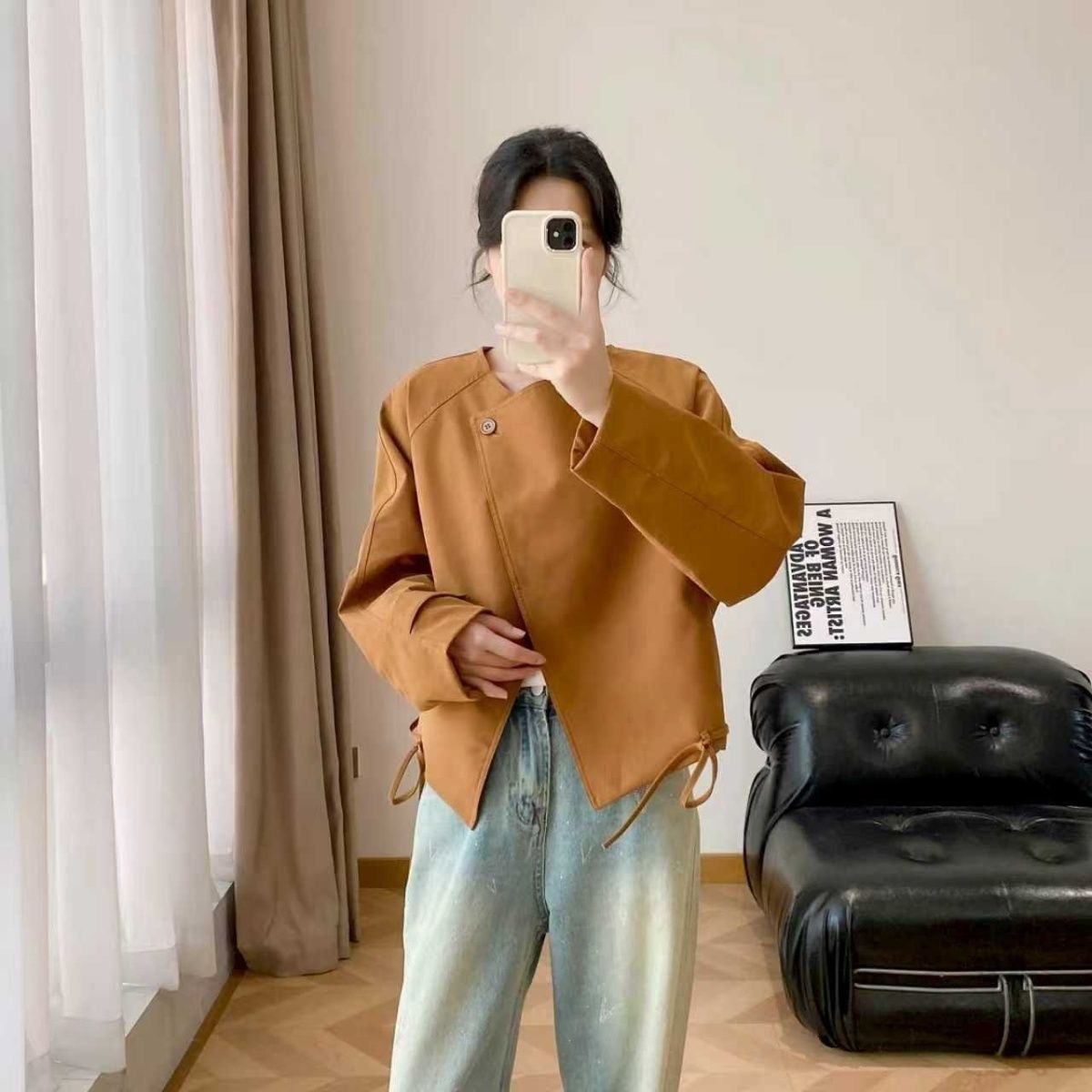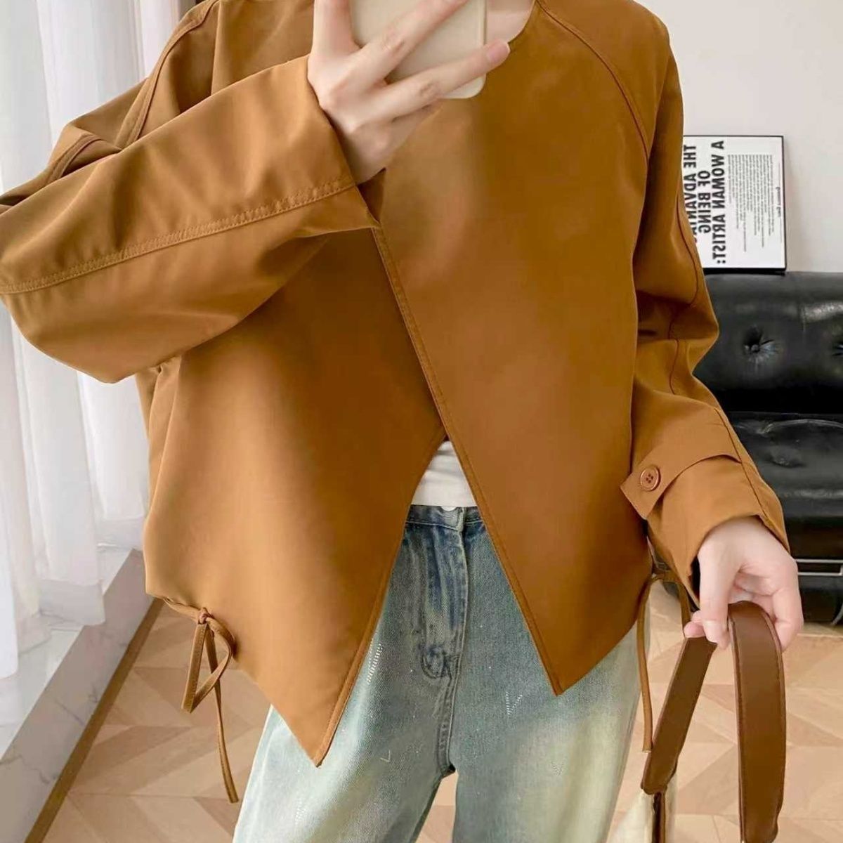 【圆领抽绳短款外套】显高显瘦还百搭 微宽松版型+斜扣设计 圆领+抽绳设计