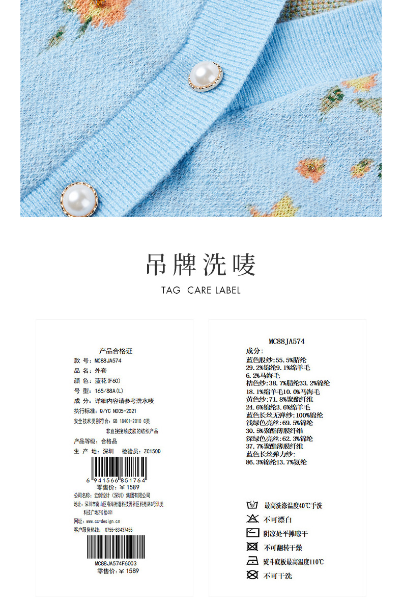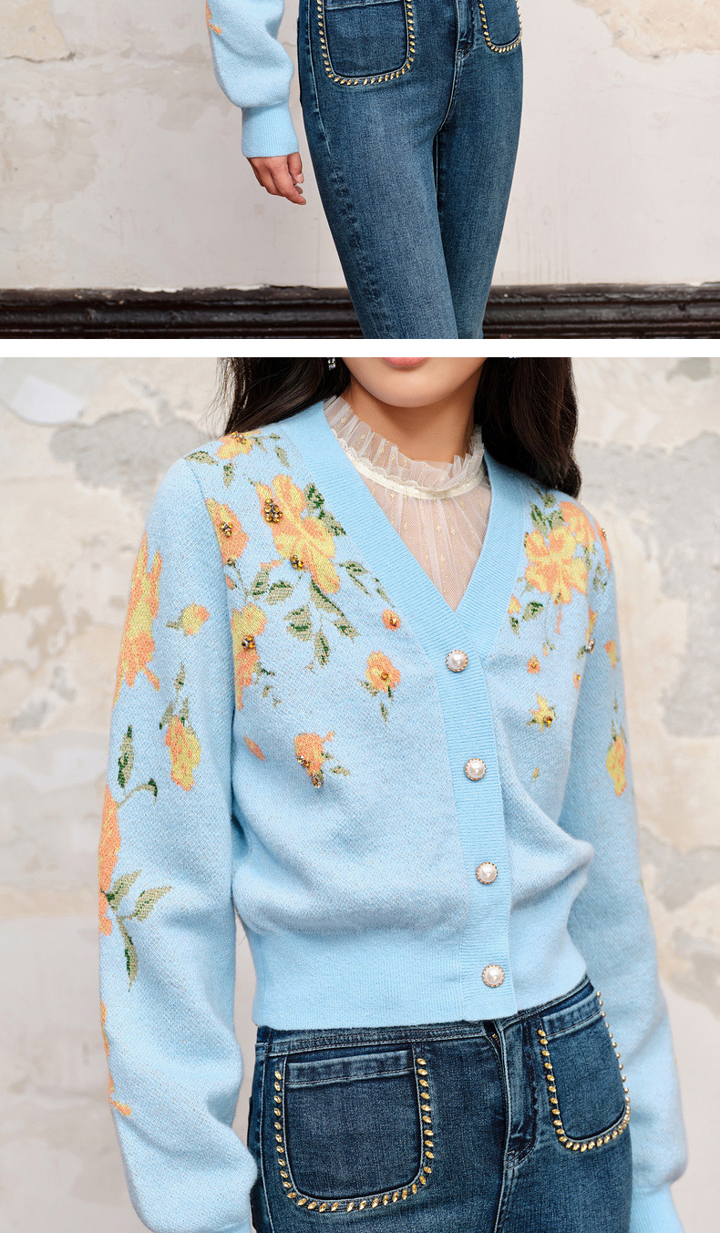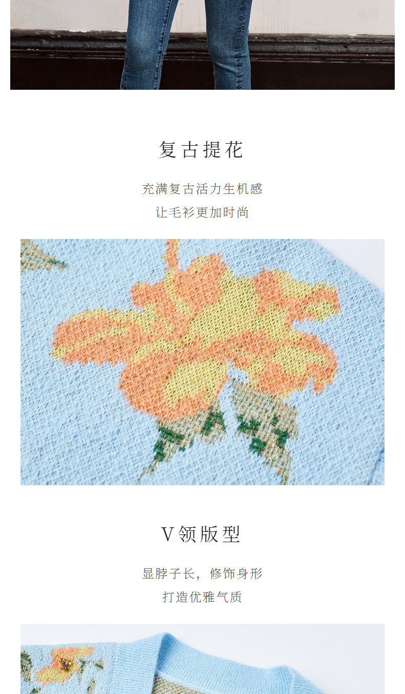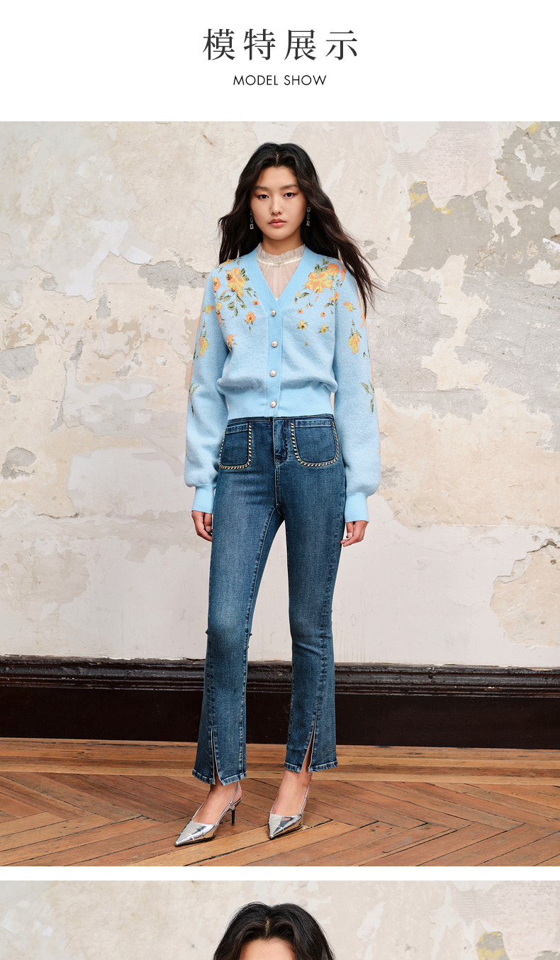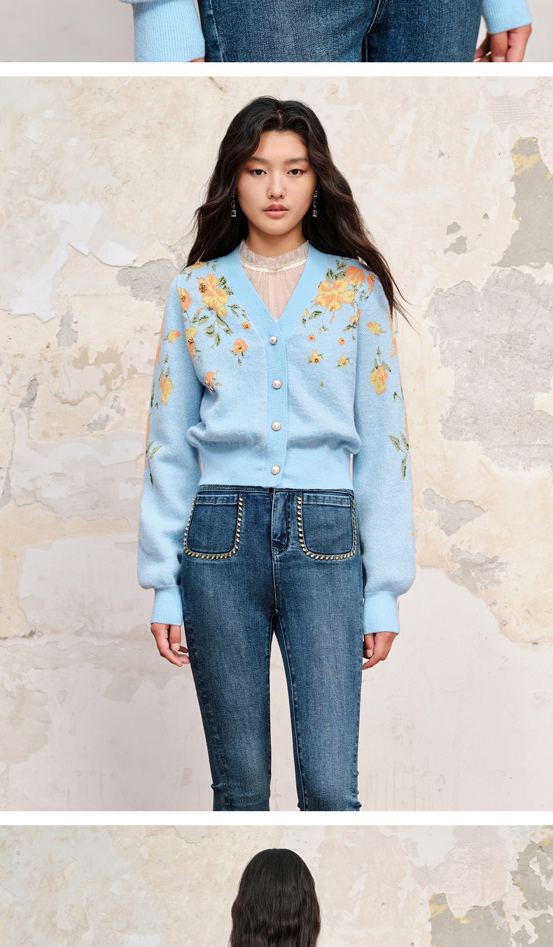 【商场同款】MAXRIENY复古提花v领针织毛衫23秋冬马海毛套头毛衣(货号:MC88JA574)