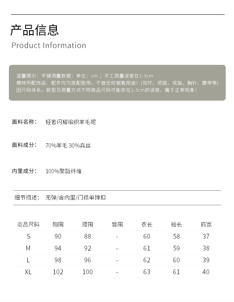 【高货wl】全新升级【铂金会员339/天猫459/差价120】(33739) 洛诗琳新款法式优雅气质轻奢*编织羊毛呢小香风短外套