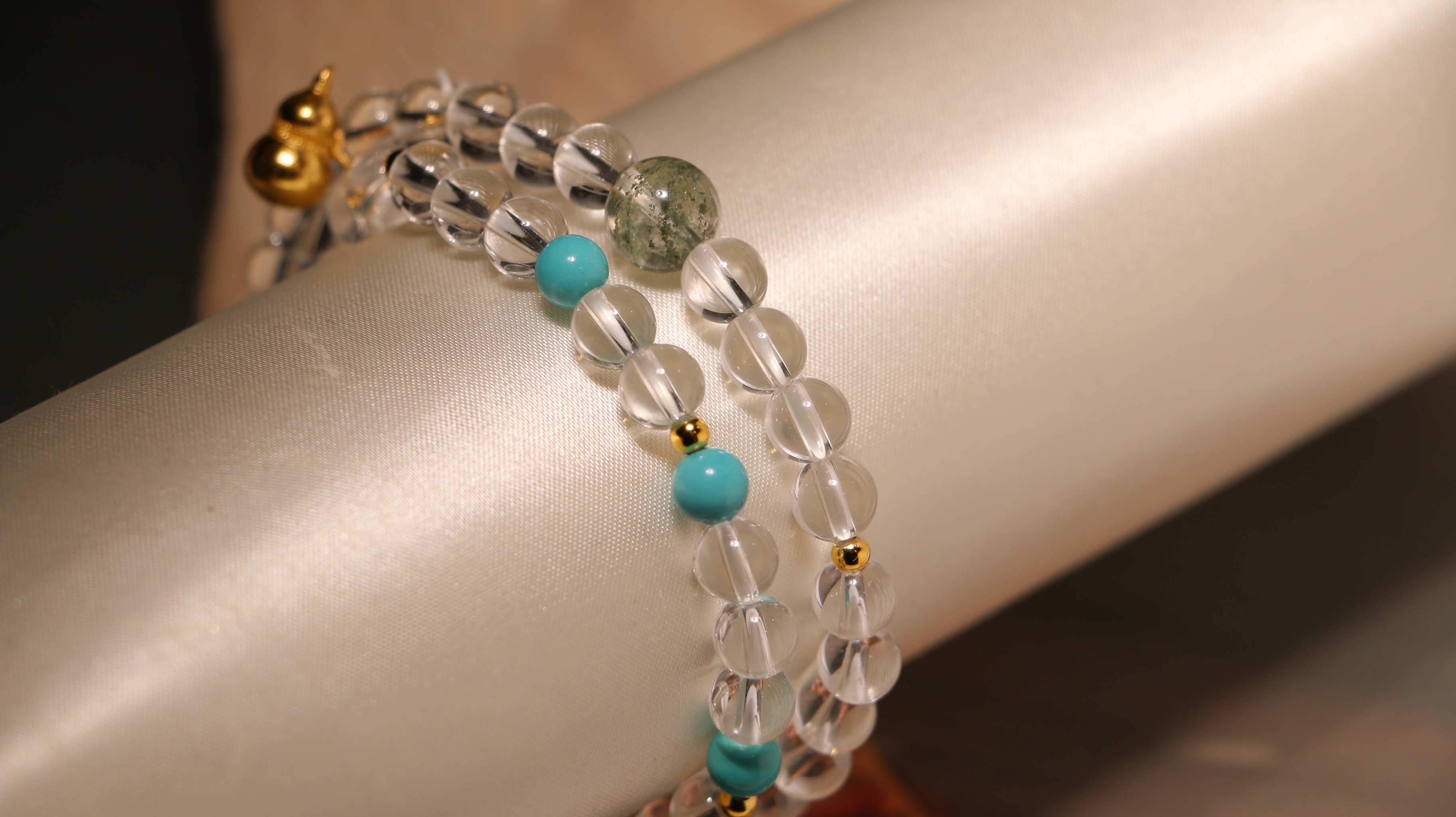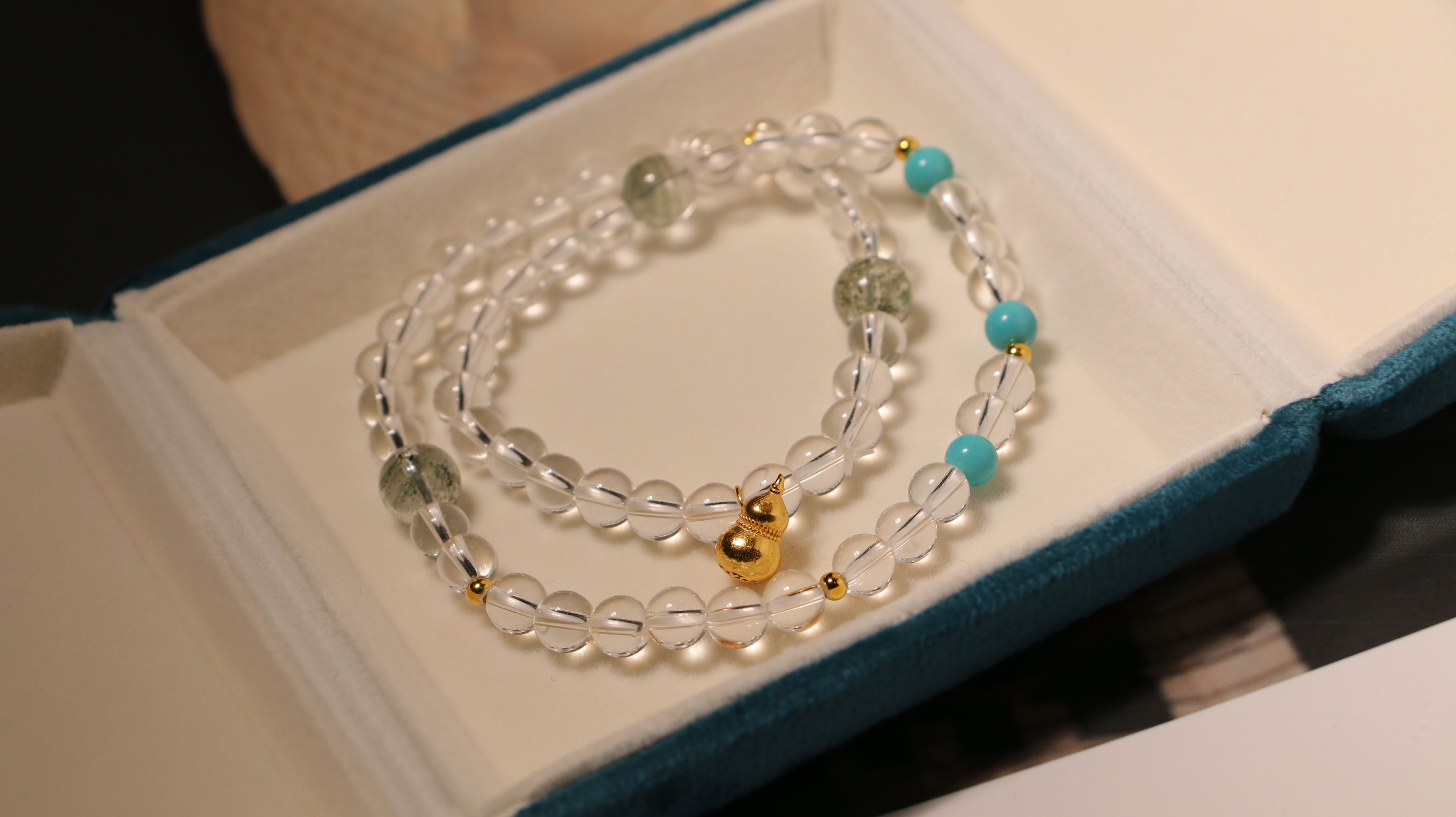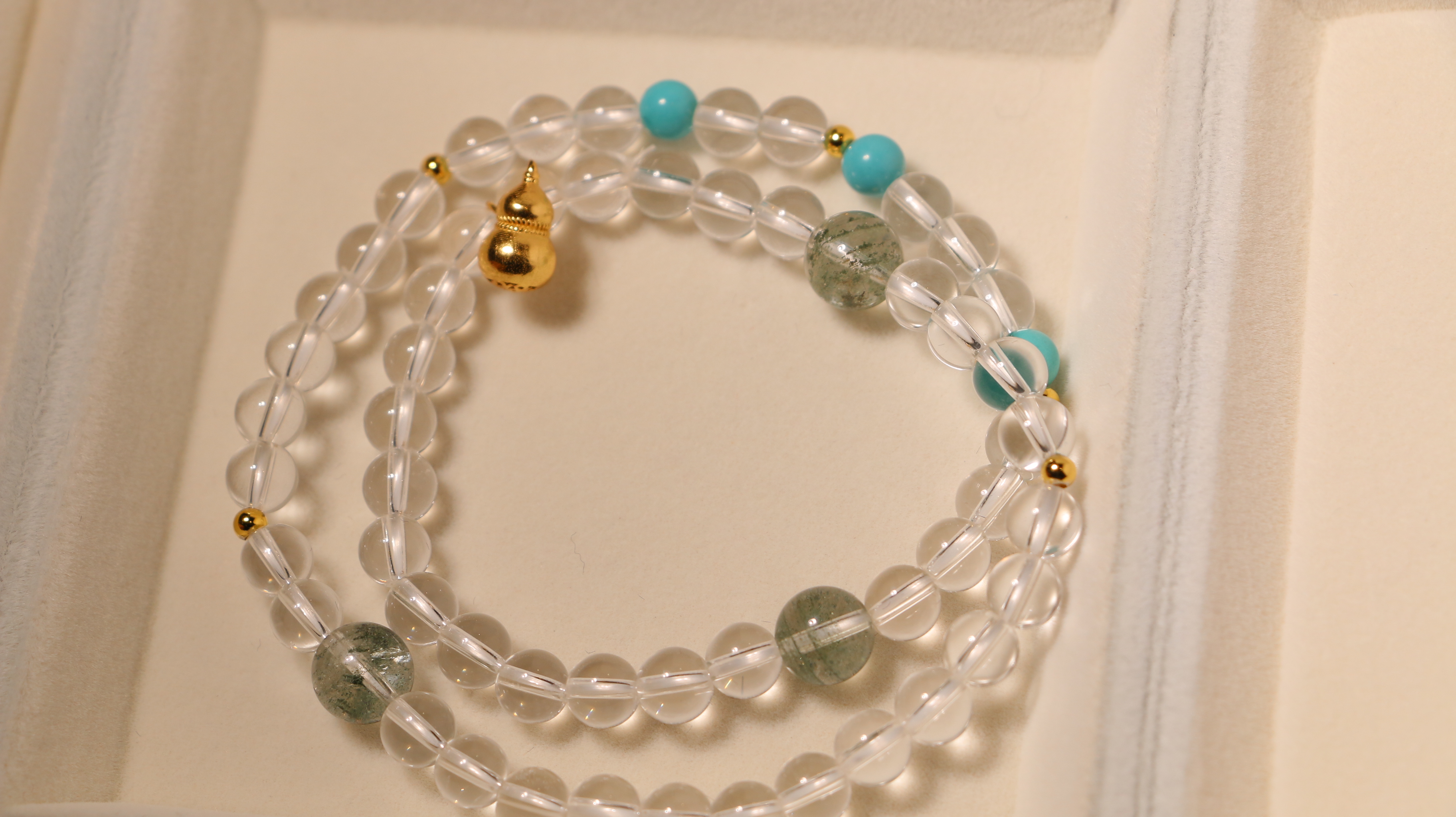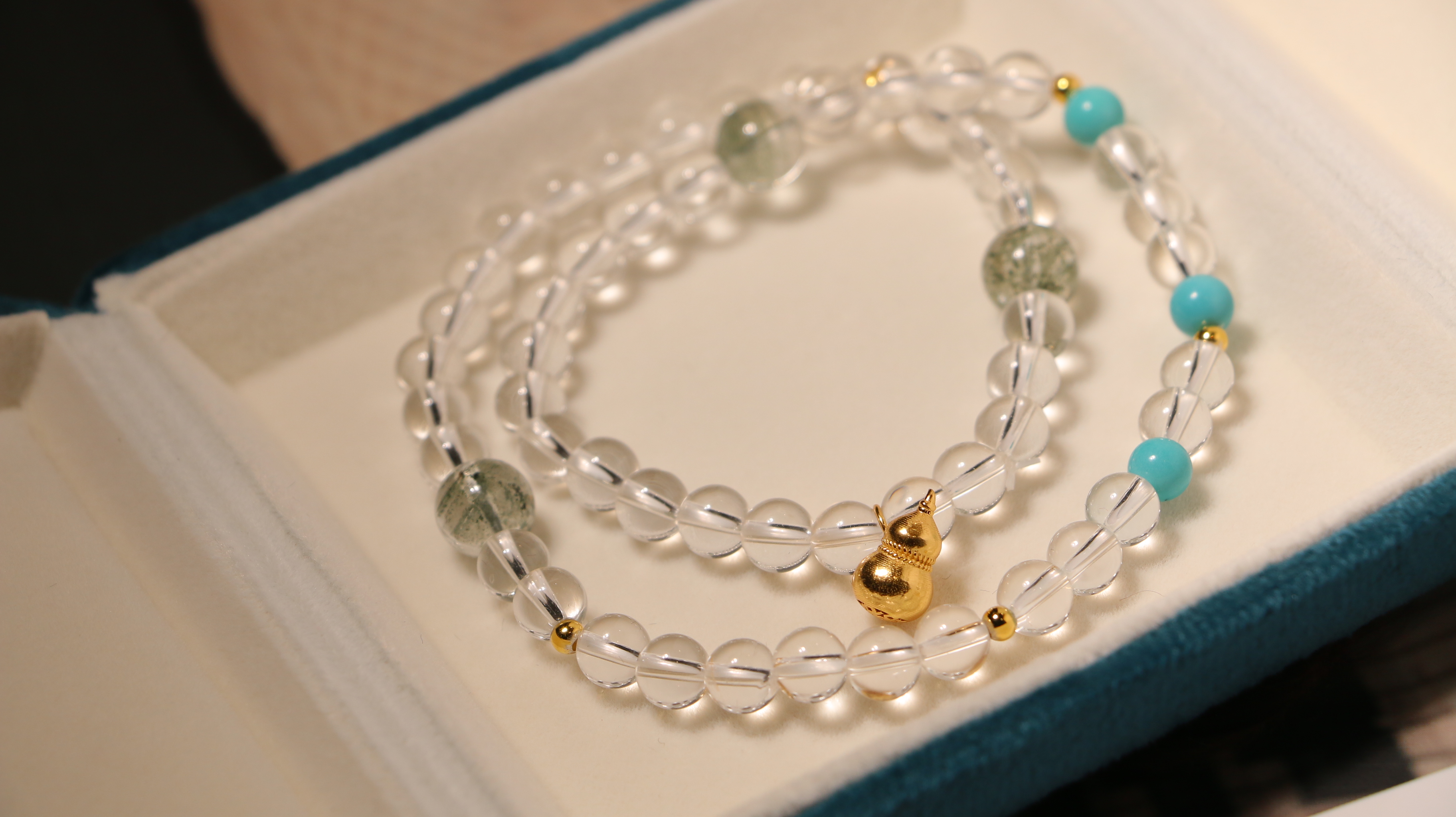 今年白水晶chao火,加上助yun顺五xing的绿幽灵~款式清凉通透,双圈,春夏搭配和宜哦!