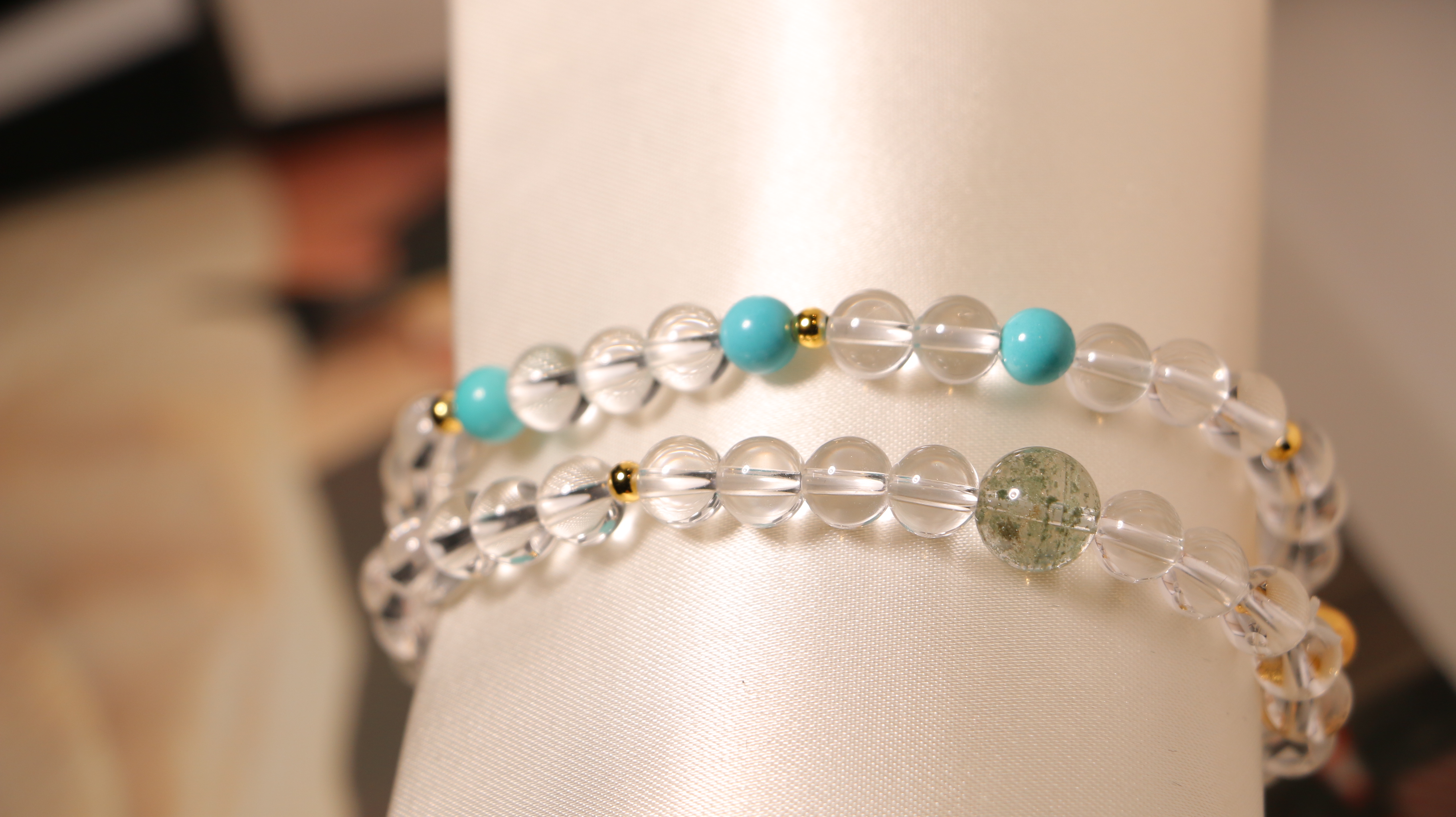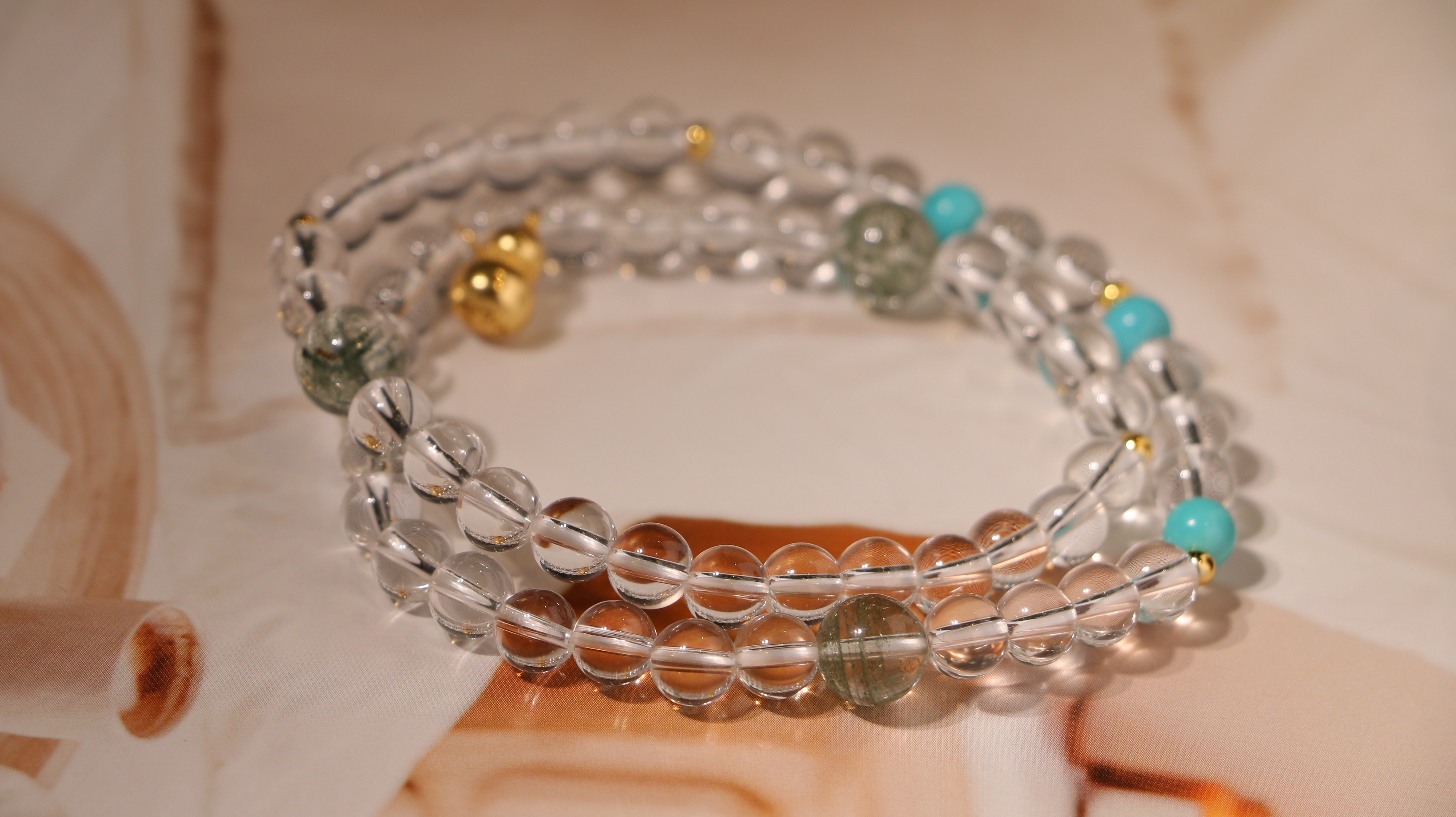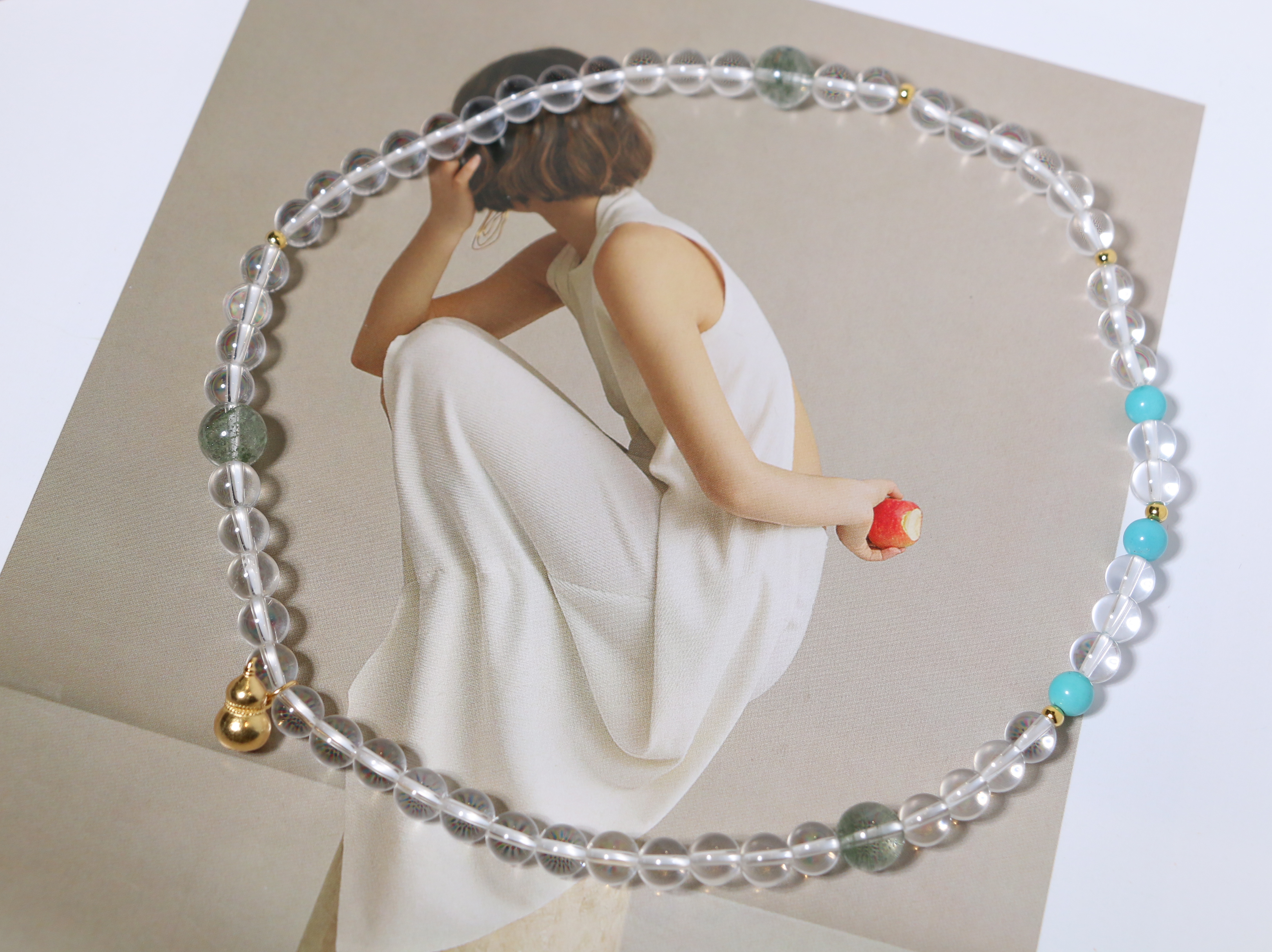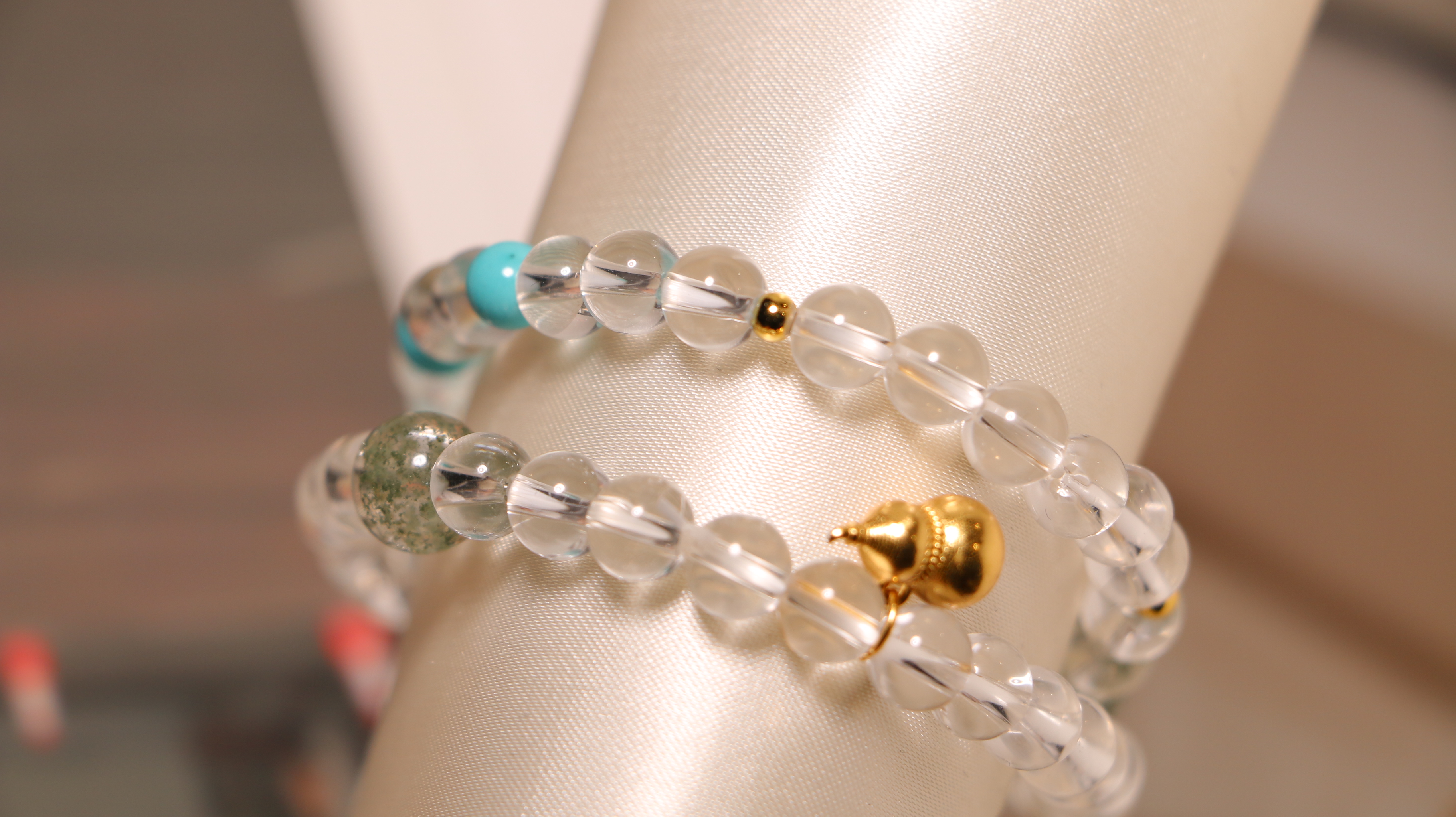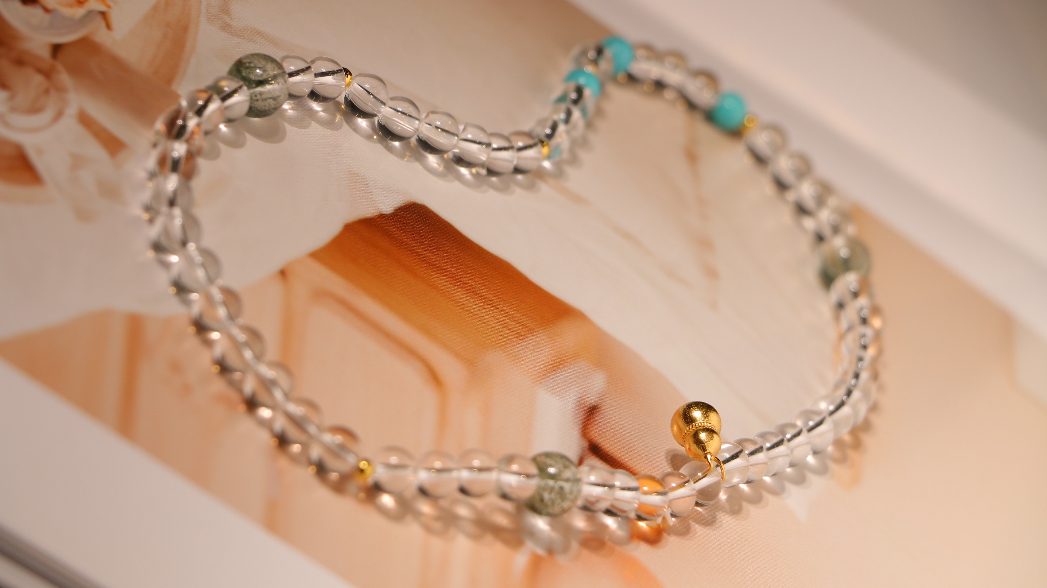 今年白水晶chao火,加上助yun顺五xing的绿幽灵~款式清凉通透,双圈,春夏搭配和宜哦!