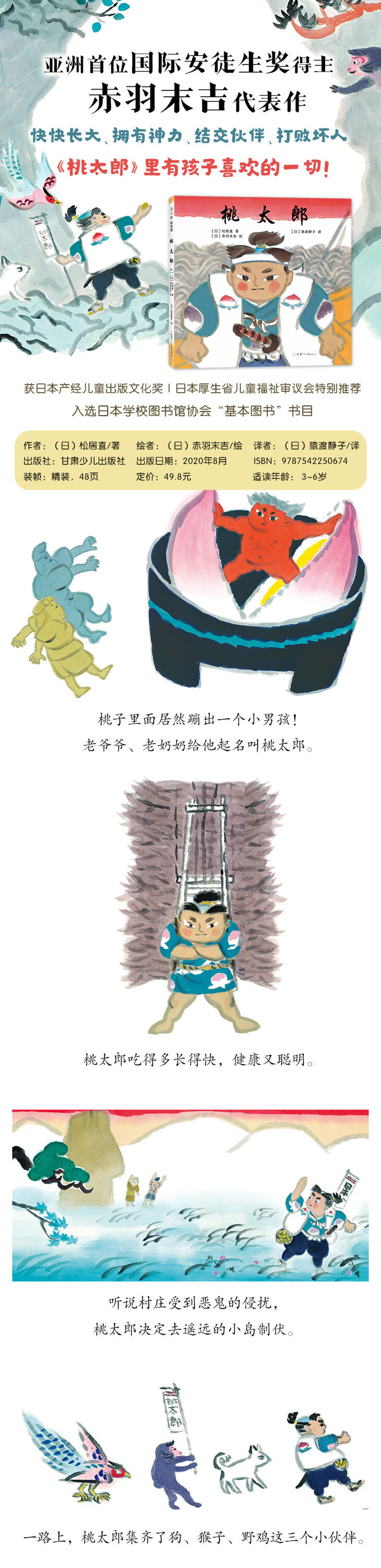 这个故事虽然我从小就听说过,但要具体说出来,还真的很难说清。当看到这本书时,我不禁脱口而出:“对、对,这才是真正的桃太郎!”一个家喻户晓却又不被真正了解的民间故事,能以孩子喜爱的绘本形式描绘出来,这让我由衷地感到幸福。——日本读者