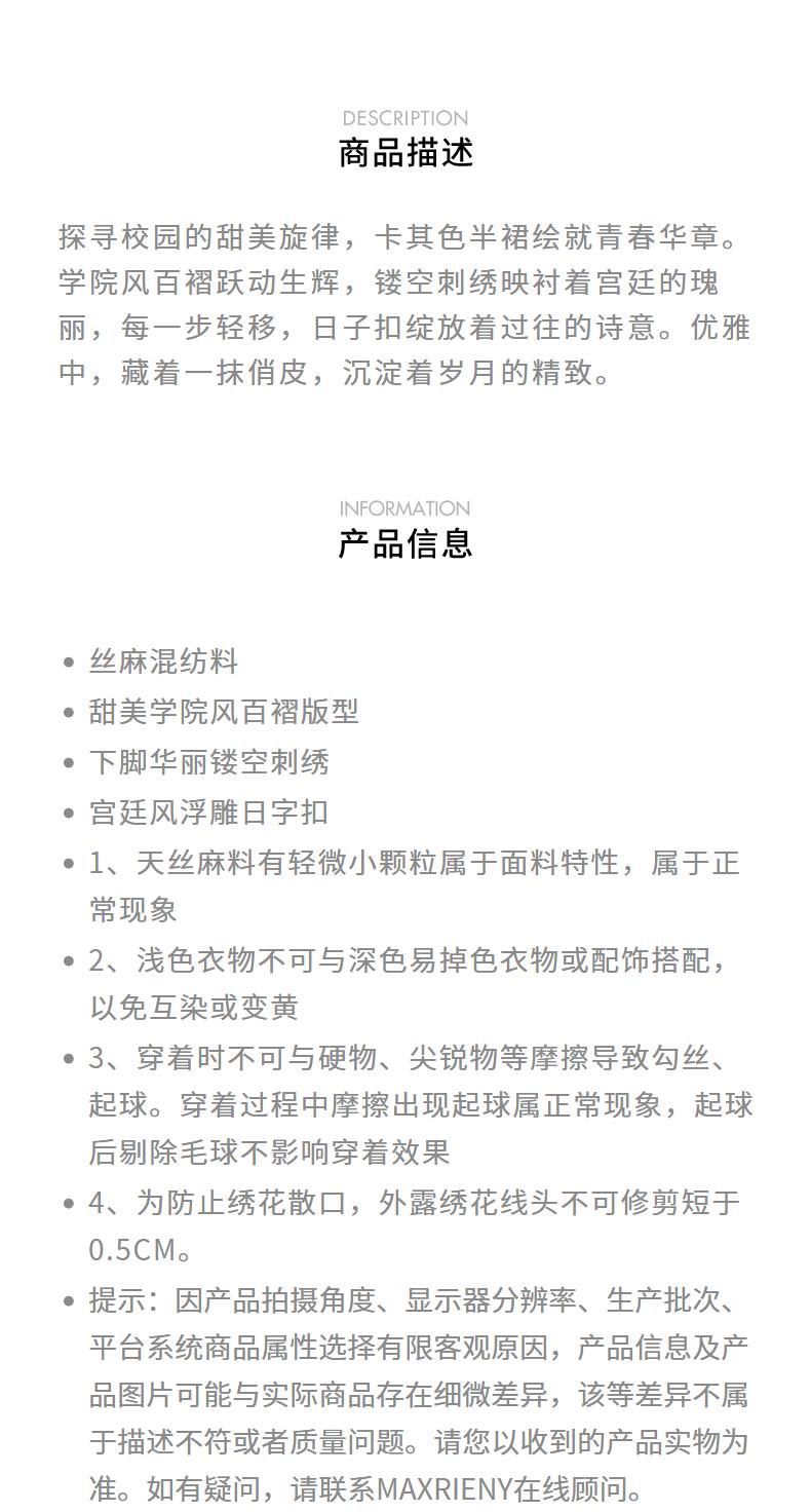 MAXRIENY【Day Dreaming-主题纪念款】甜美华丽刺绣百褶半裙(货号:MC85SK084)