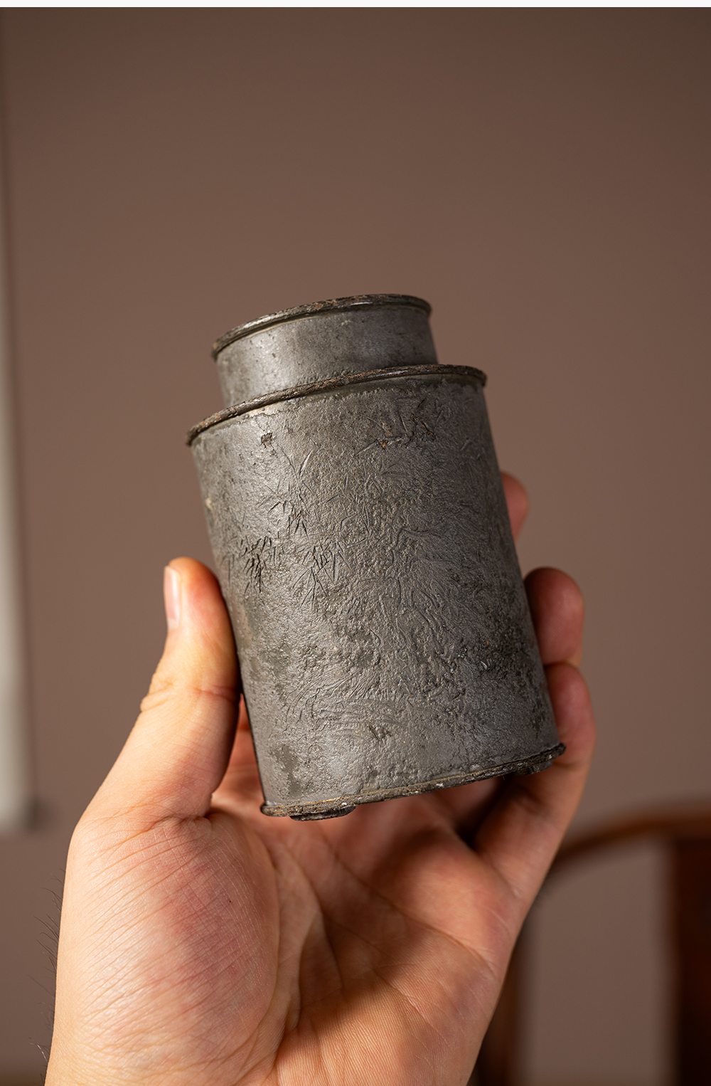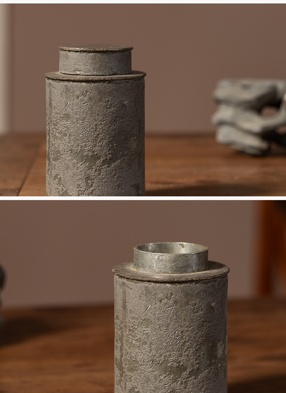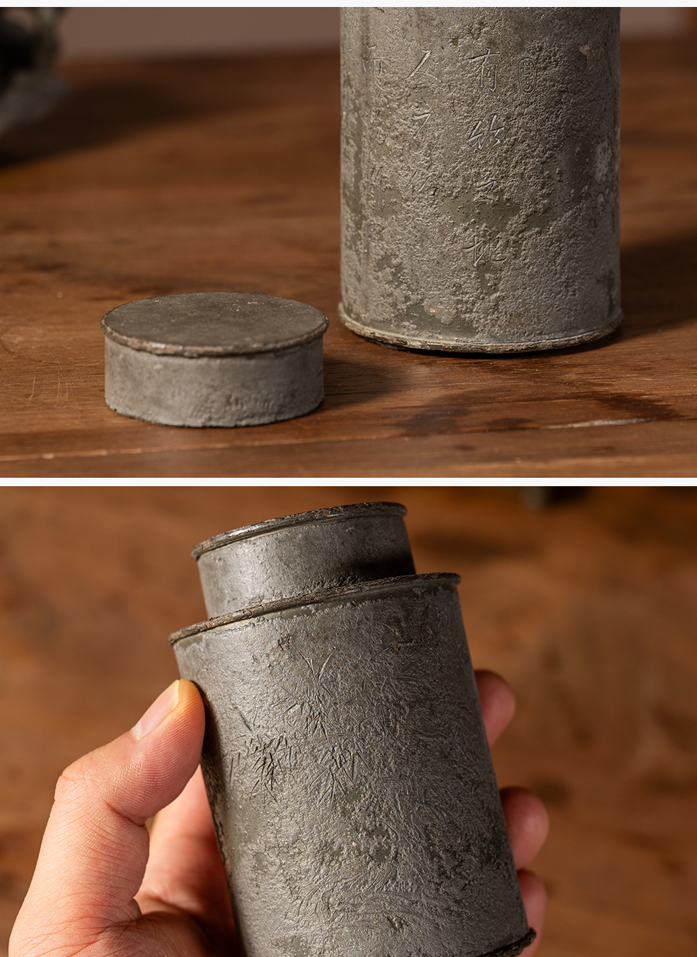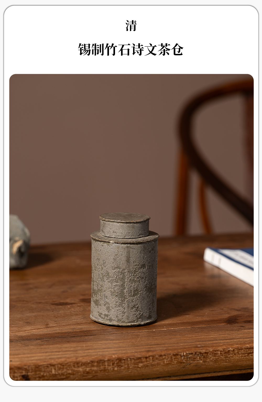 清 锡制竹石诗文茶仓