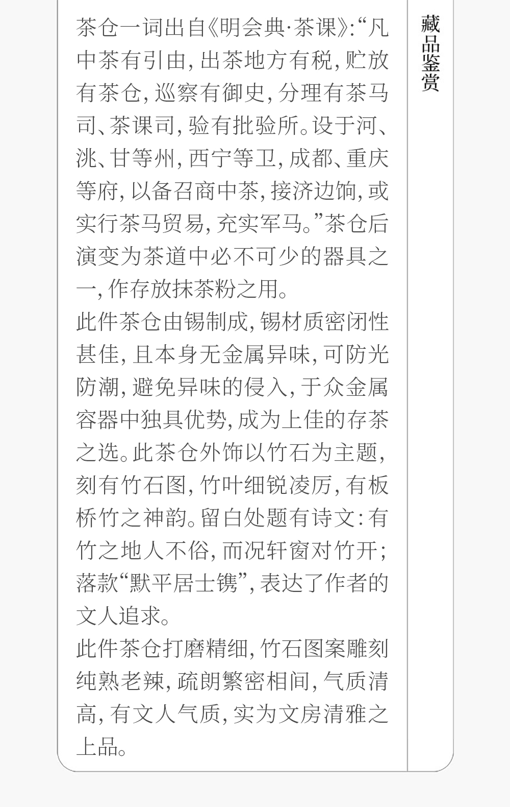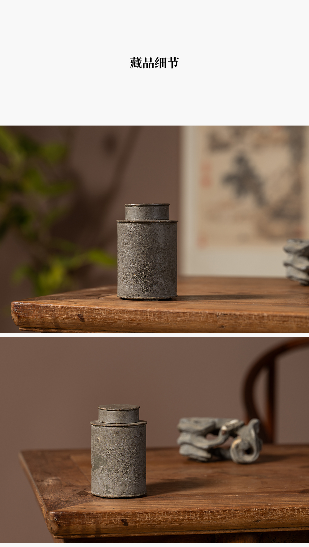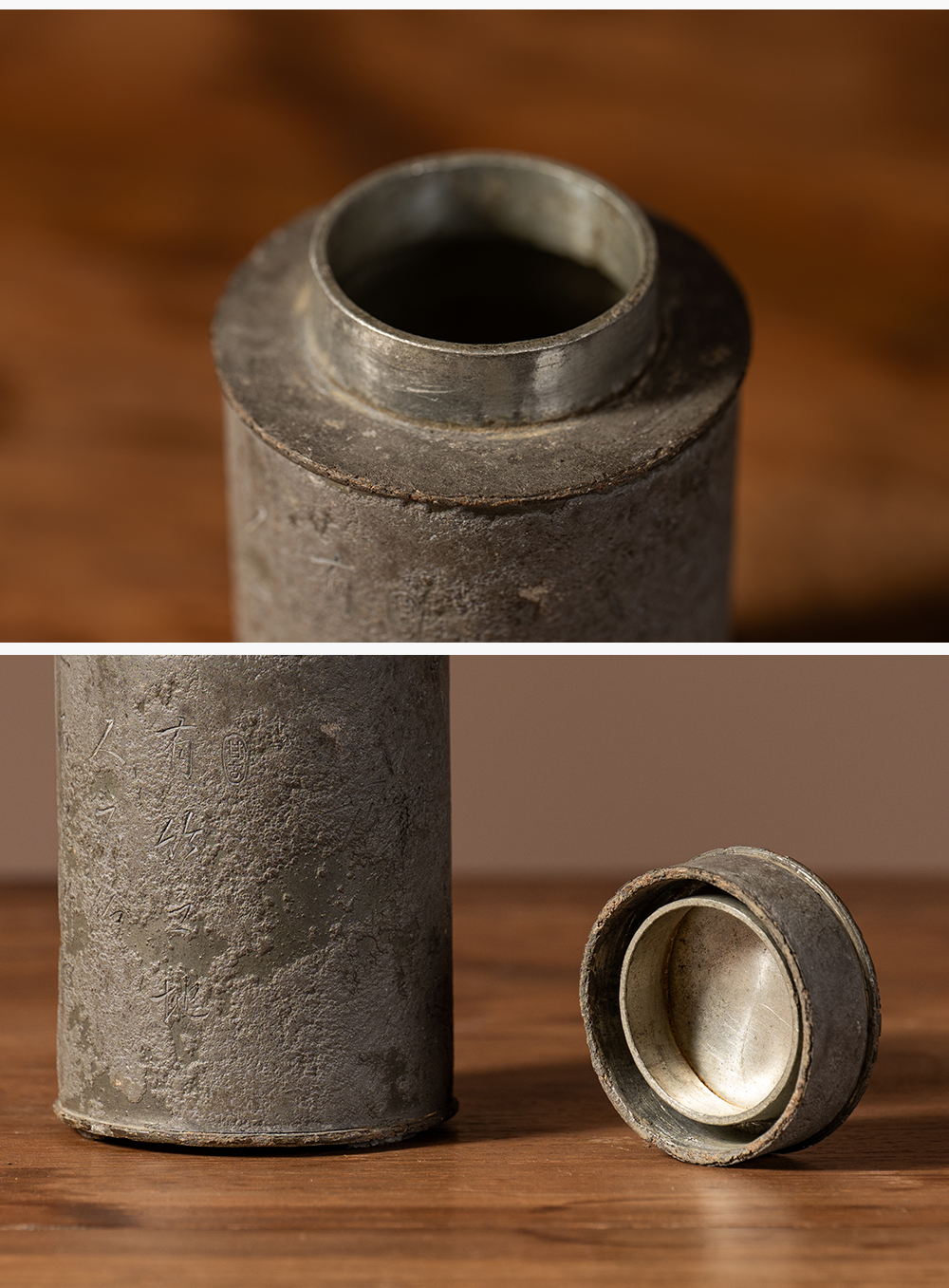 清 锡制竹石诗文茶仓