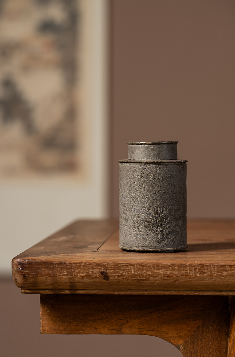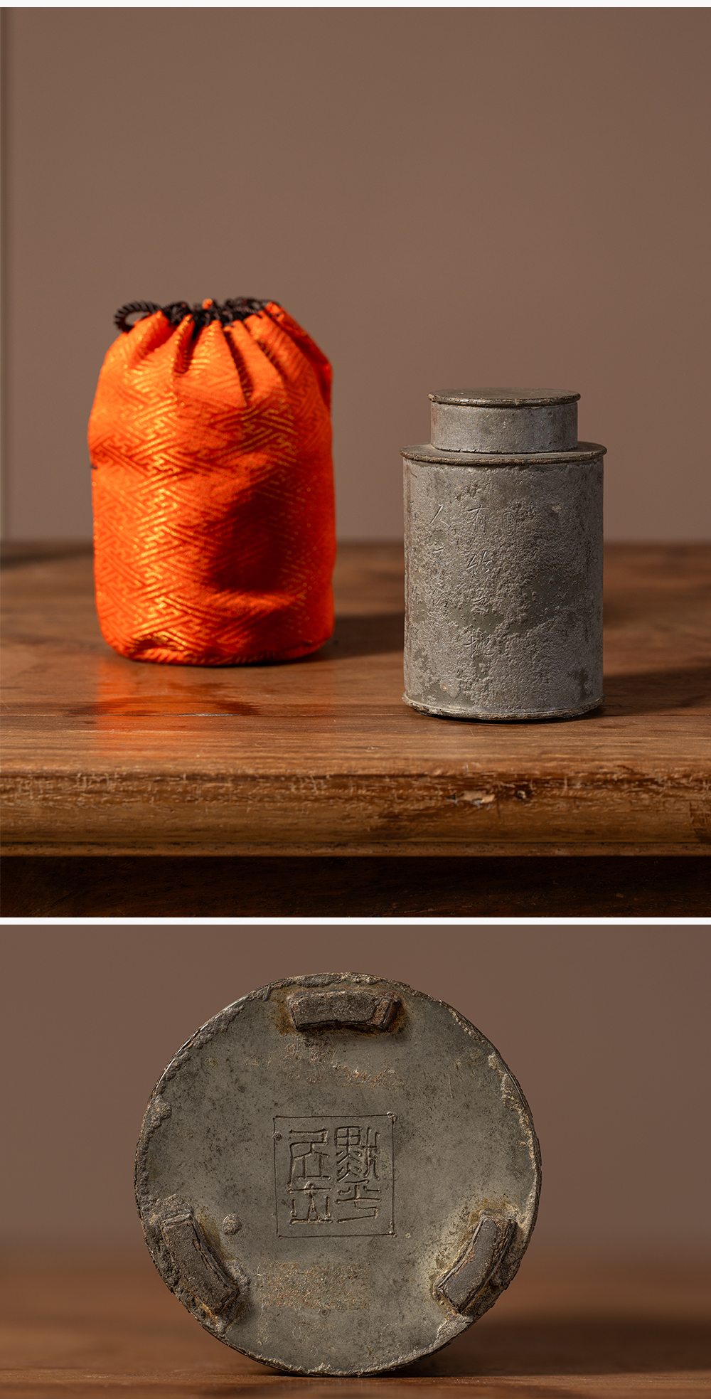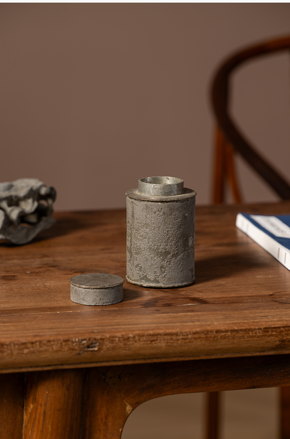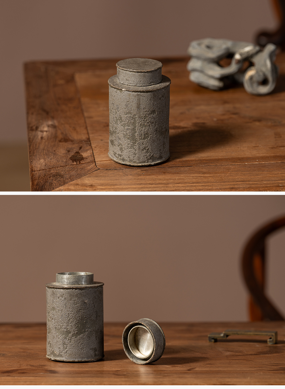 清 锡制竹石诗文茶仓