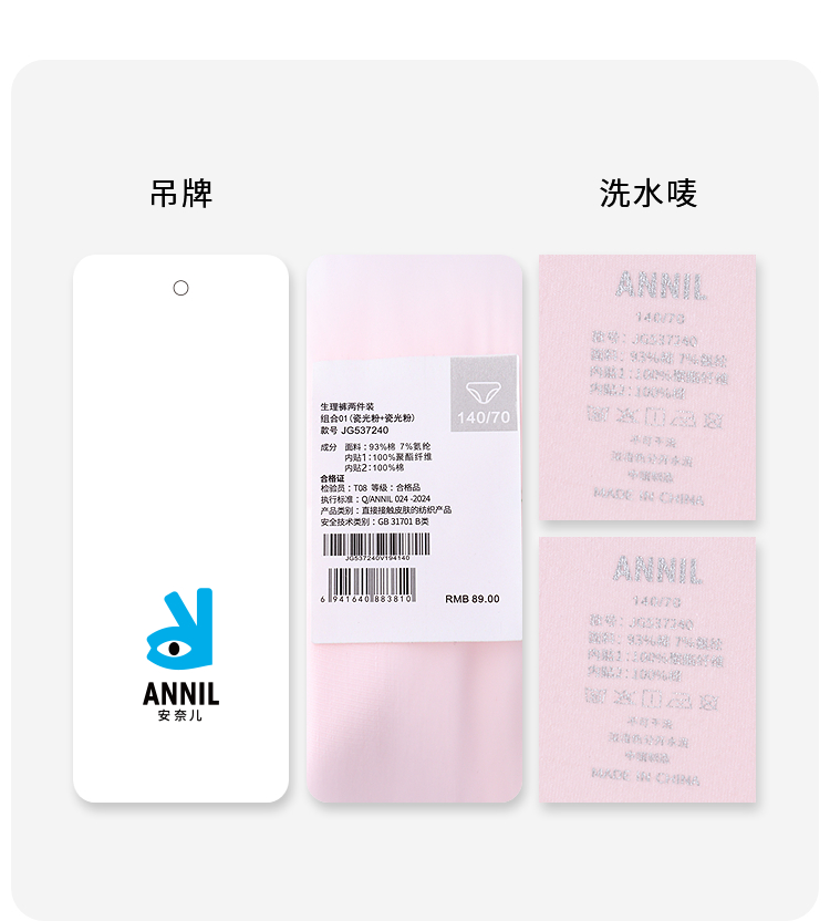 【实体店同款】女童生理裤两件装秋季新款安奈儿童装JG537240